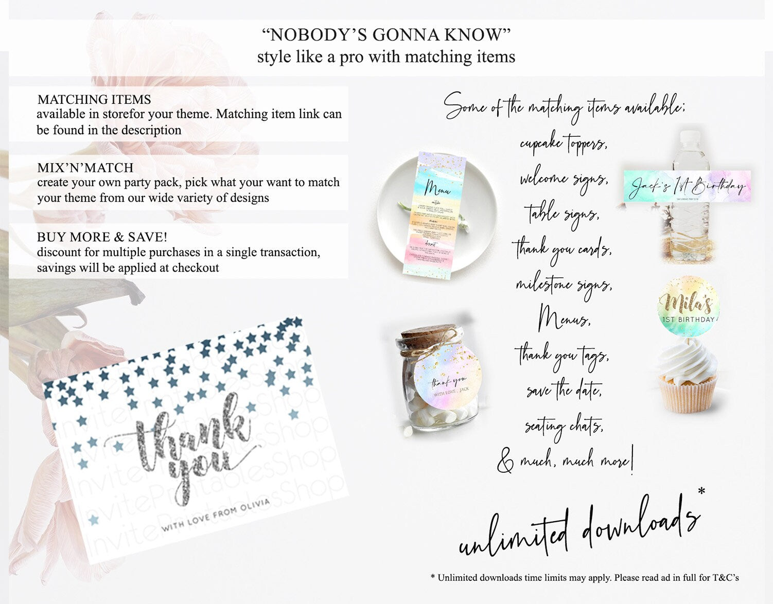 Star Thank You Card Pastel Stars Thank You Shooting Star Rainbow Colorful Confetti Twinkle Little Star Birthday Teacher Thank You D10330
