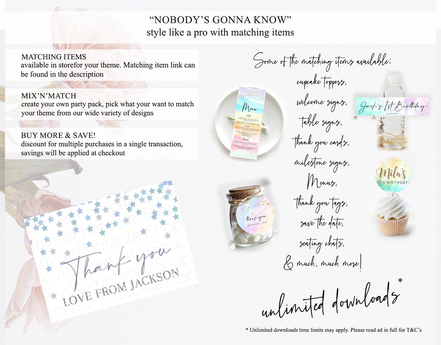 Star Thank You Card Pastel Stars Thank You Shooting Star Rainbow Colorful Confetti Twinkle Little Star Birthday Teacher Thank You D10341