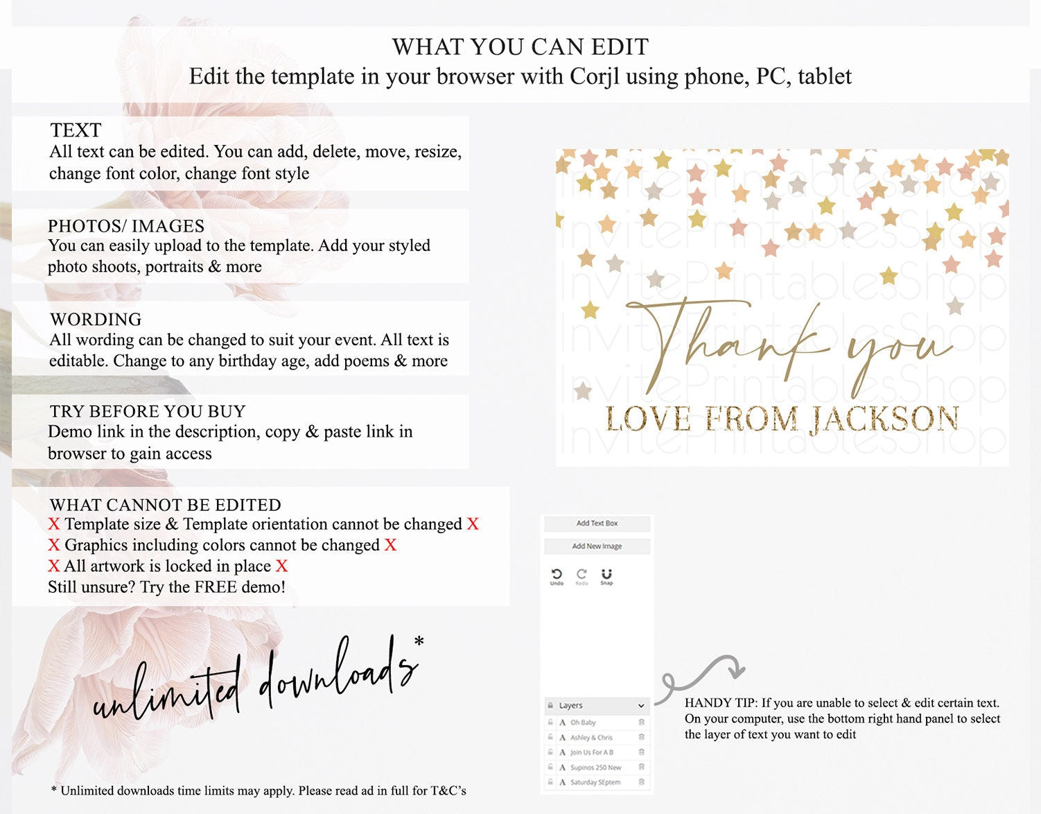 • After purchase, Corjl emails your editing link. Allow up to 15 minutes for delivery.