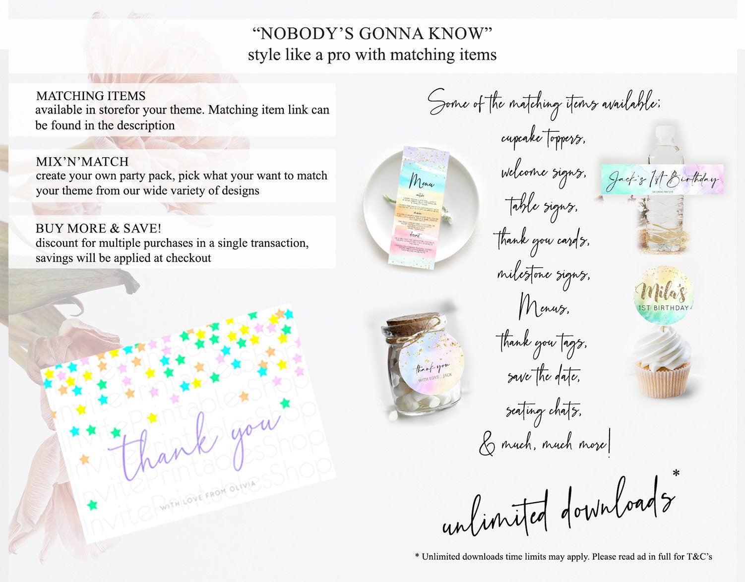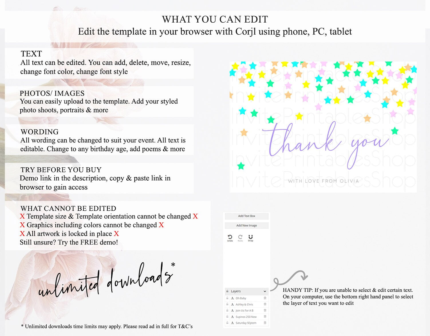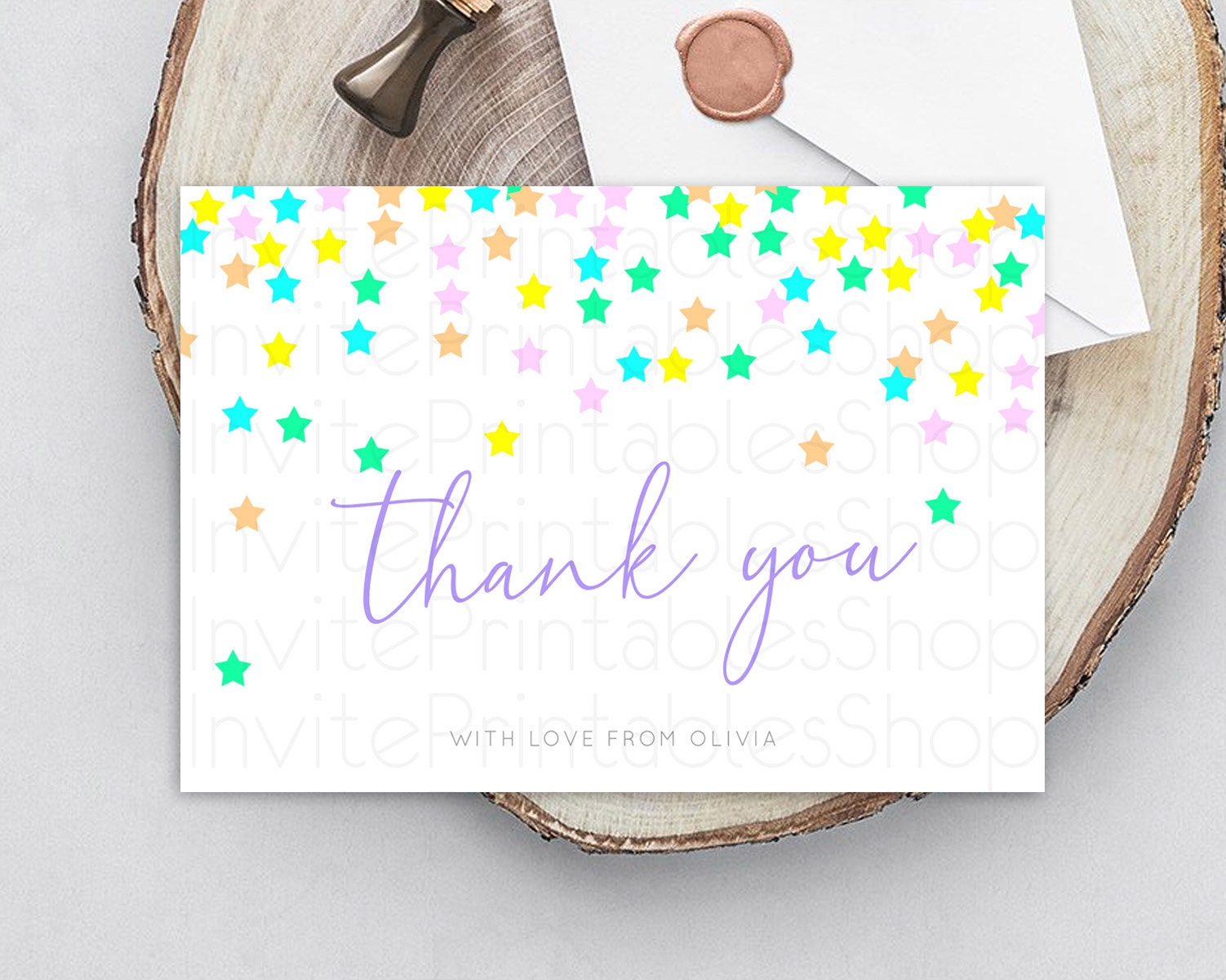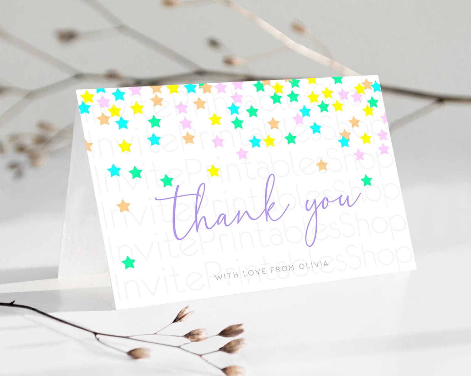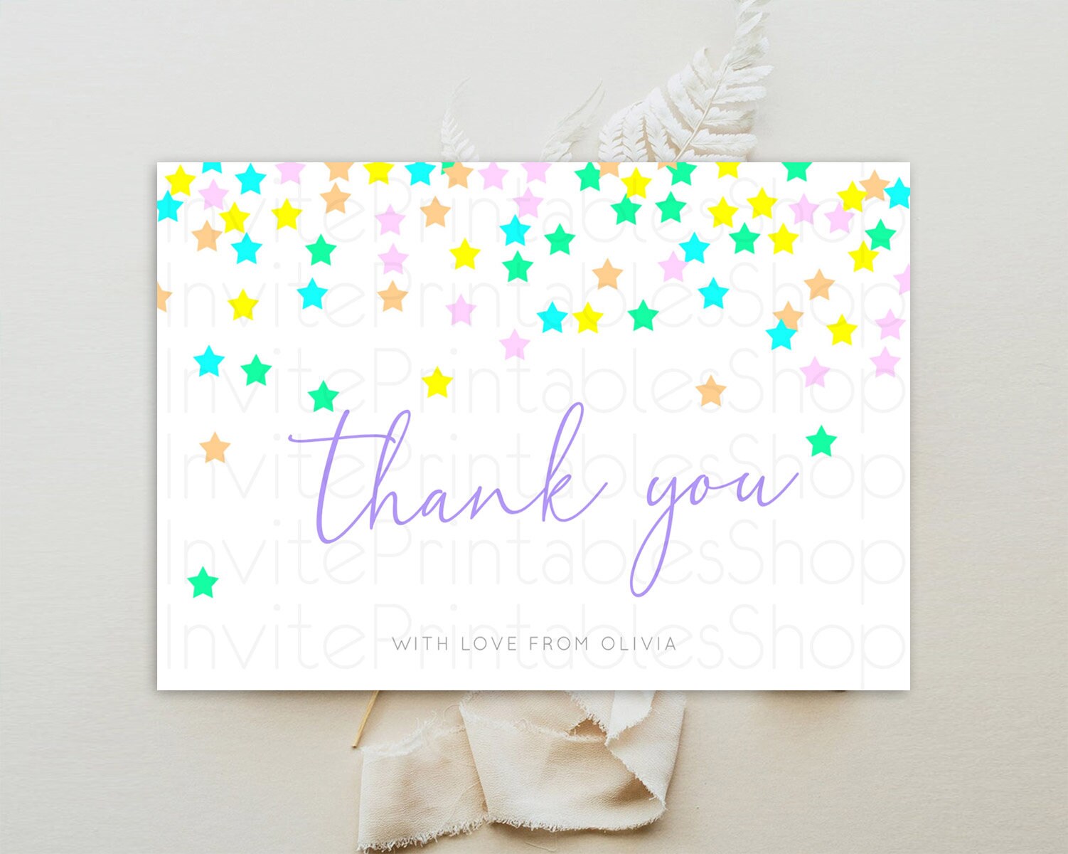 Star Thank You Card Pastel Stars Thank You Shooting Star Rainbow Colorful Confetti Twinkle Little Star Birthday Teacher Thank You D10394