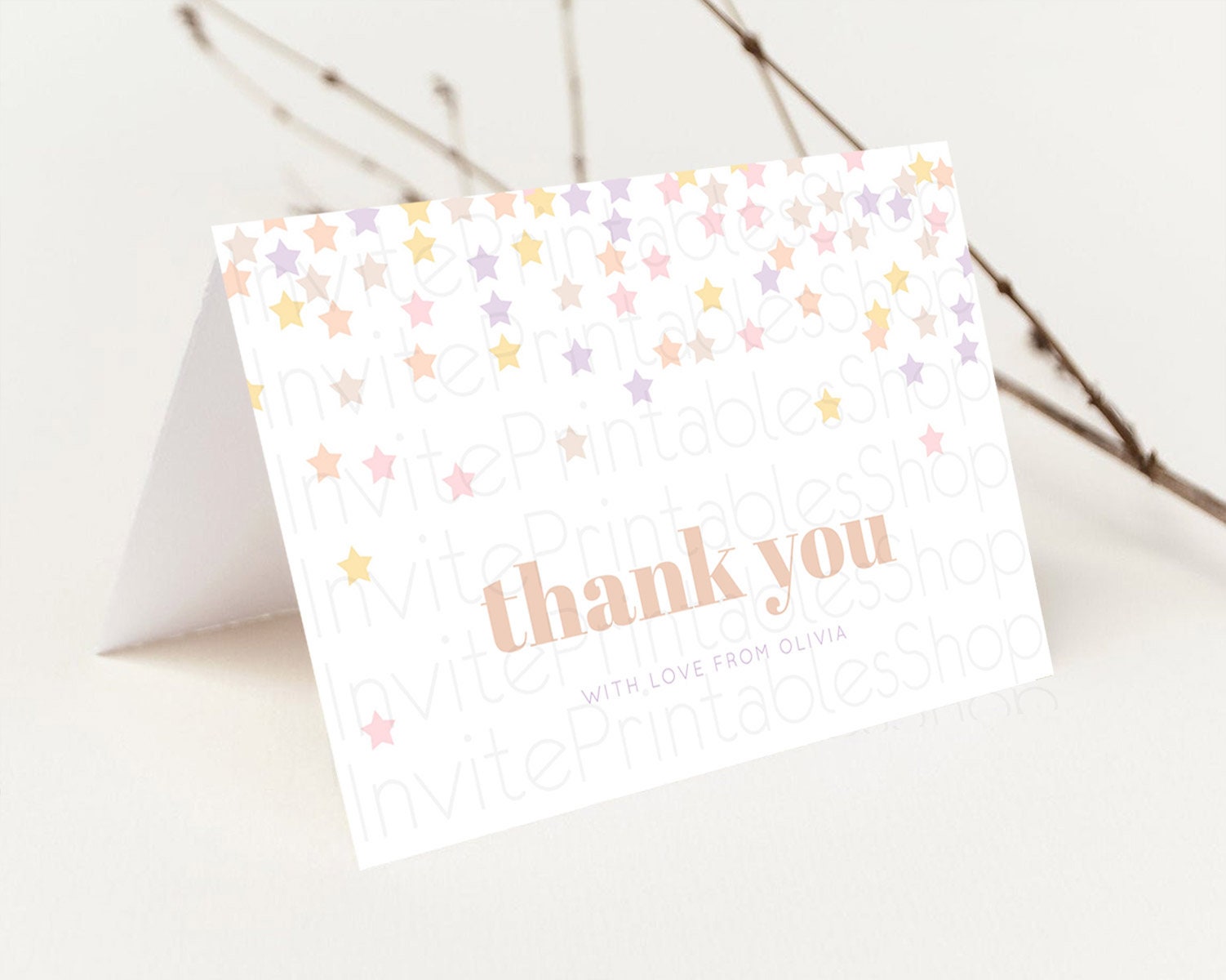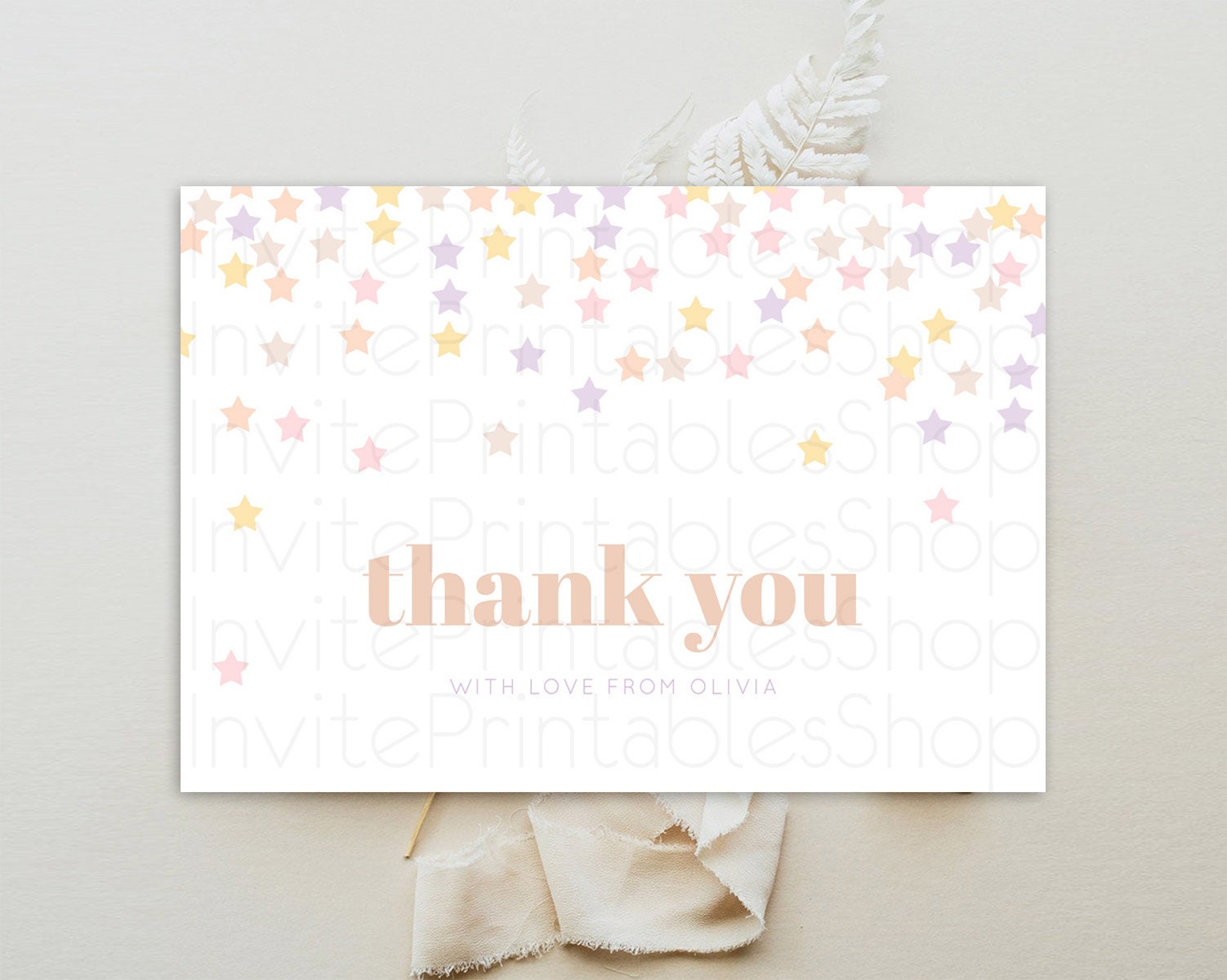 Star Thank You Card Pastel Stars Thank You Shooting Star Rainbow Colorful Confetti Twinkle Little Star Birthday Teacher Thank You D10810