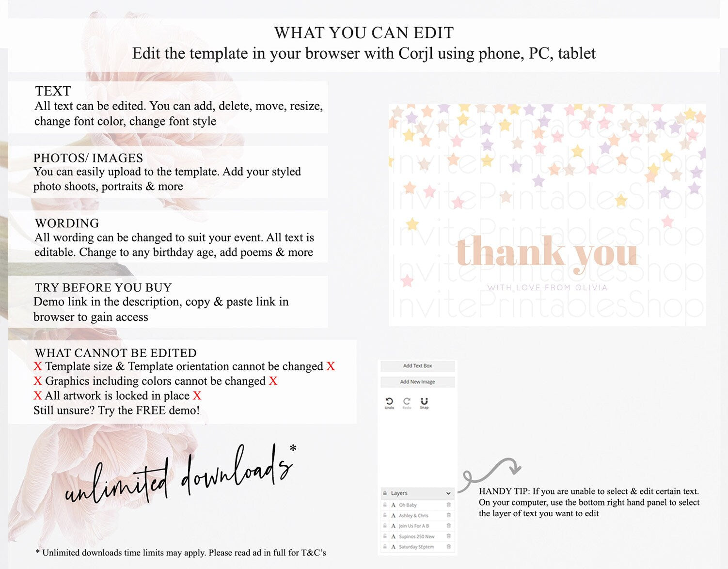 • After purchase, Corjl emails your editing link. Allow up to 15 minutes for delivery.