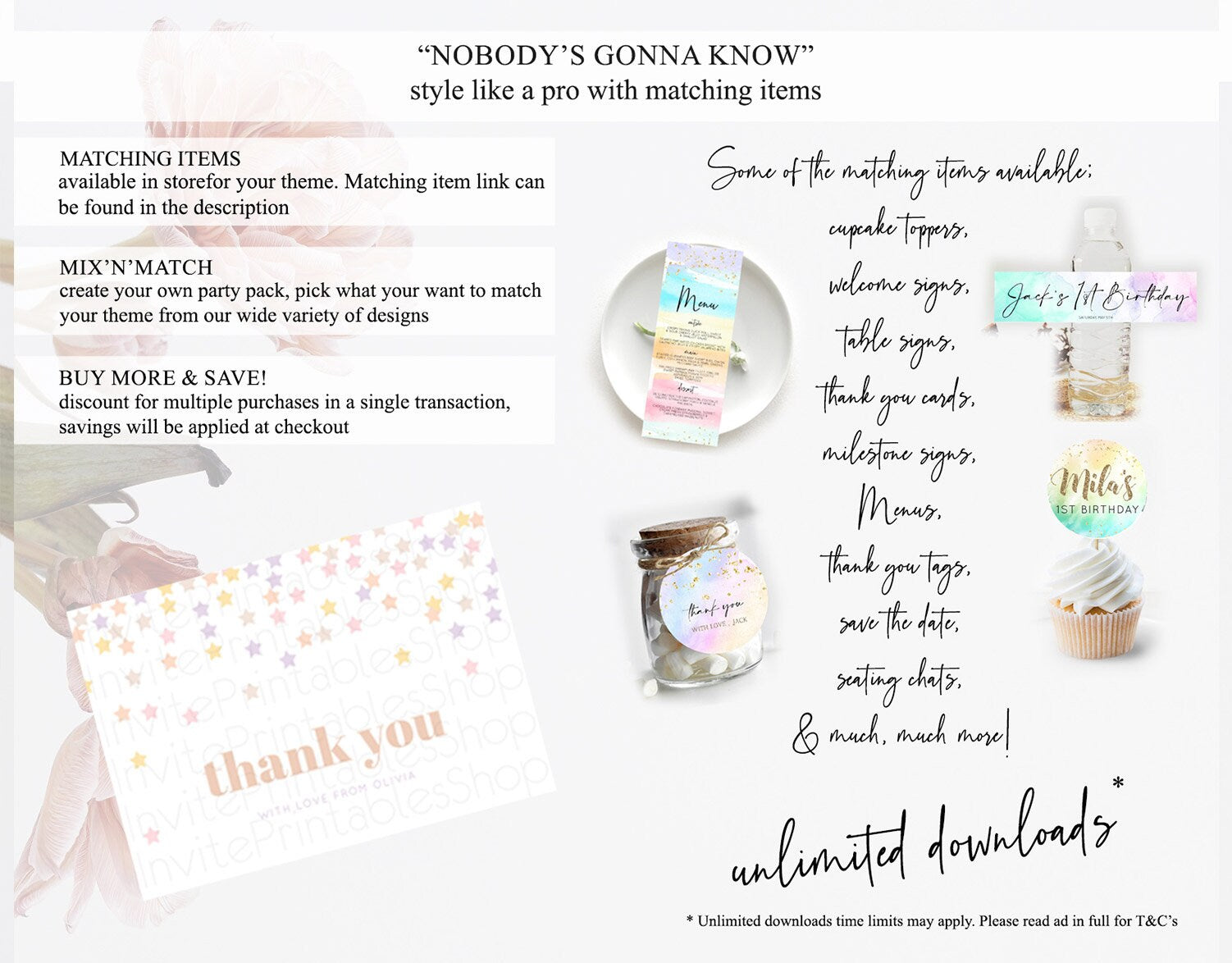 • Content shown in your gallery images is the source of truth for what’s included.
