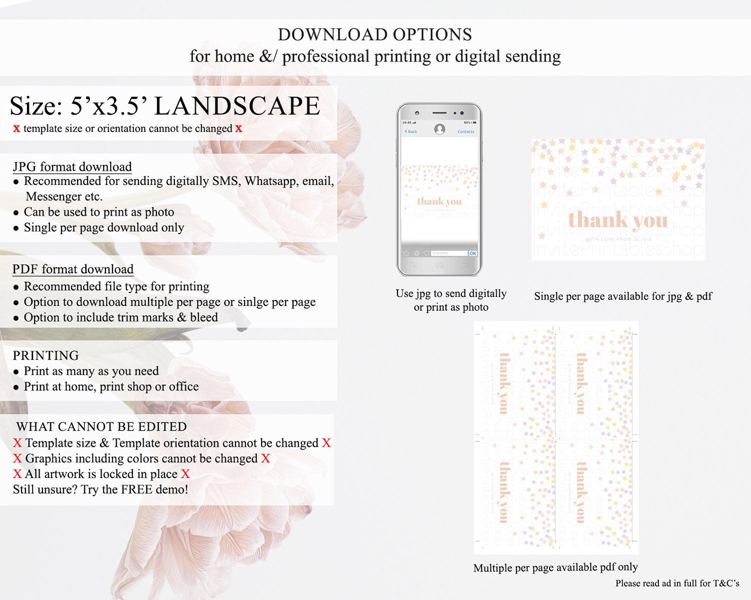 • Template size & orientation cannot be changed. Please use the demo link to confirm this product suits your needs.