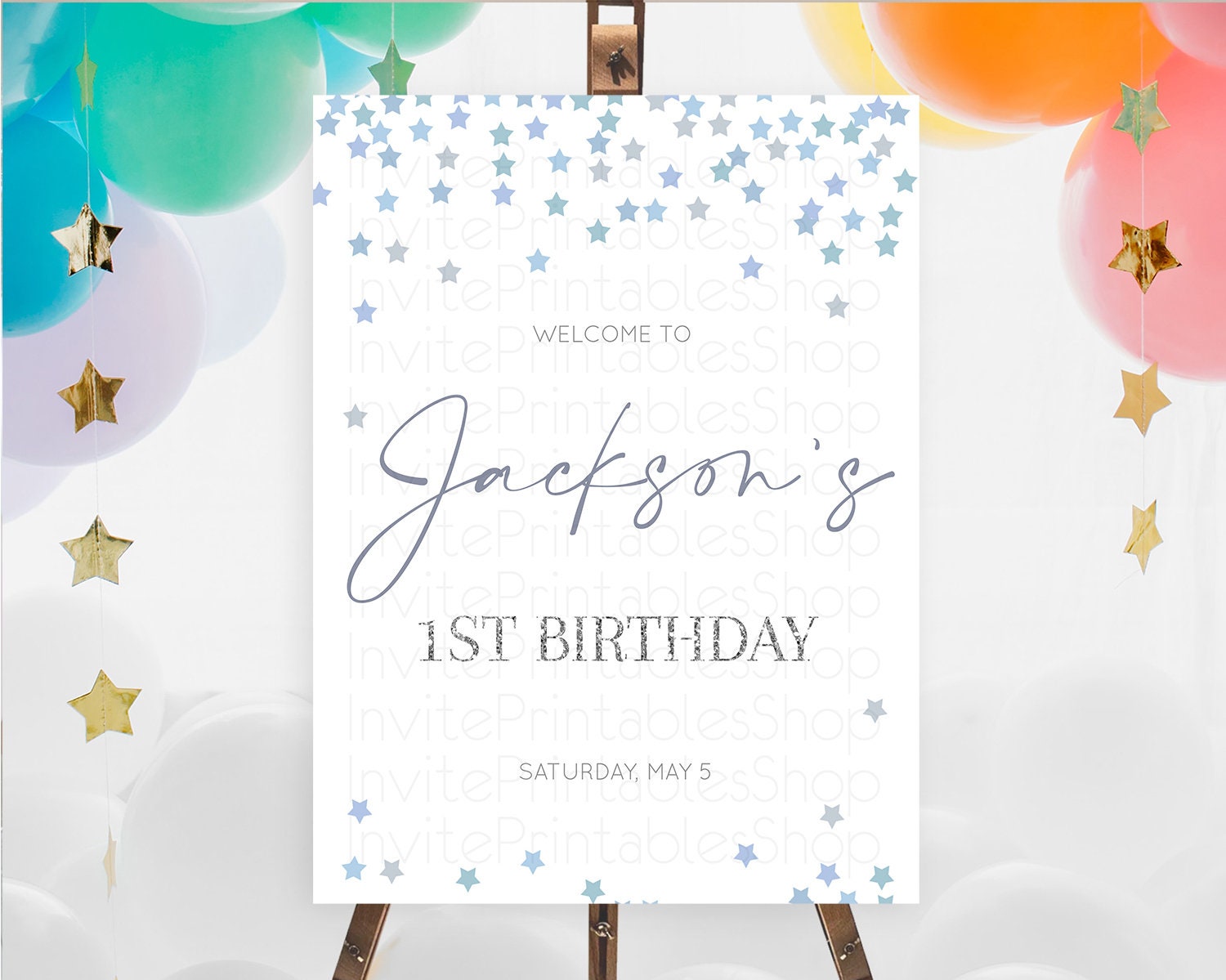 Star Welcome Board Pastel Stars Welcome Sign Shooting Star Rainbow Colorful Confetti Twinkle Little Star First Birthday Welcome Sign D10341