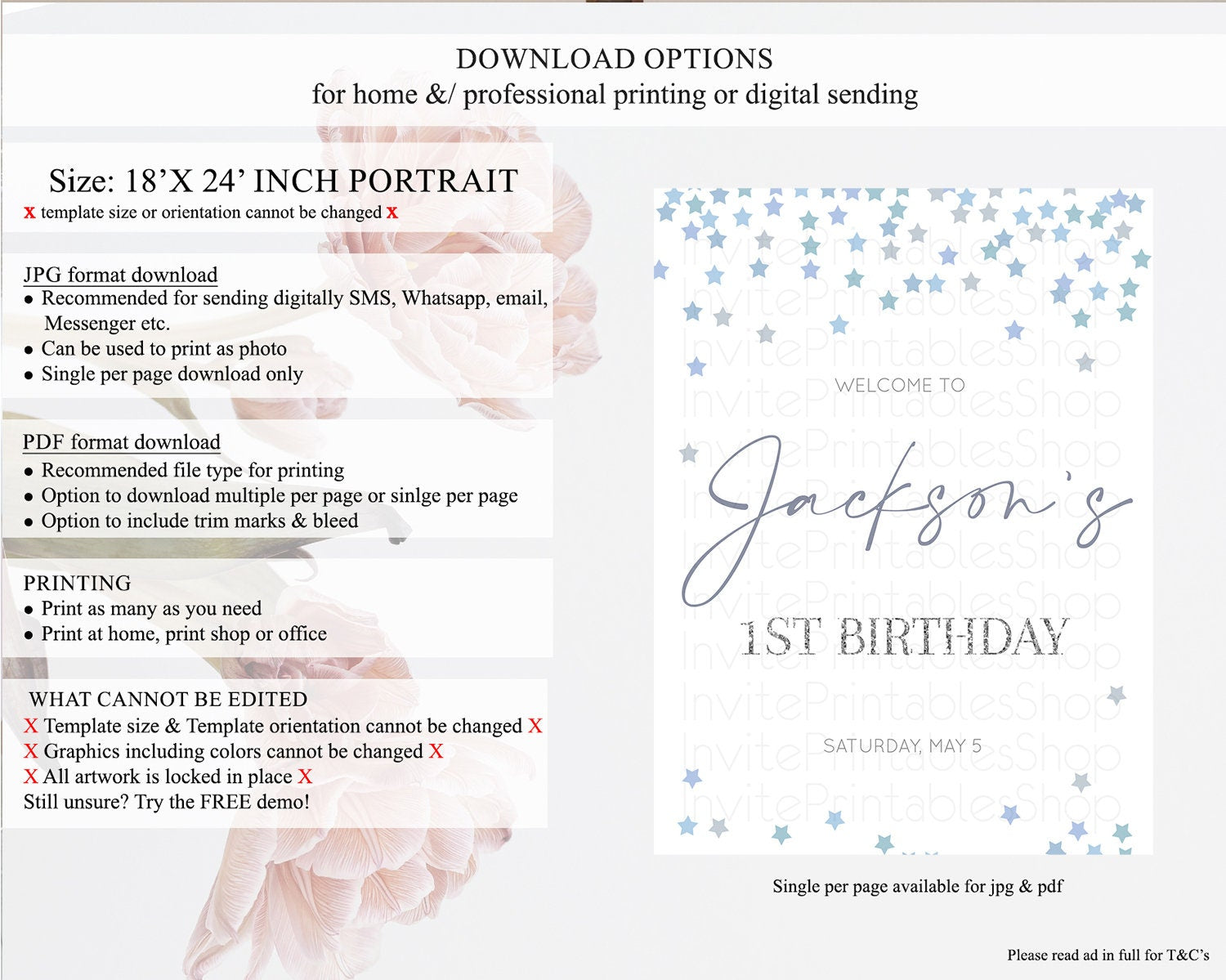 • Template size & orientation cannot be changed. Please use the demo link to confirm this product suits your needs.