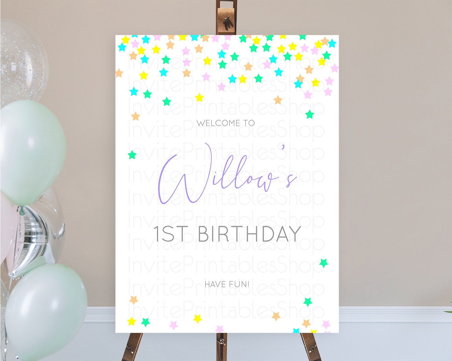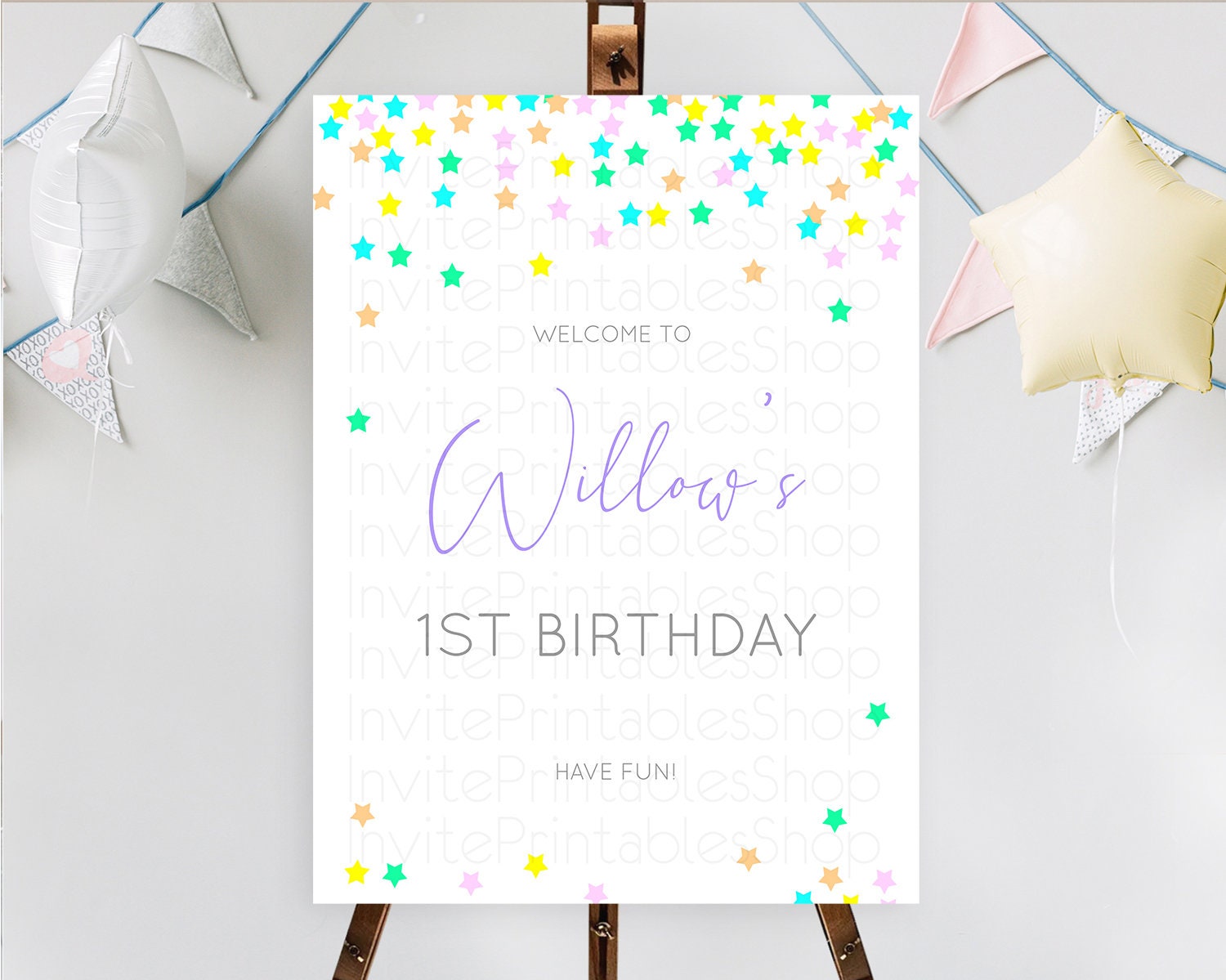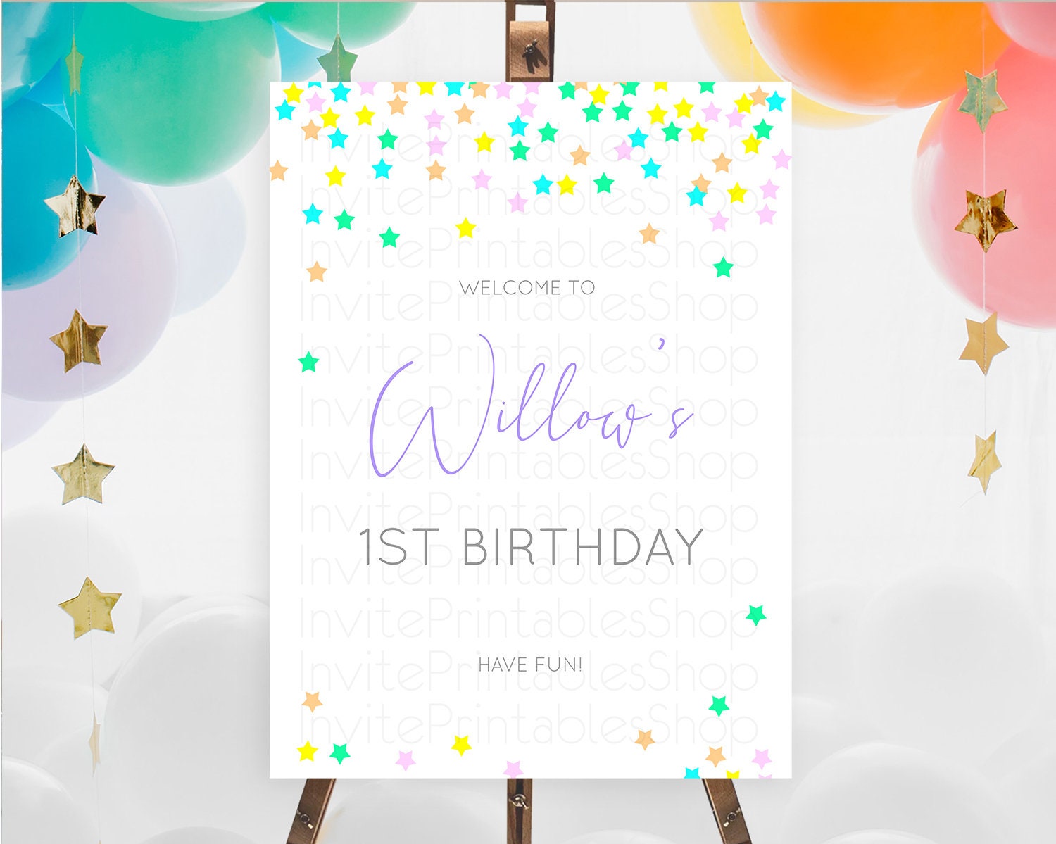 Star Welcome Board Pastel Stars Welcome Sign Shooting Star Rainbow Colorful Confetti Twinkle Little Star First Birthday Welcome Sign D10394