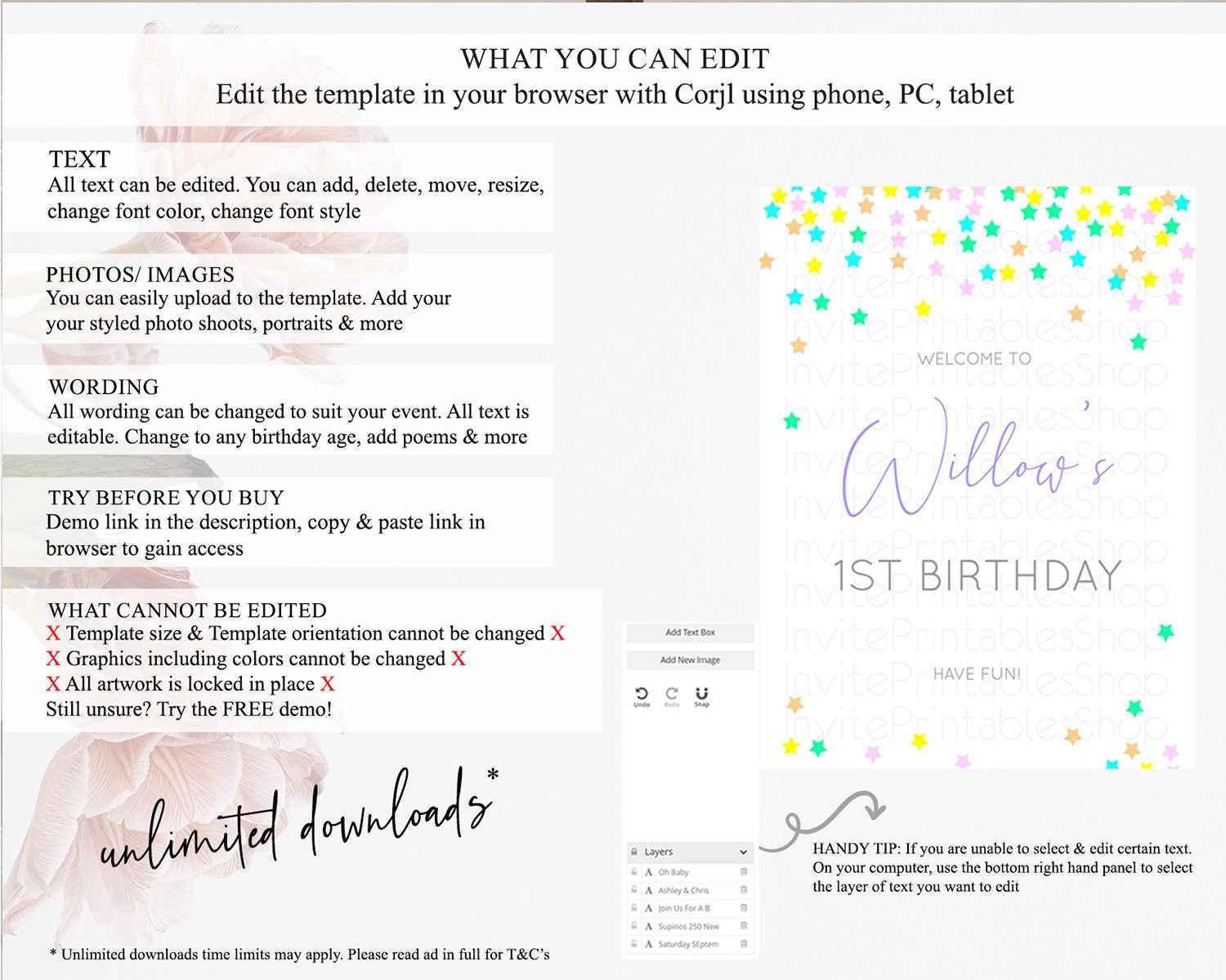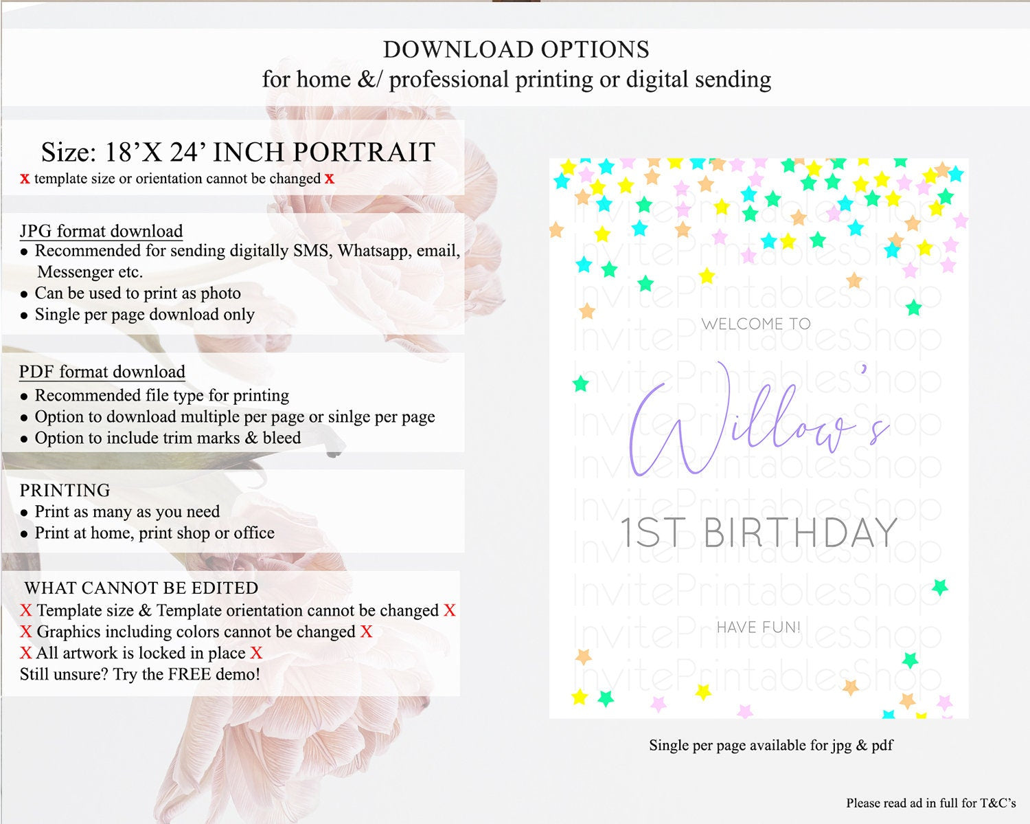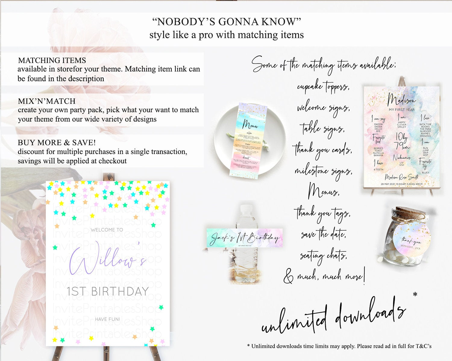 Star Welcome Board Pastel Stars Welcome Sign Shooting Star Rainbow Colorful Confetti Twinkle Little Star First Birthday Welcome Sign D10394