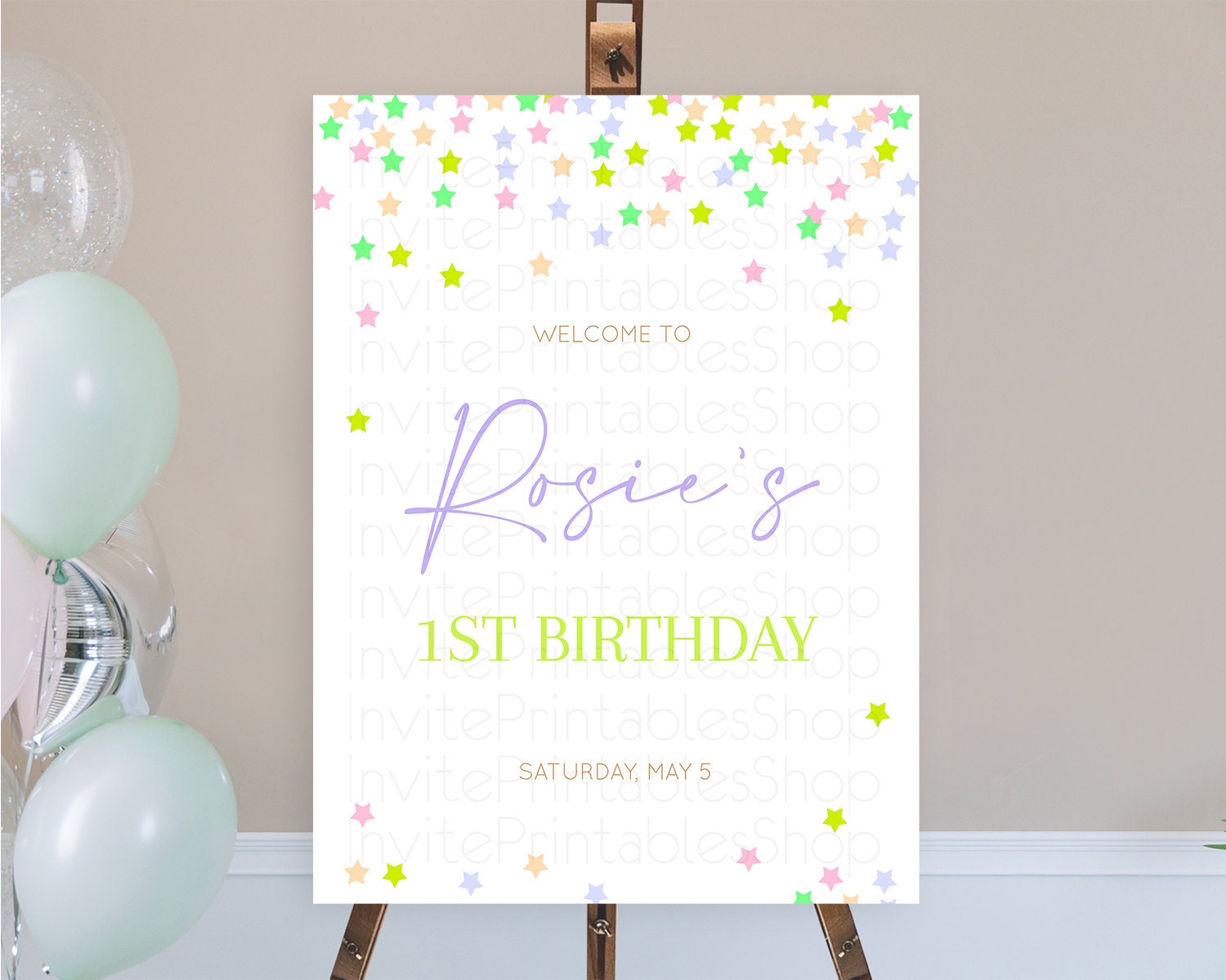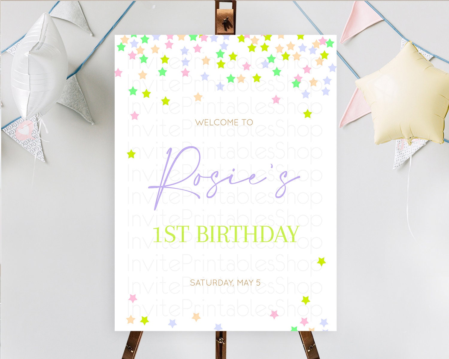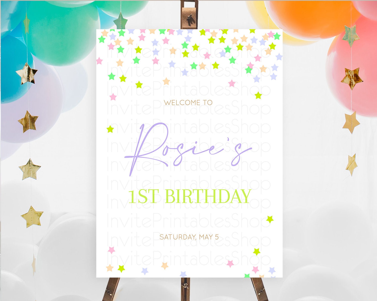 Star Welcome Board Pastel Stars Welcome Sign Shooting Star Rainbow Colorful Confetti Twinkle Little Star First Birthday Welcome Sign D10396