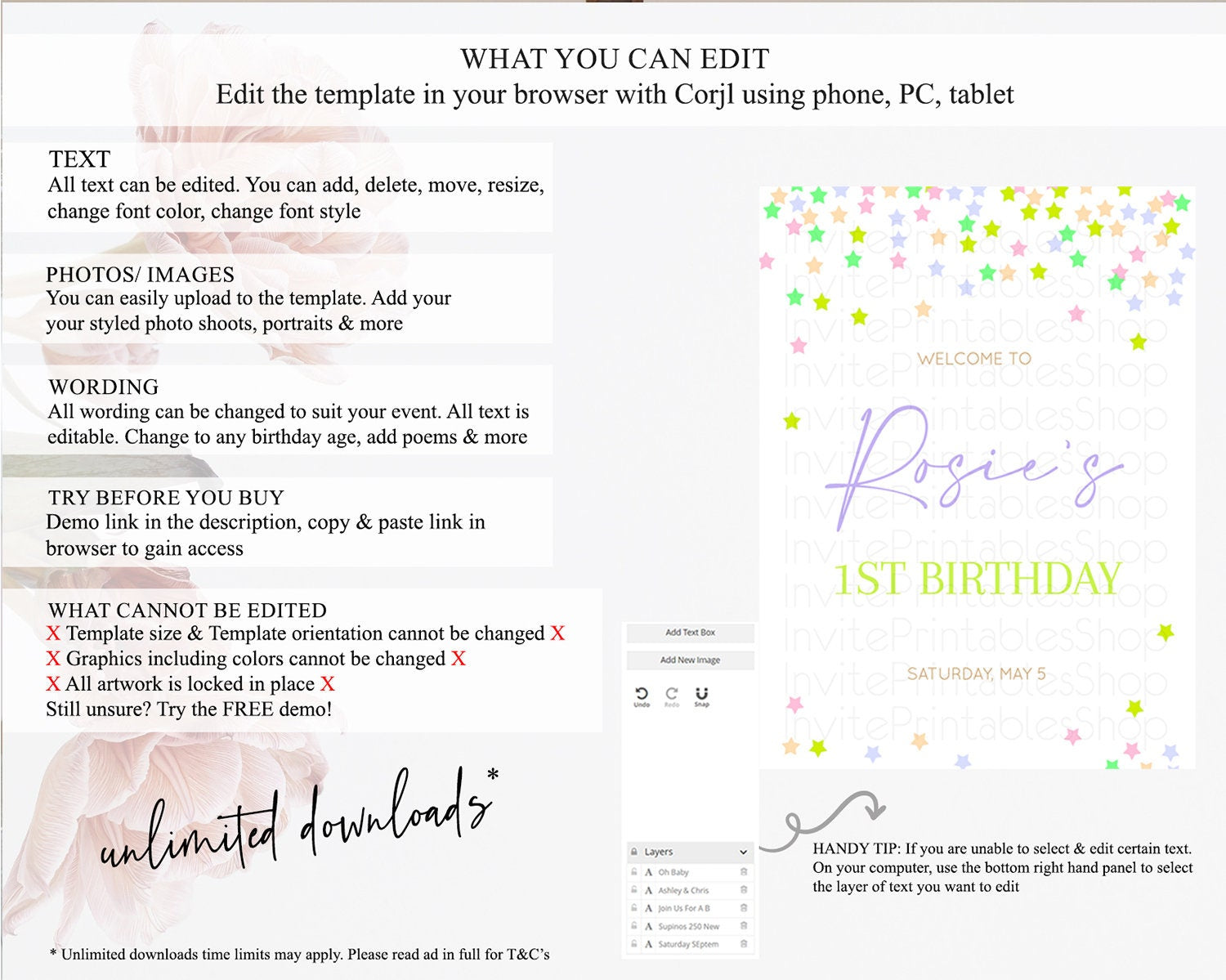 • After purchase, Corjl emails your editing link. Allow up to 15 minutes for delivery.