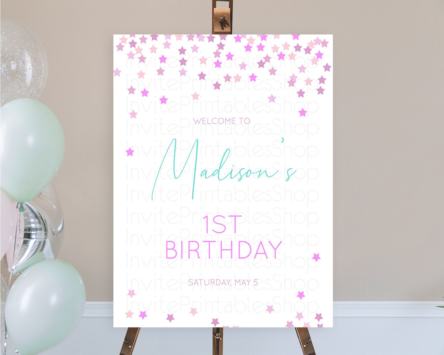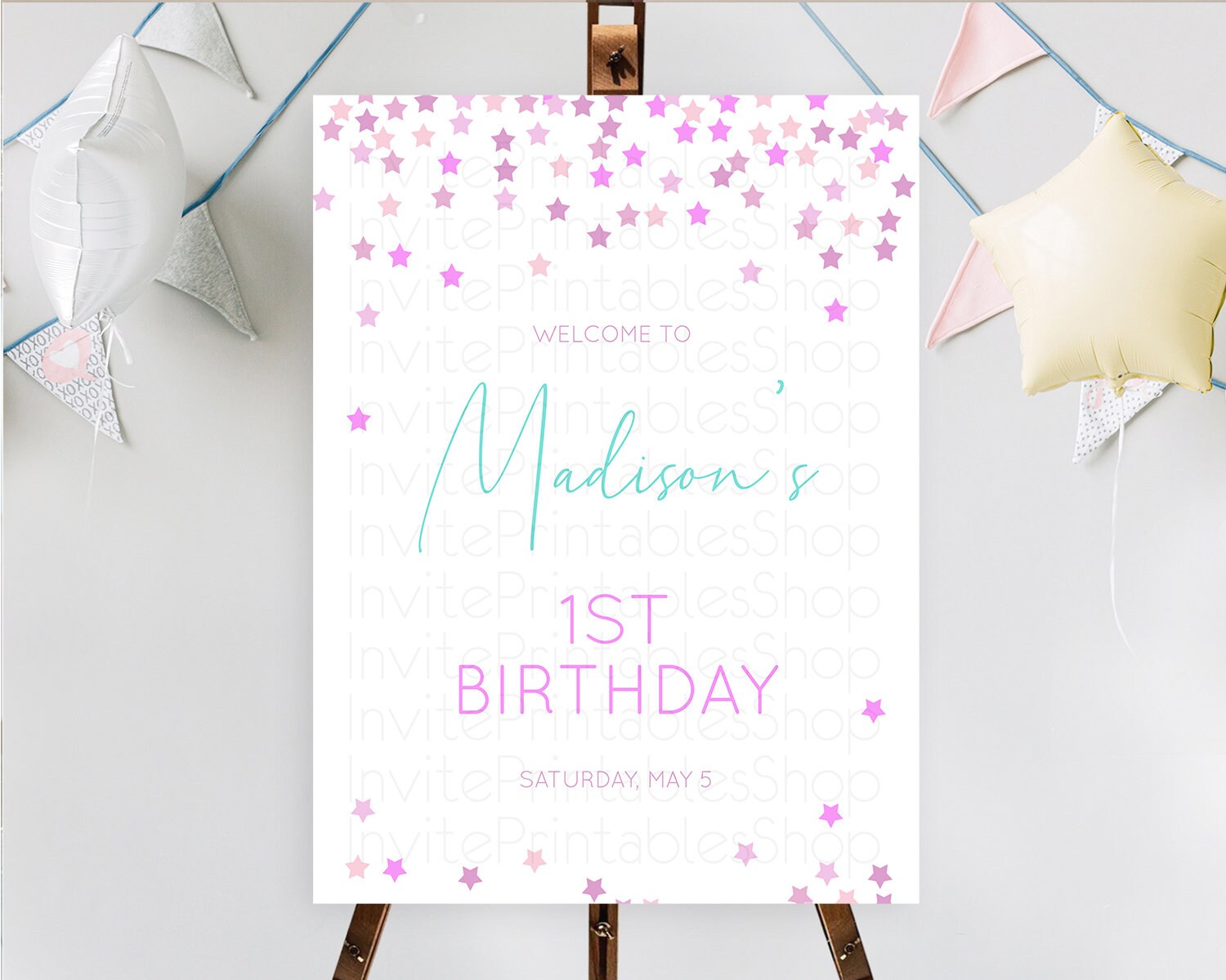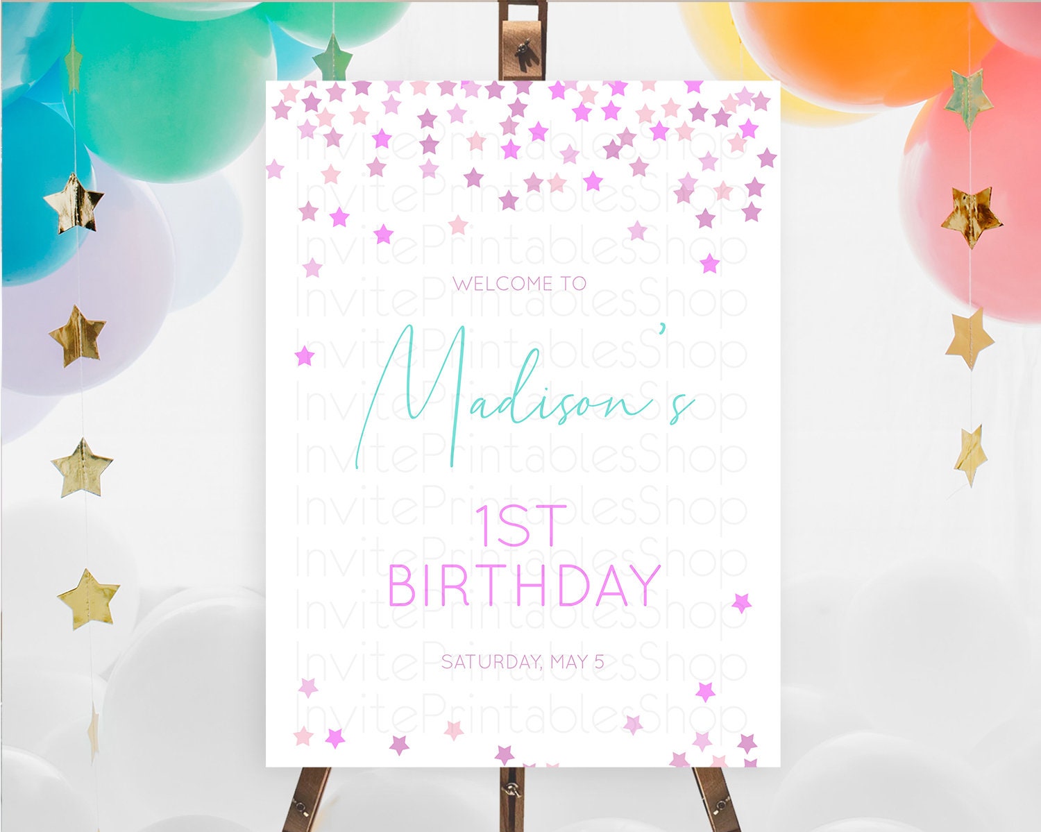 Star Welcome Board Pastel Stars Welcome Sign Shooting Star Rainbow Colorful Confetti Twinkle Little Star First Birthday Welcome Sign D10403