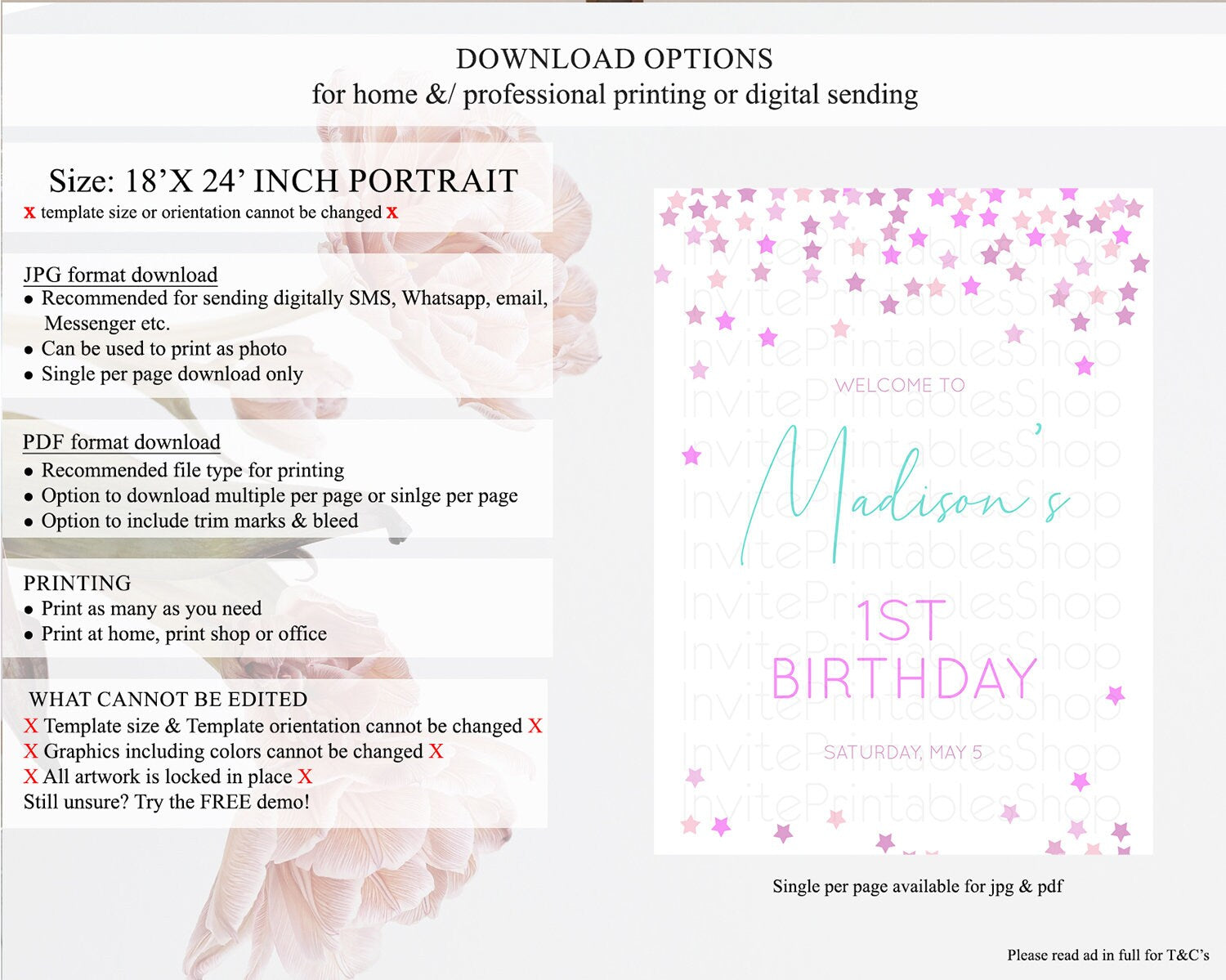 • Template size & orientation cannot be changed. Please use the demo link to confirm this product suits your needs.