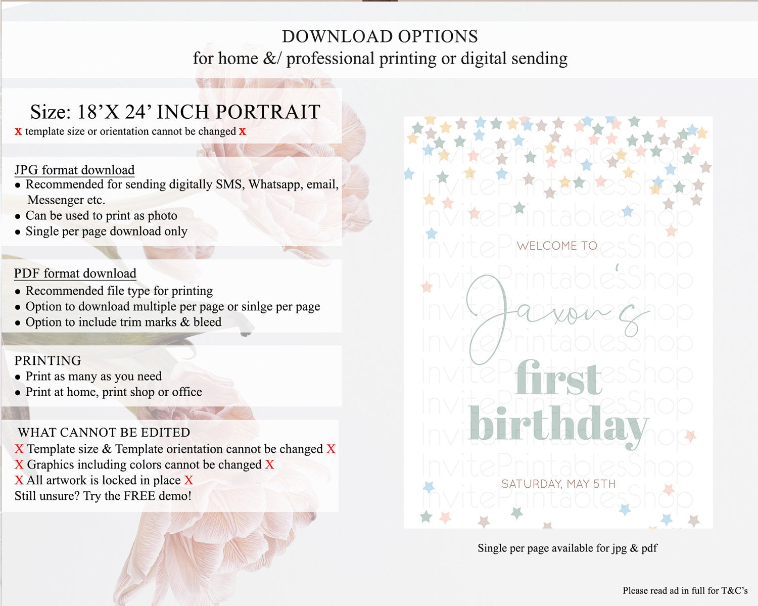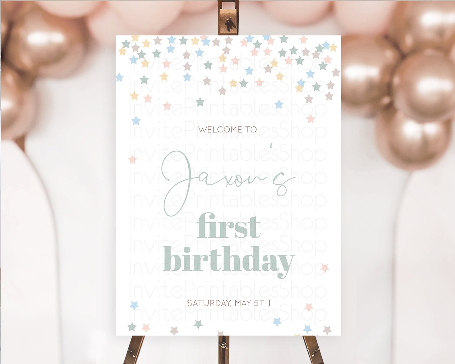 Star Welcome Board Pastel Stars Welcome Sign Shooting Star Rainbow Colorful Confetti Twinkle Little Star First Birthday Welcome Sign D10795