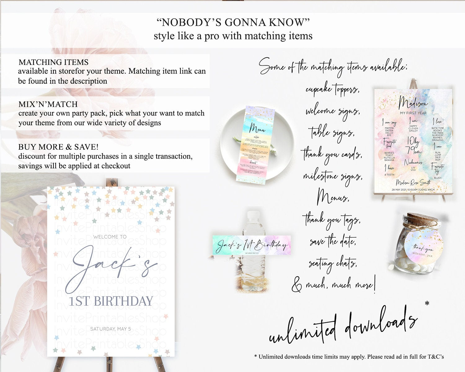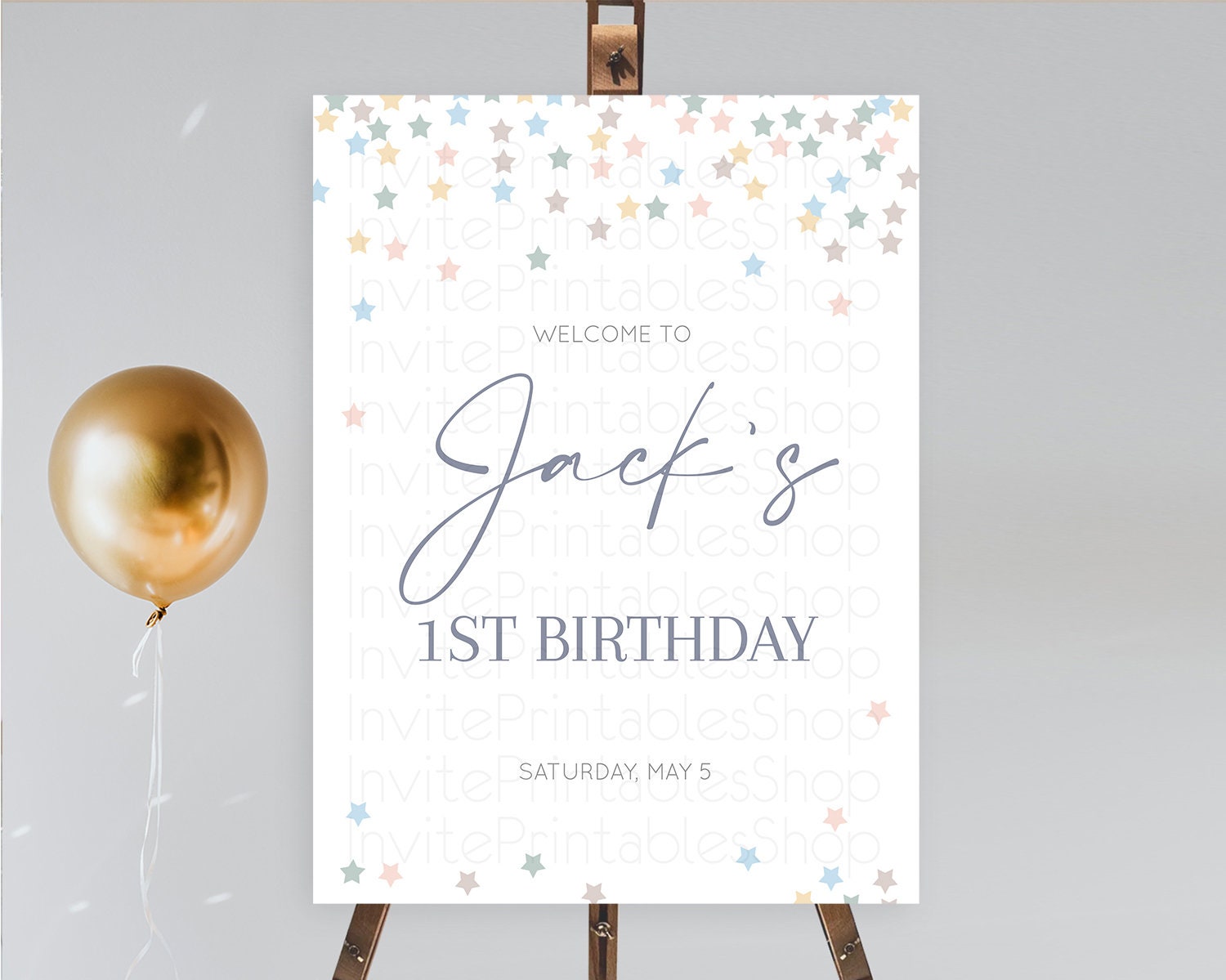 Star Welcome Board Pastel Stars Welcome Sign Shooting Star Rainbow Colorful Confetti Twinkle Little Star First Birthday Welcome Sign D10795