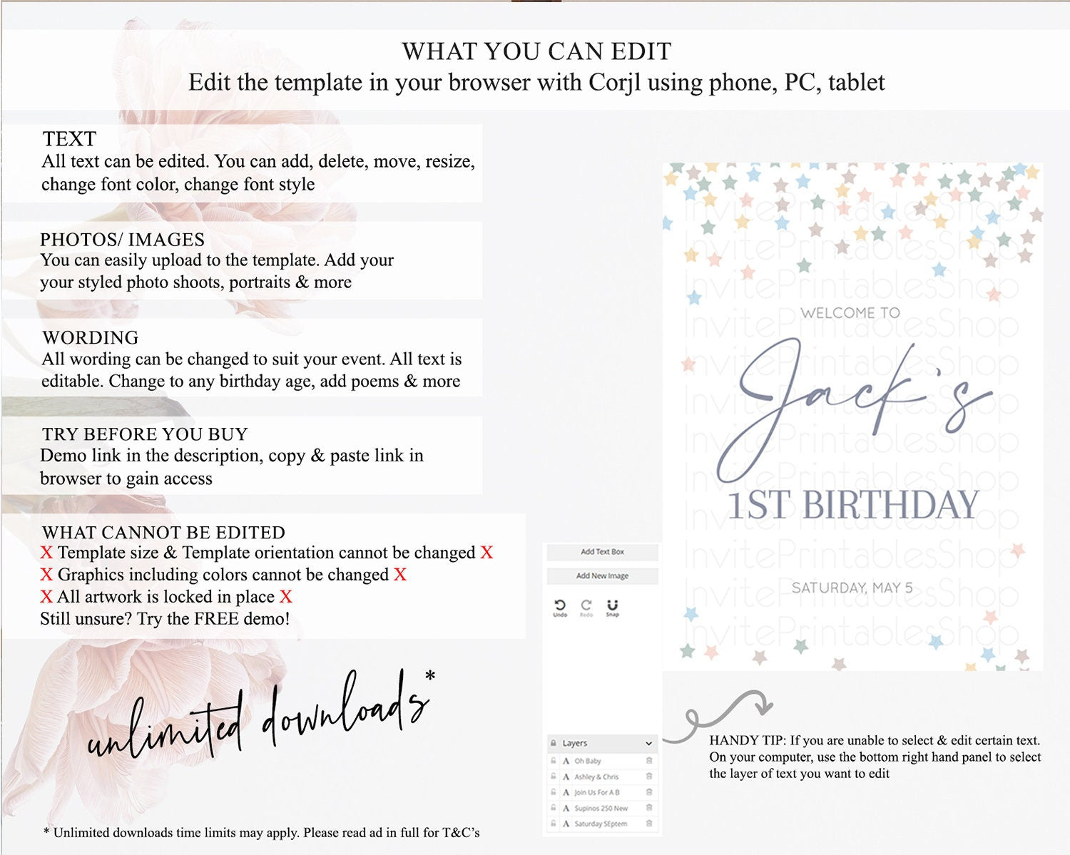 • After purchase, Corjl emails your editing link. Allow up to 15 minutes for delivery.
