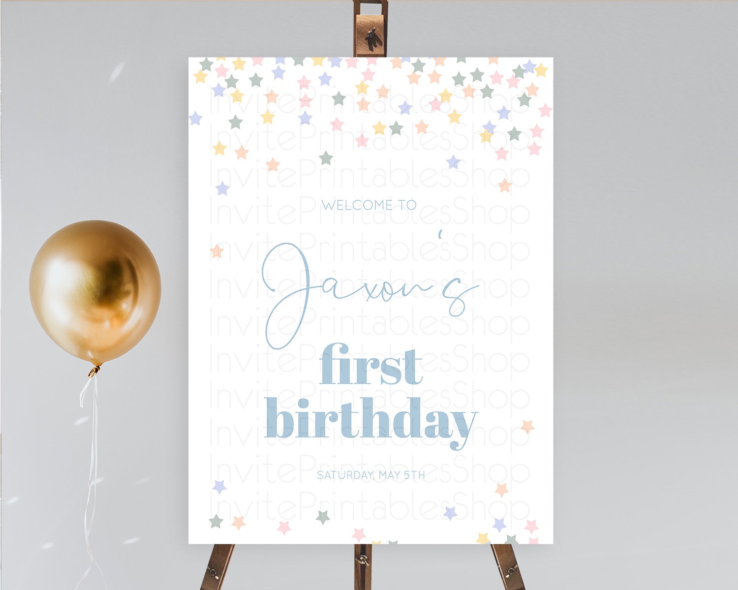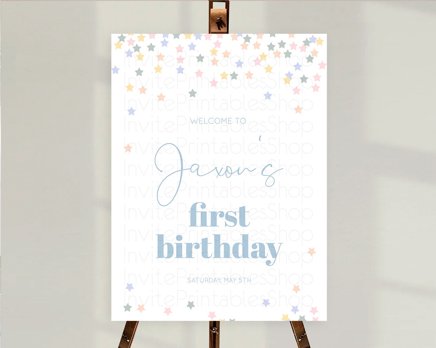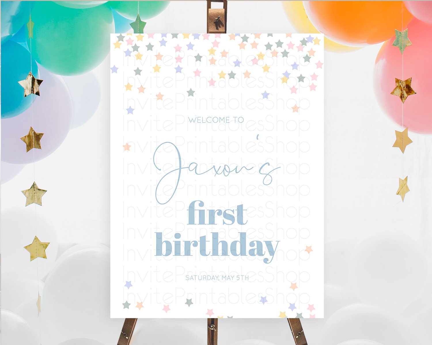 Star Welcome Board Pastel Stars Welcome Sign Shooting Star Rainbow Colorful Confetti Twinkle Little Star First Birthday Welcome Sign D10795