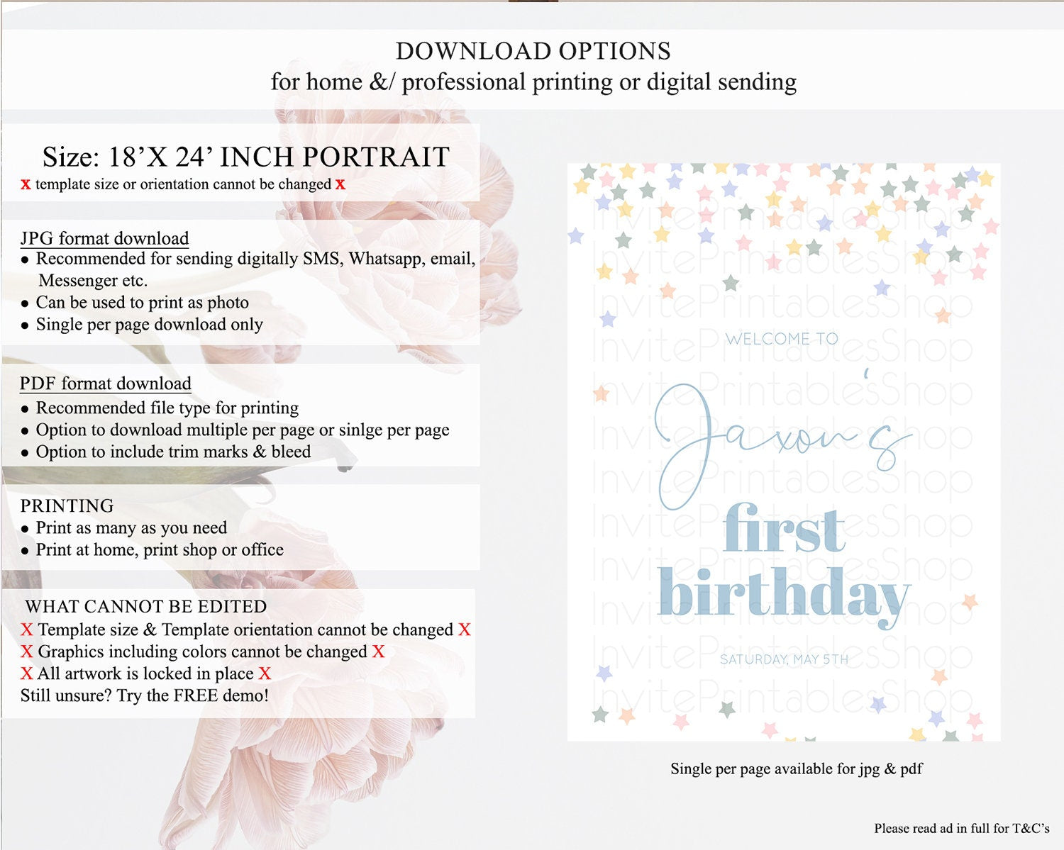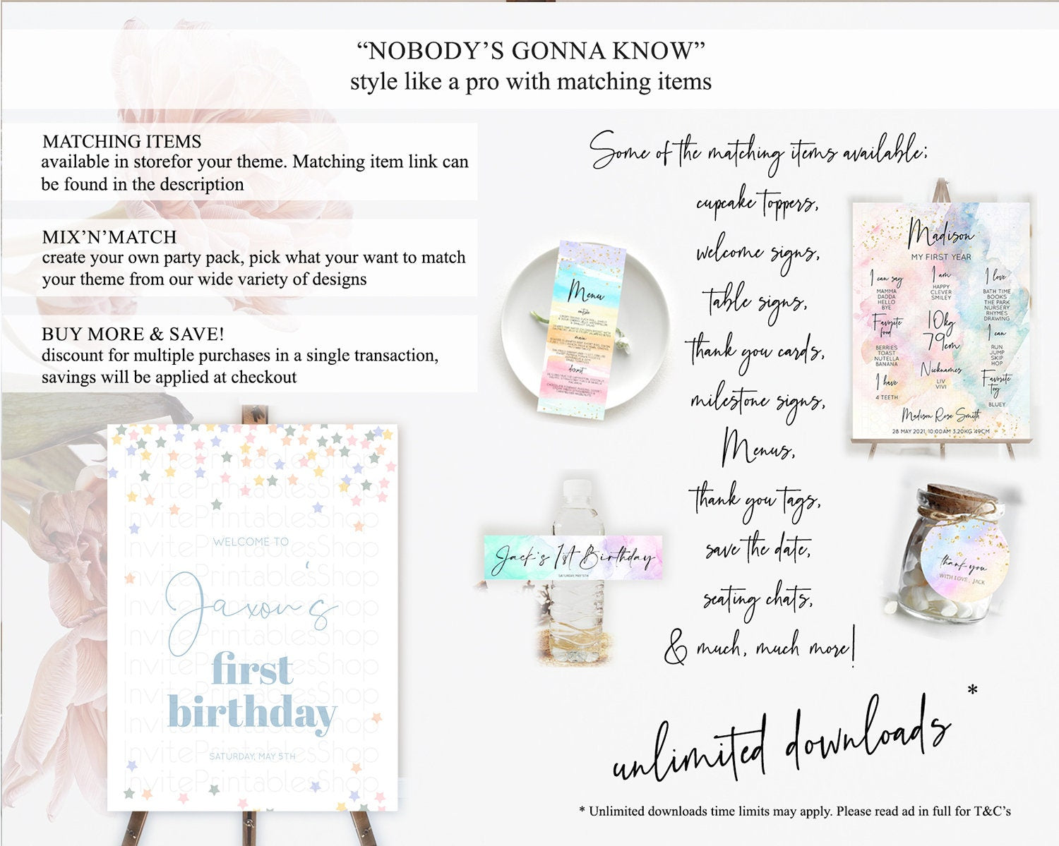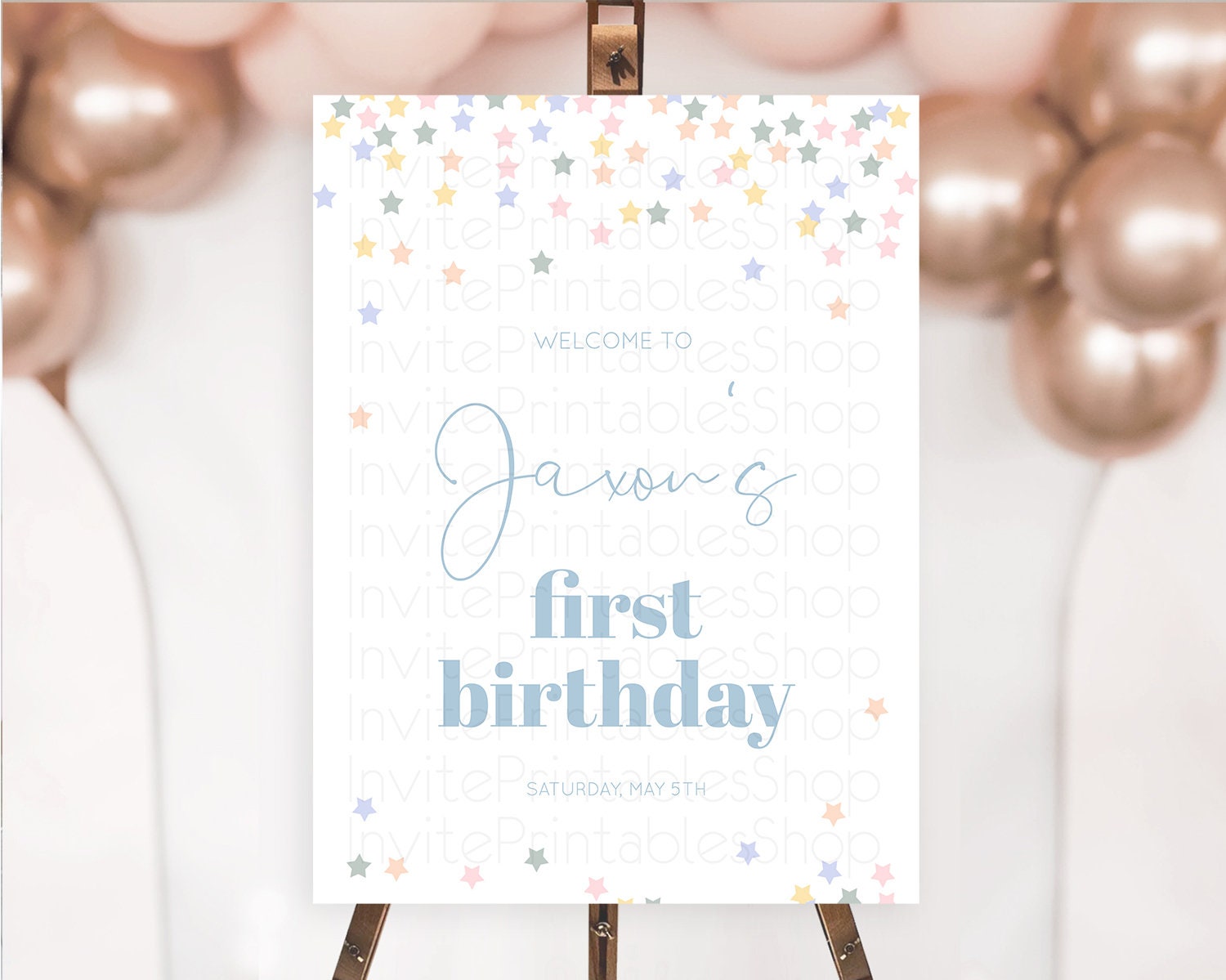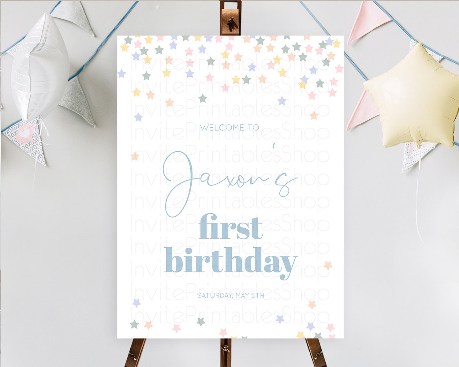 Star Welcome Board Pastel Stars Welcome Sign Shooting Star Rainbow Colorful Confetti Twinkle Little Star First Birthday Welcome Sign D10795