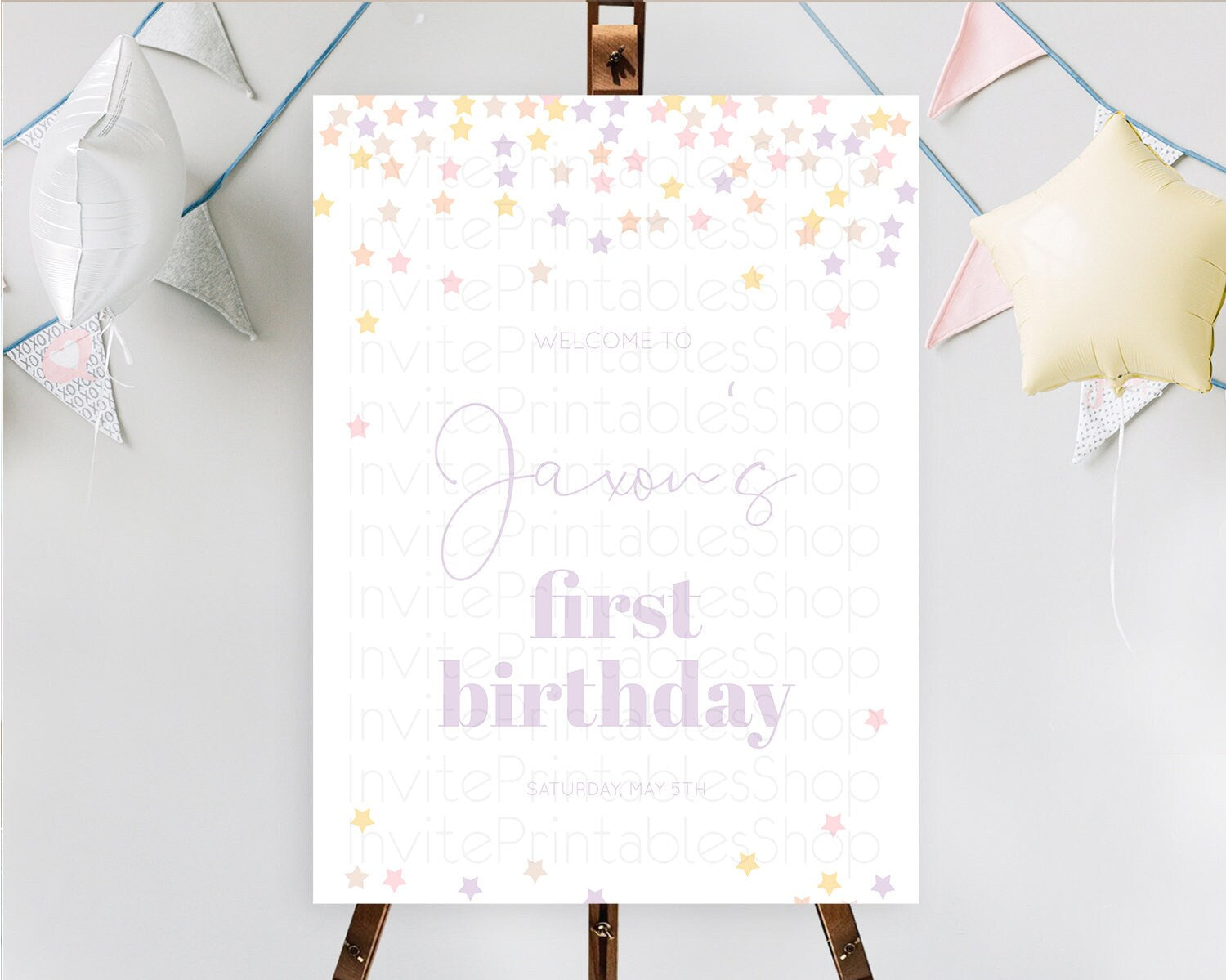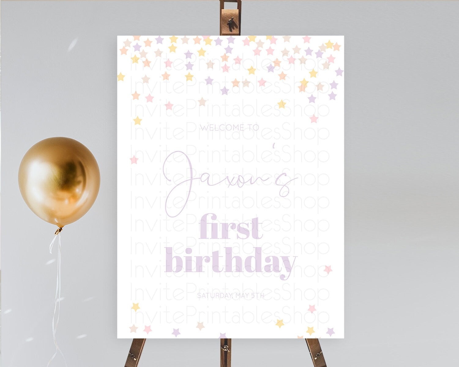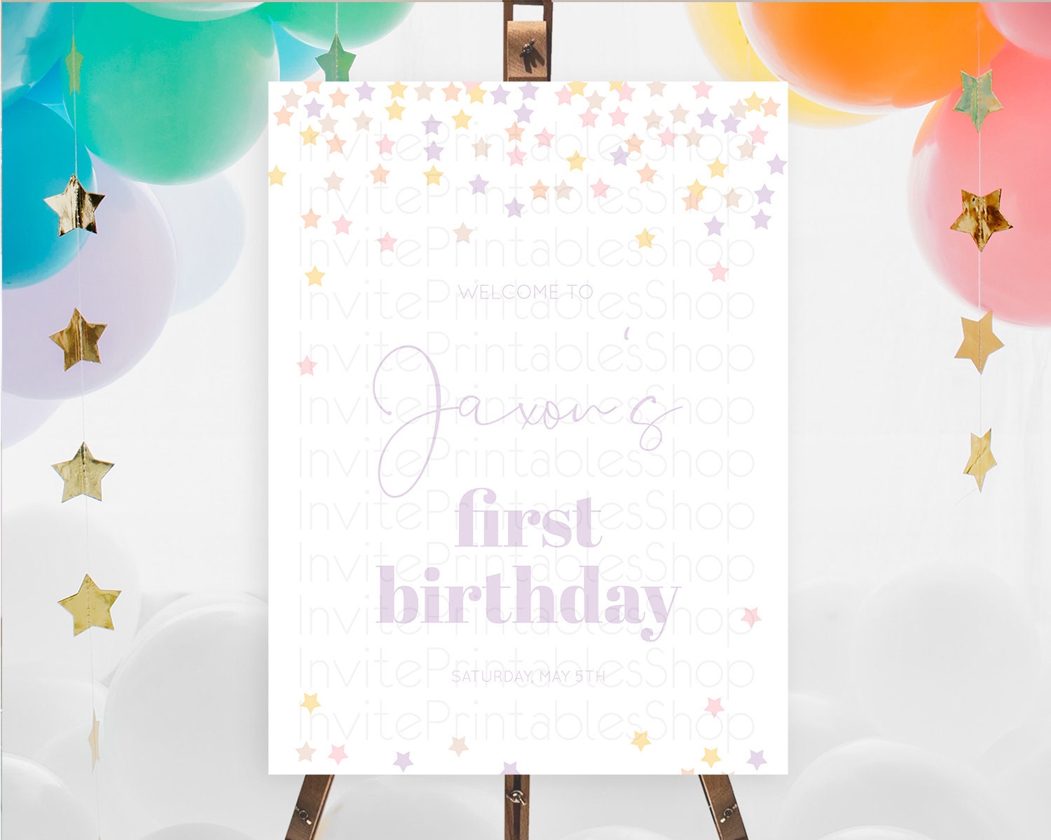 Star Welcome Board Pastel Stars Welcome Sign Shooting Star Rainbow Colorful Confetti Twinkle Little Star First Birthday Welcome Sign D10810
