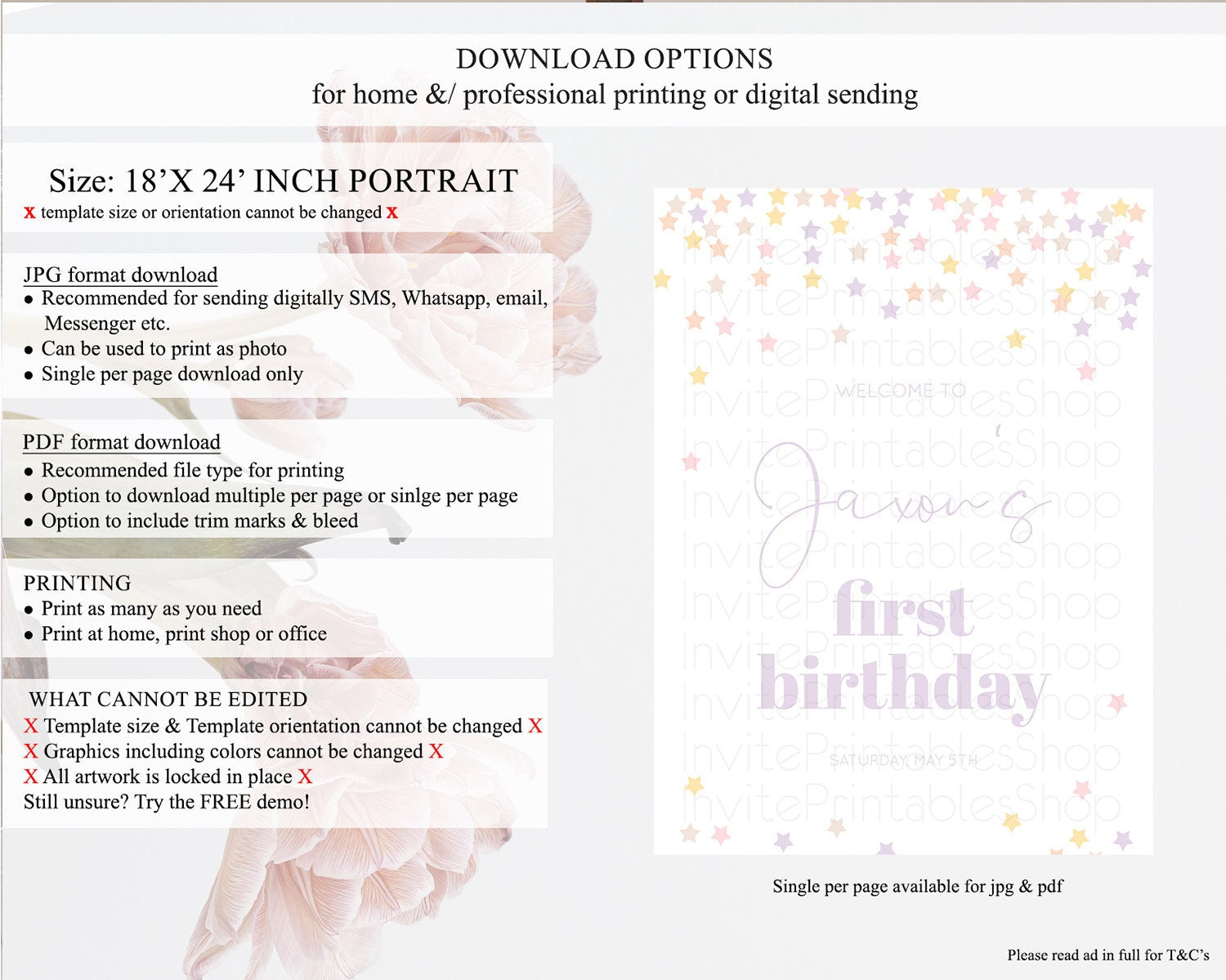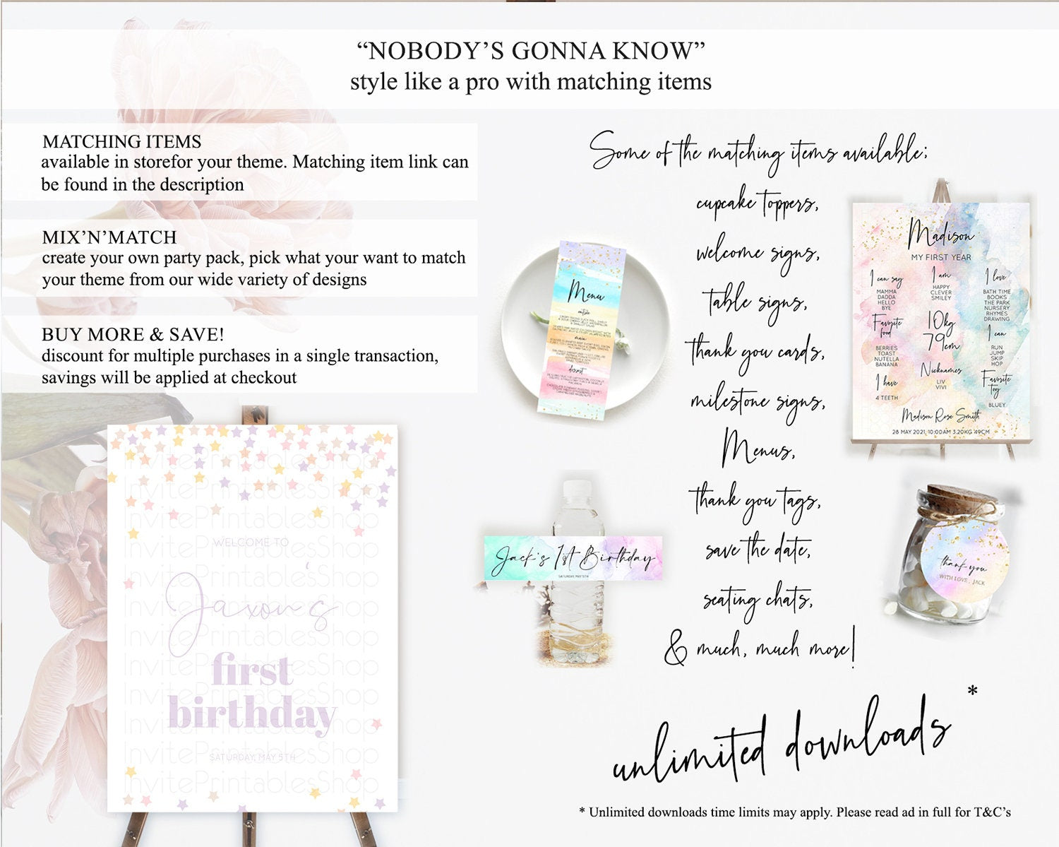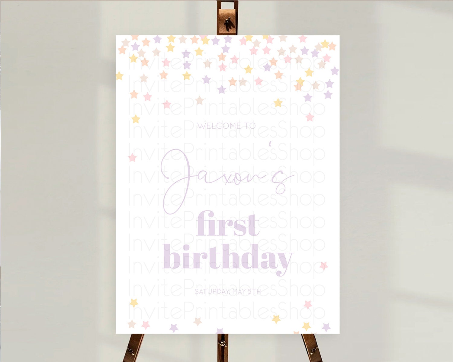 Star Welcome Board Pastel Stars Welcome Sign Shooting Star Rainbow Colorful Confetti Twinkle Little Star First Birthday Welcome Sign D10810