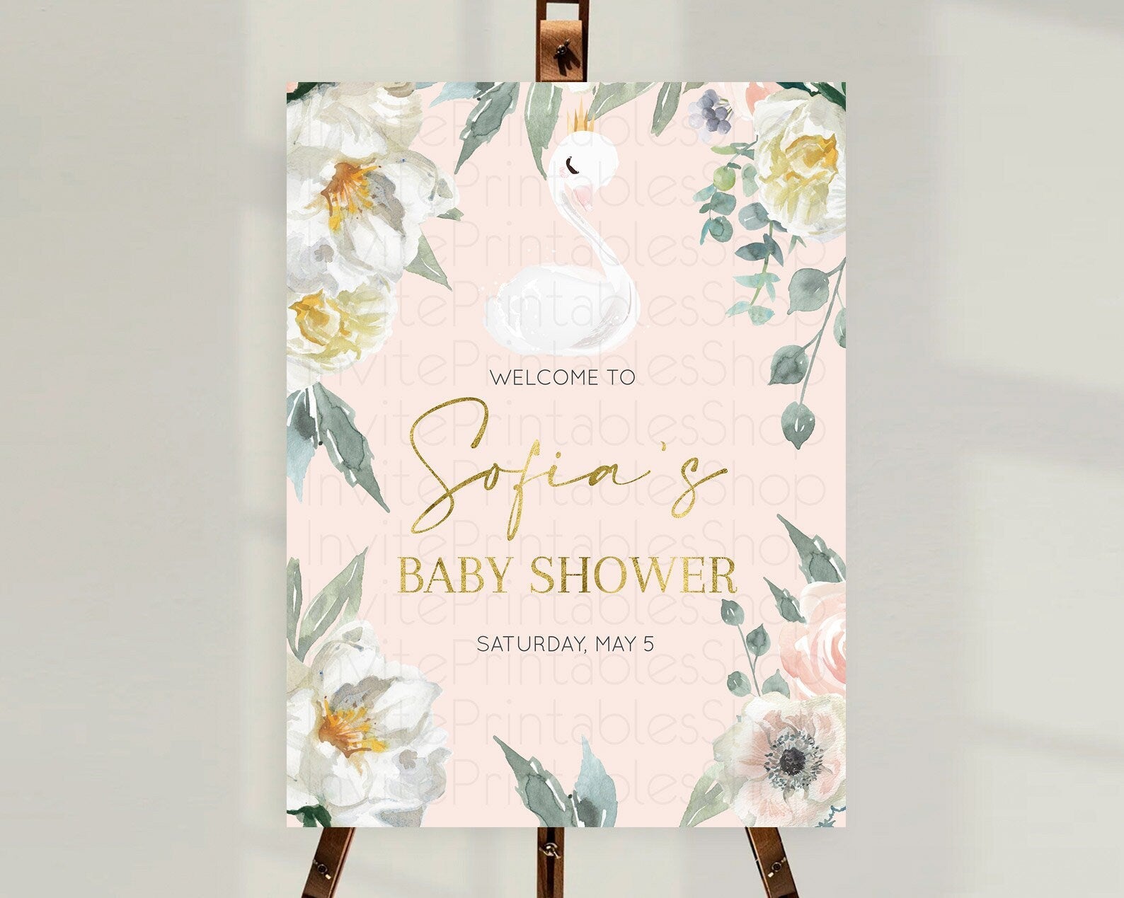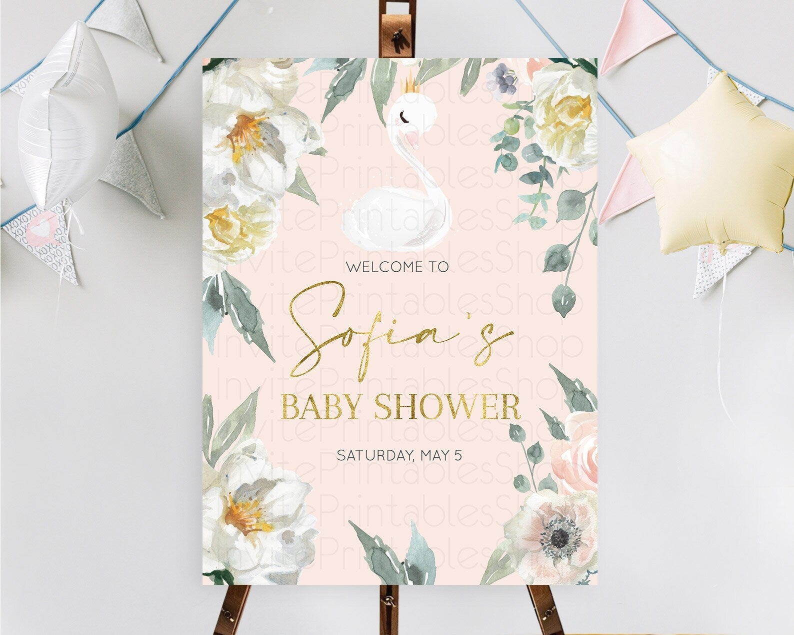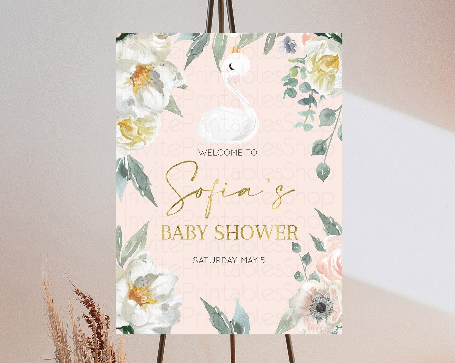 Swan Baby Shower Welcome Board Swan Princess Ballet Welcome Sign Enchanted Swan Lake Secret Garden Pastel Floral Swan Welcome Sign D10115