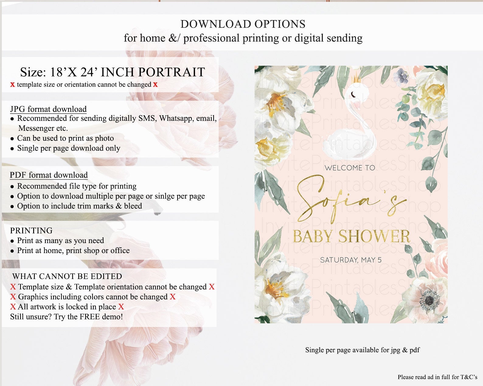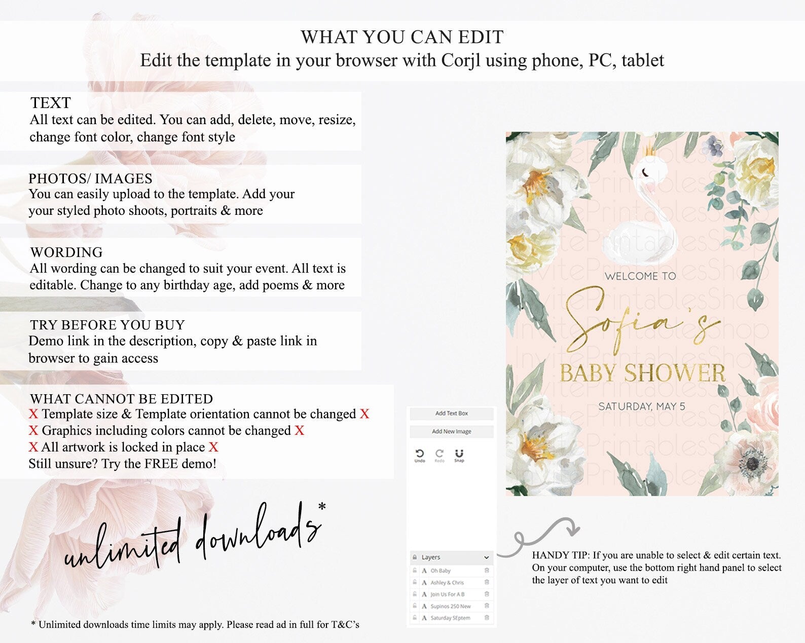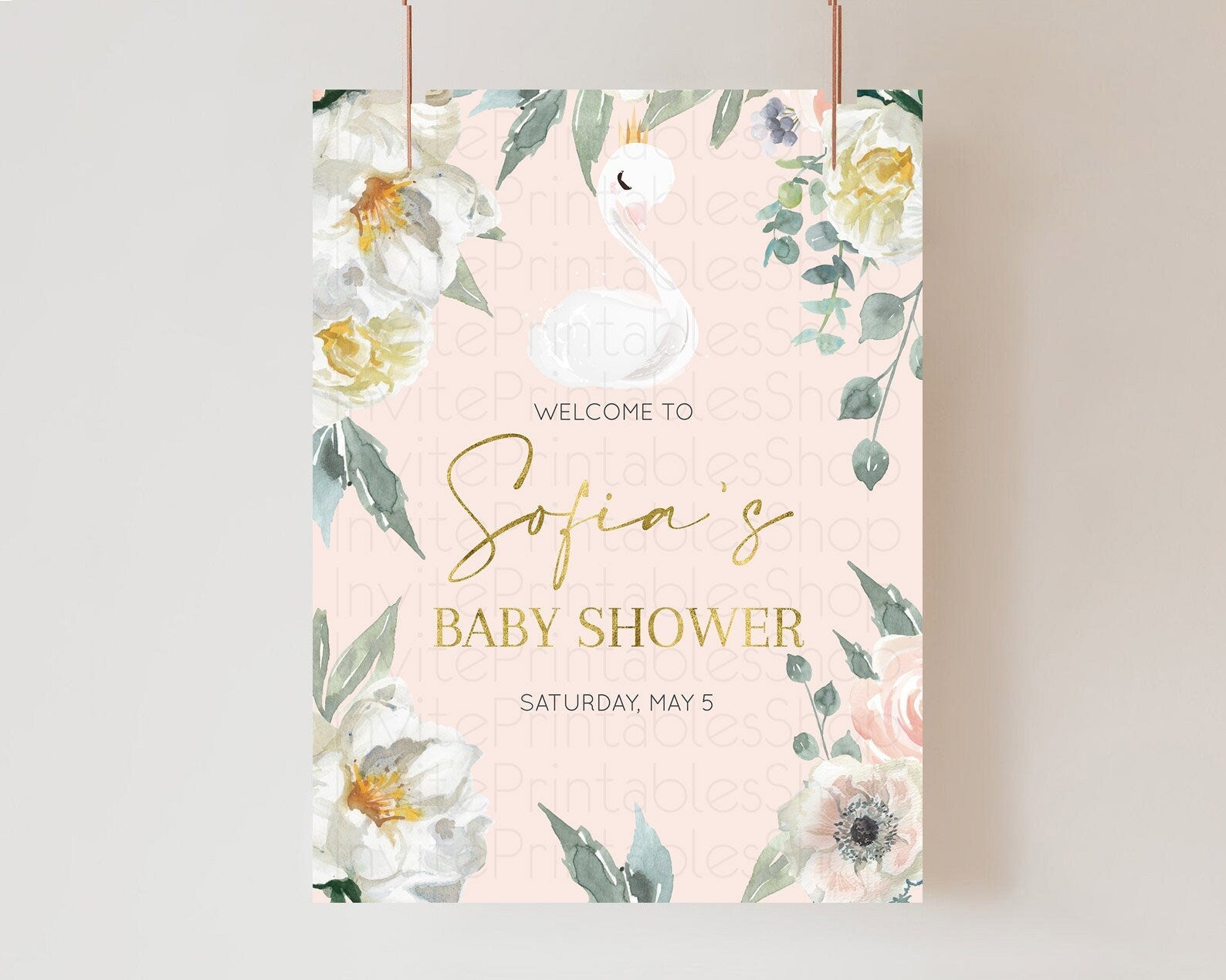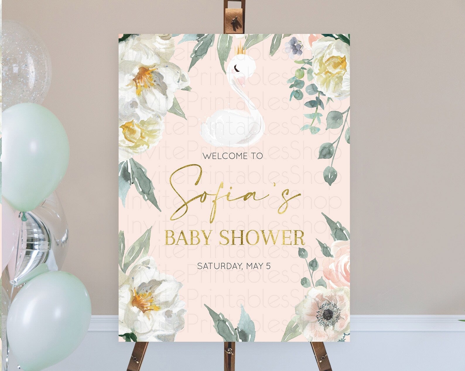 Swan Baby Shower Welcome Board Swan Princess Ballet Welcome Sign Enchanted Swan Lake Secret Garden Pastel Floral Swan Welcome Sign D10115