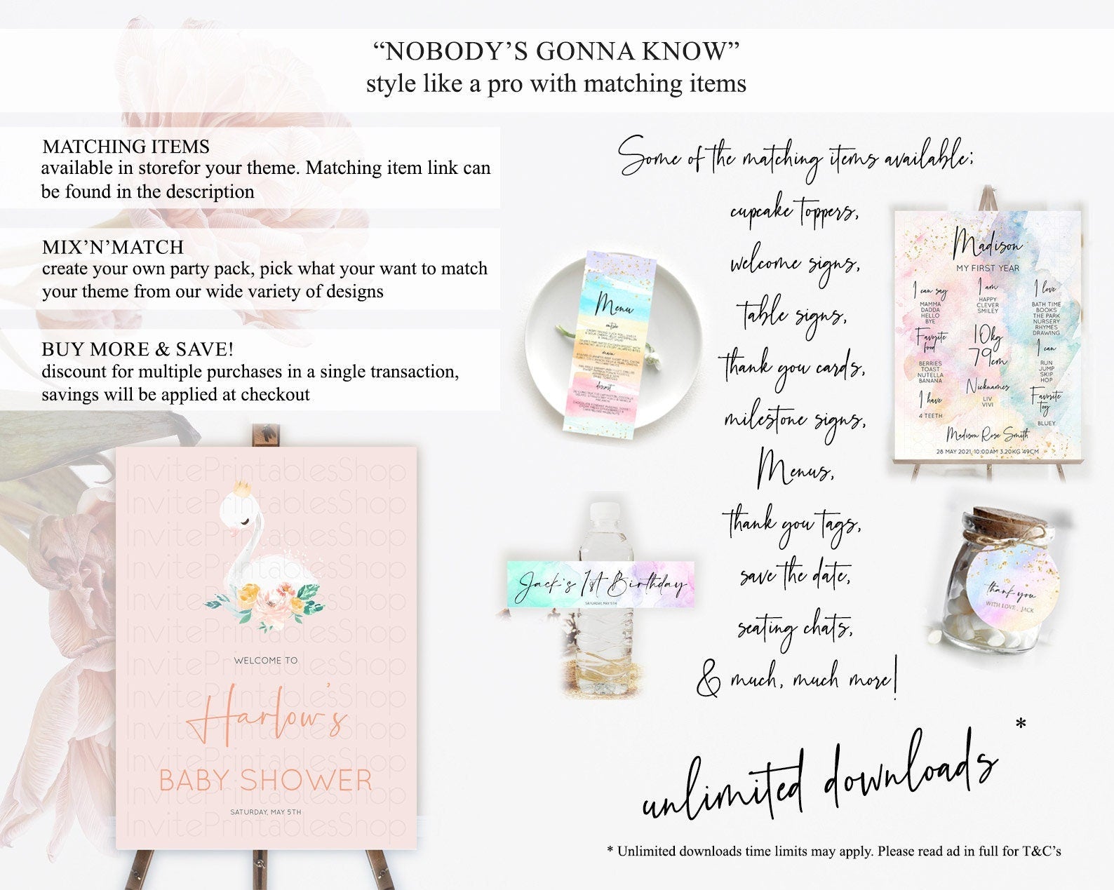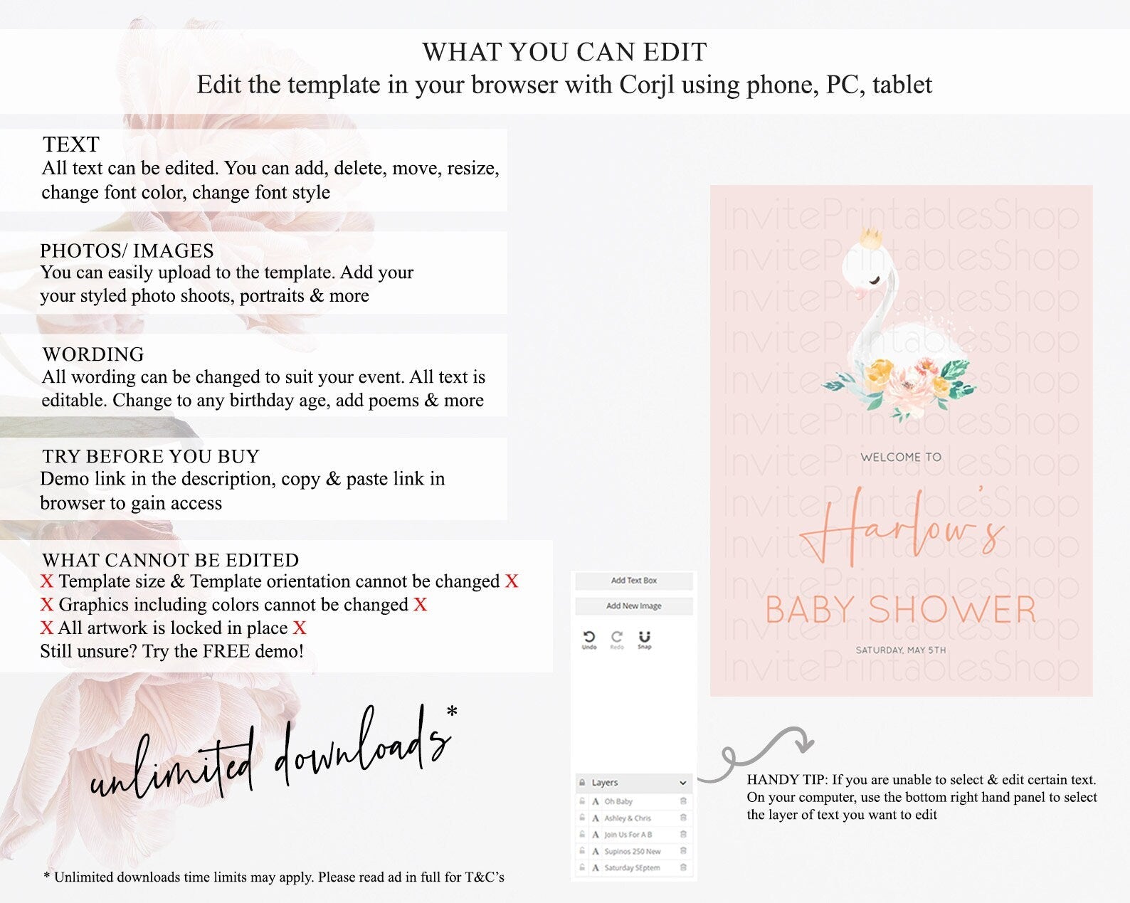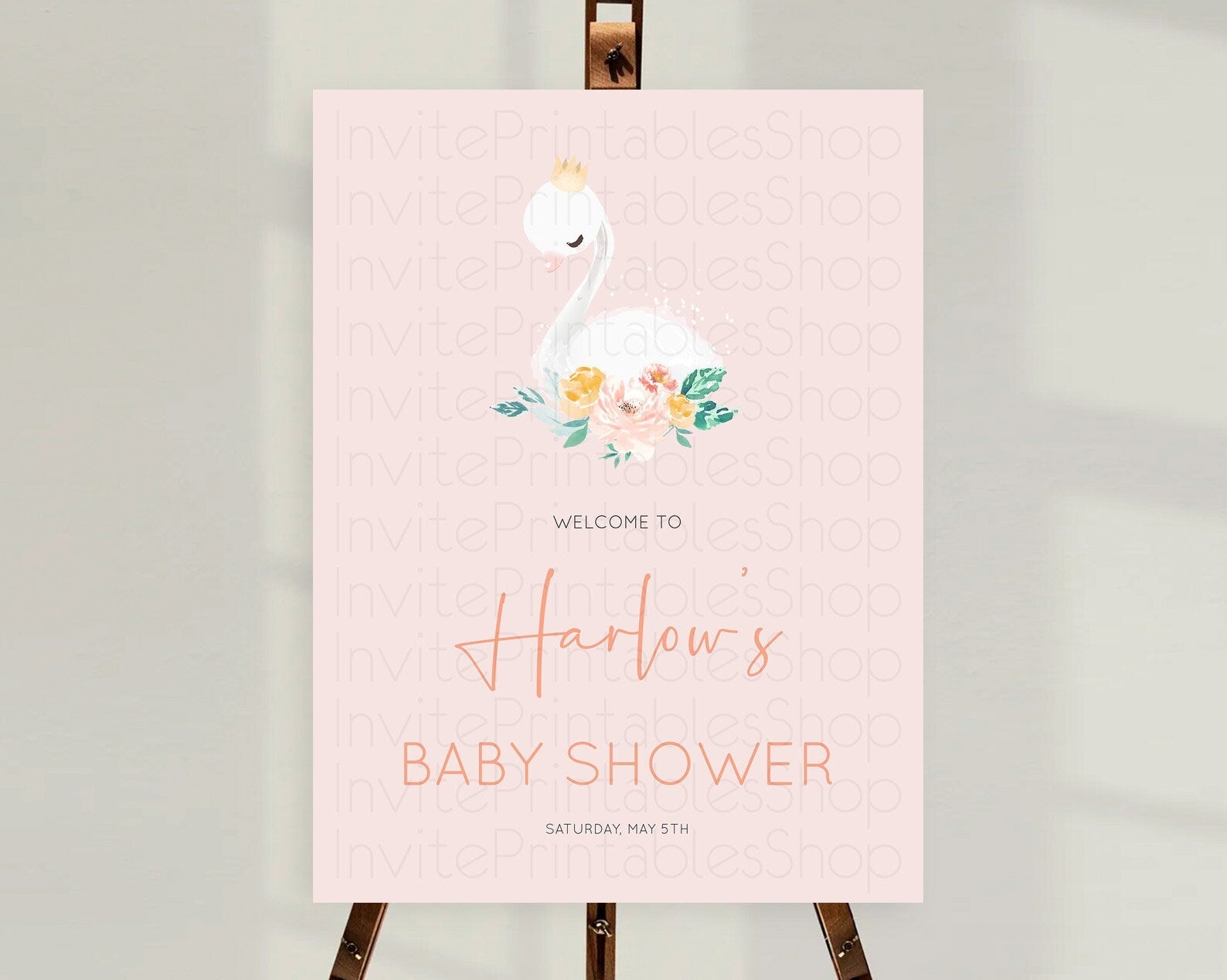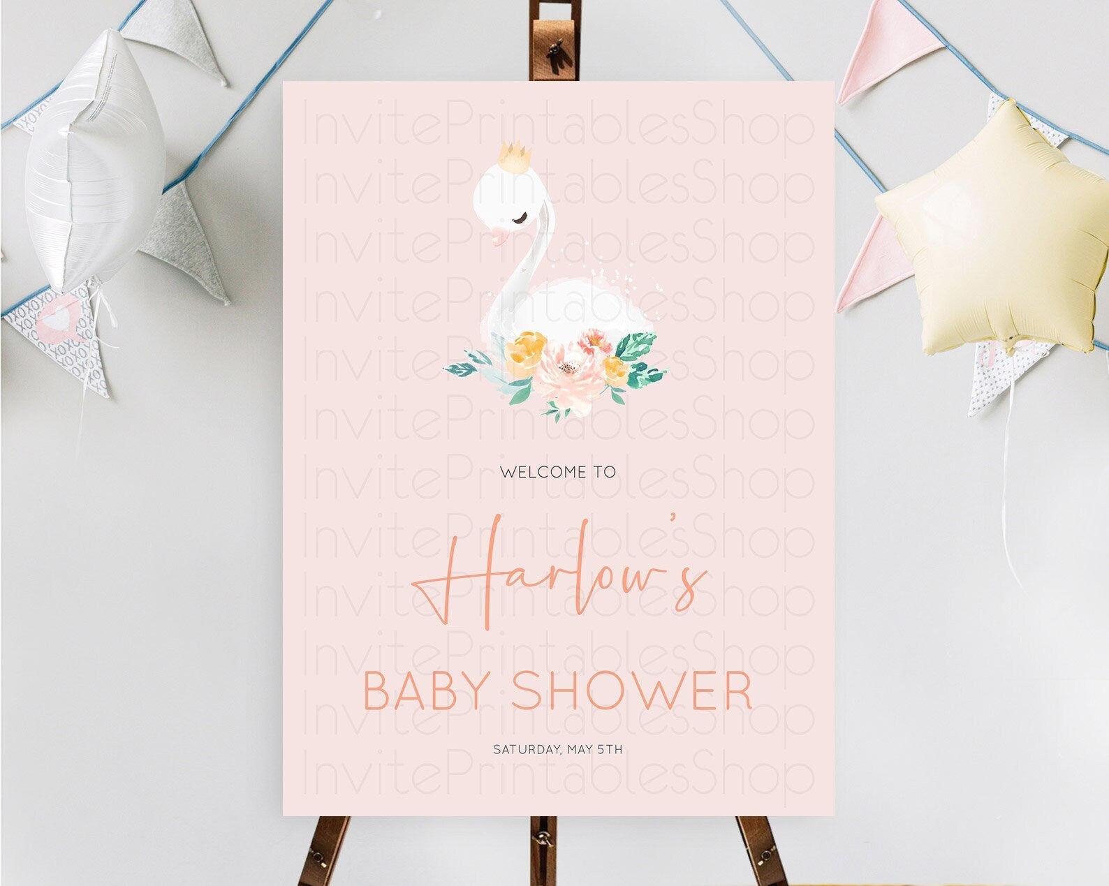 Swan Baby Shower Welcome Board Swan Princess Ballet Welcome Sign Enchanted Swan Lake Secret Garden Pastel Floral Swan Welcome Sign D10388