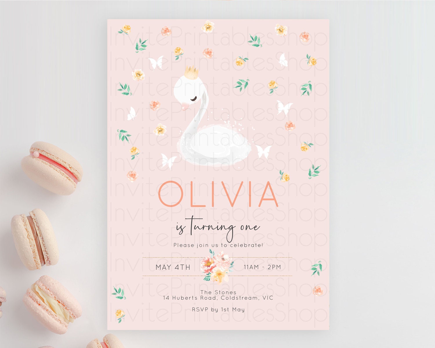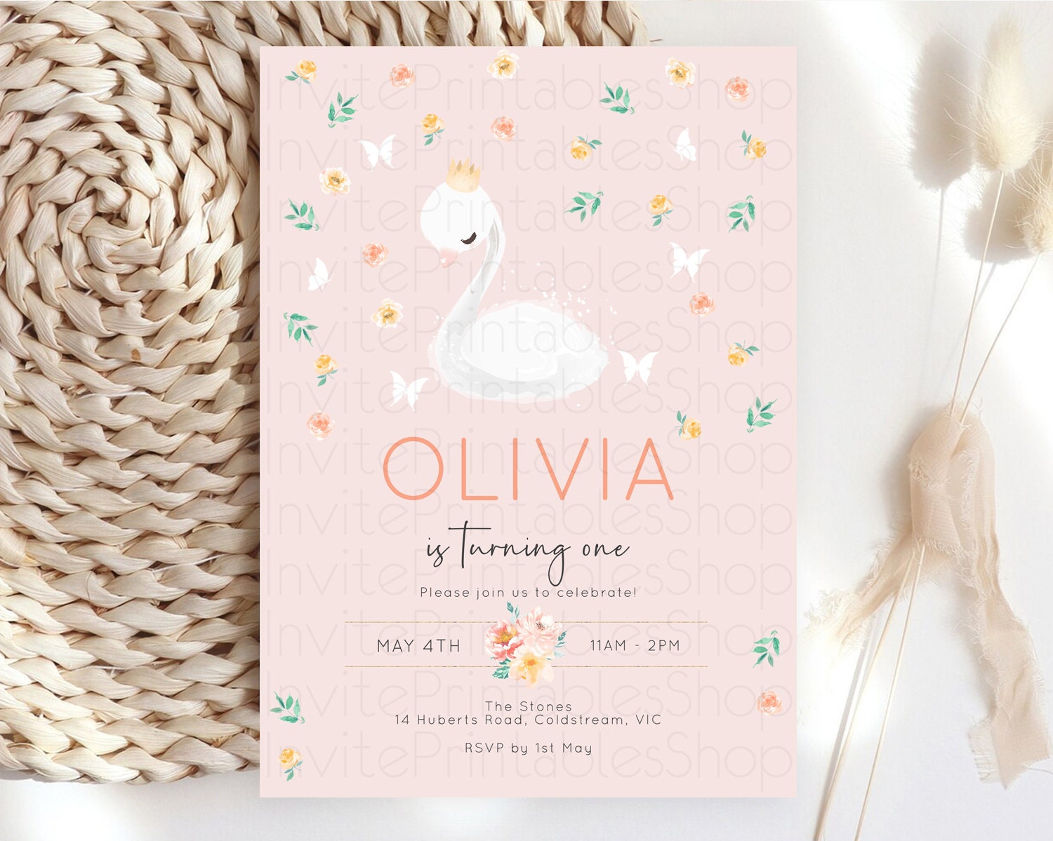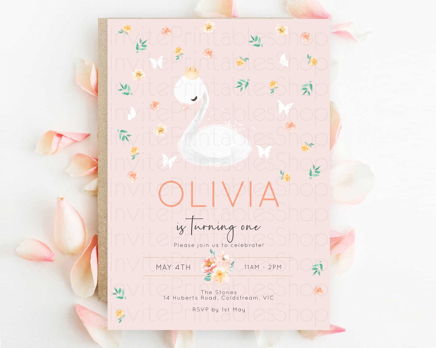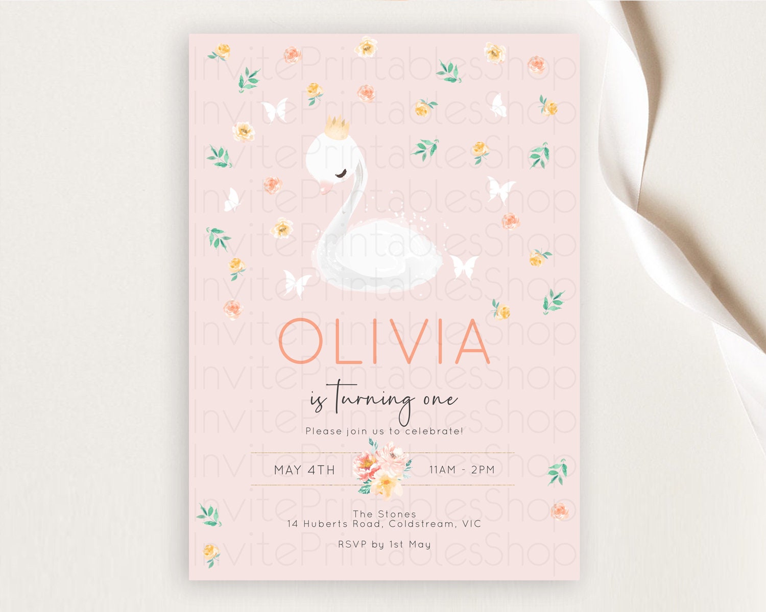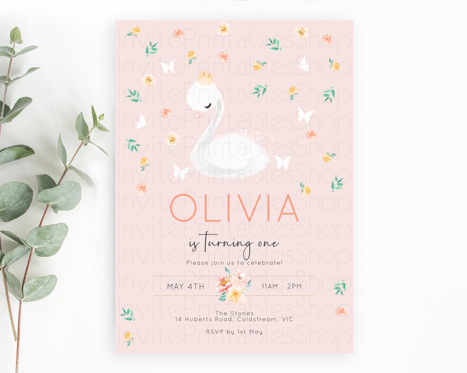 Swan Birthday Invitation Swan Princess Ballet Invitation Enchanted Forest Swan Lake Party Secret Garden Watercolour Pastel Floral D10388