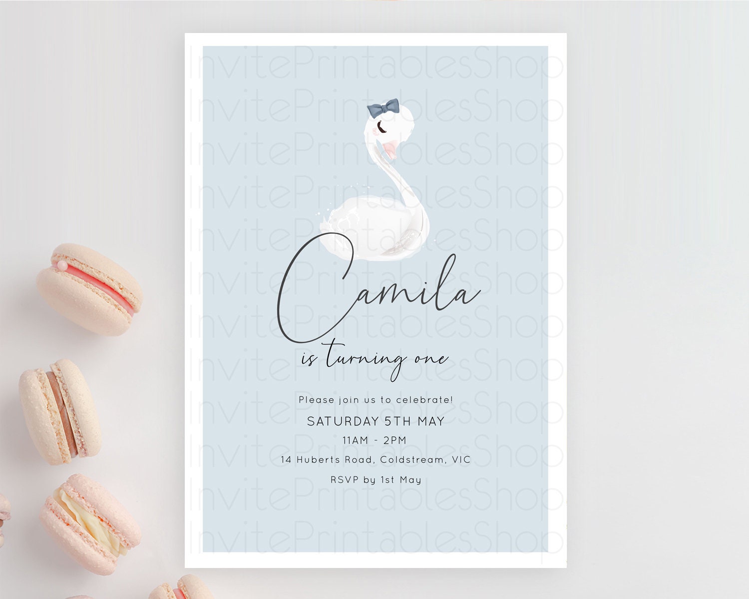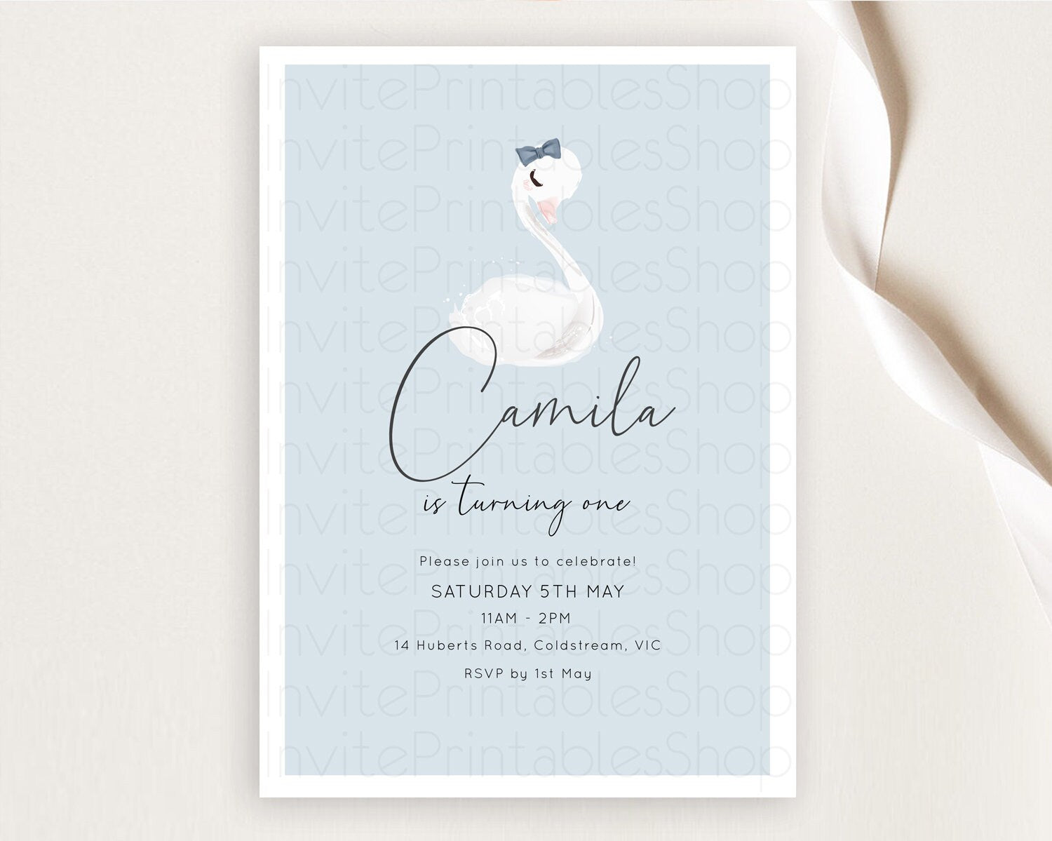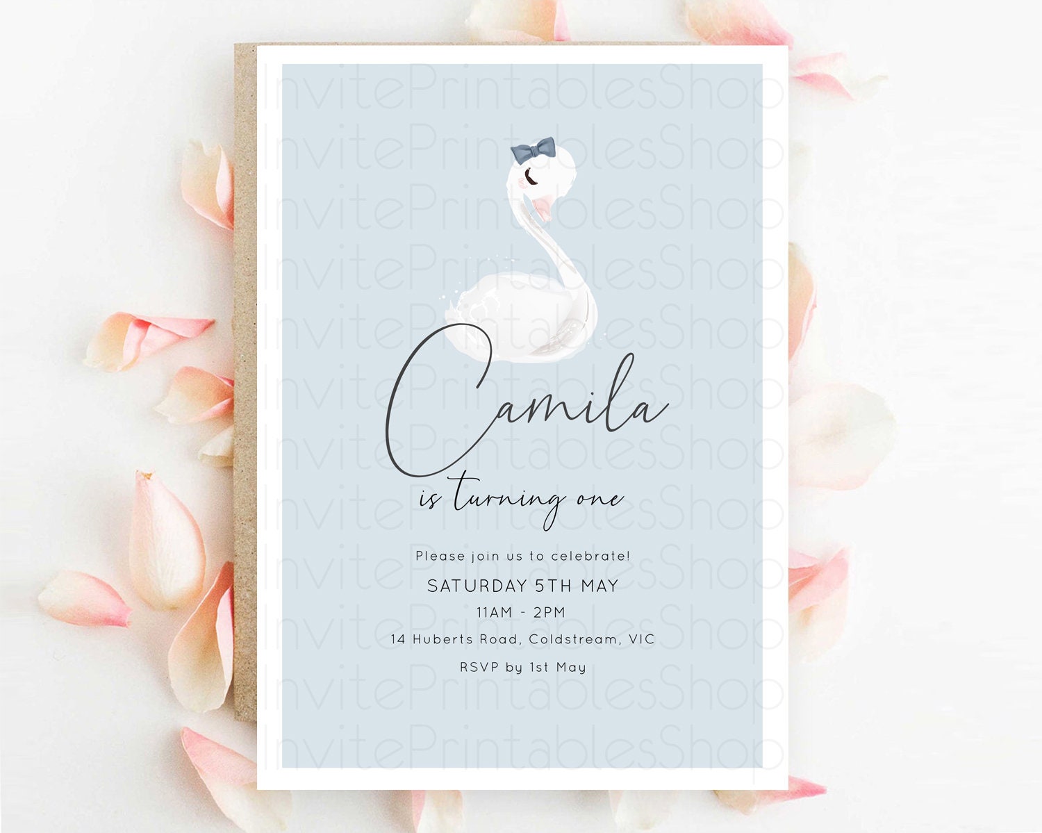 Swan Birthday Invitation Swan Princess Ballet Invitation Enchanted Forest Swan Lake Party Secret Garden Watercolour Pastel Floral D10760