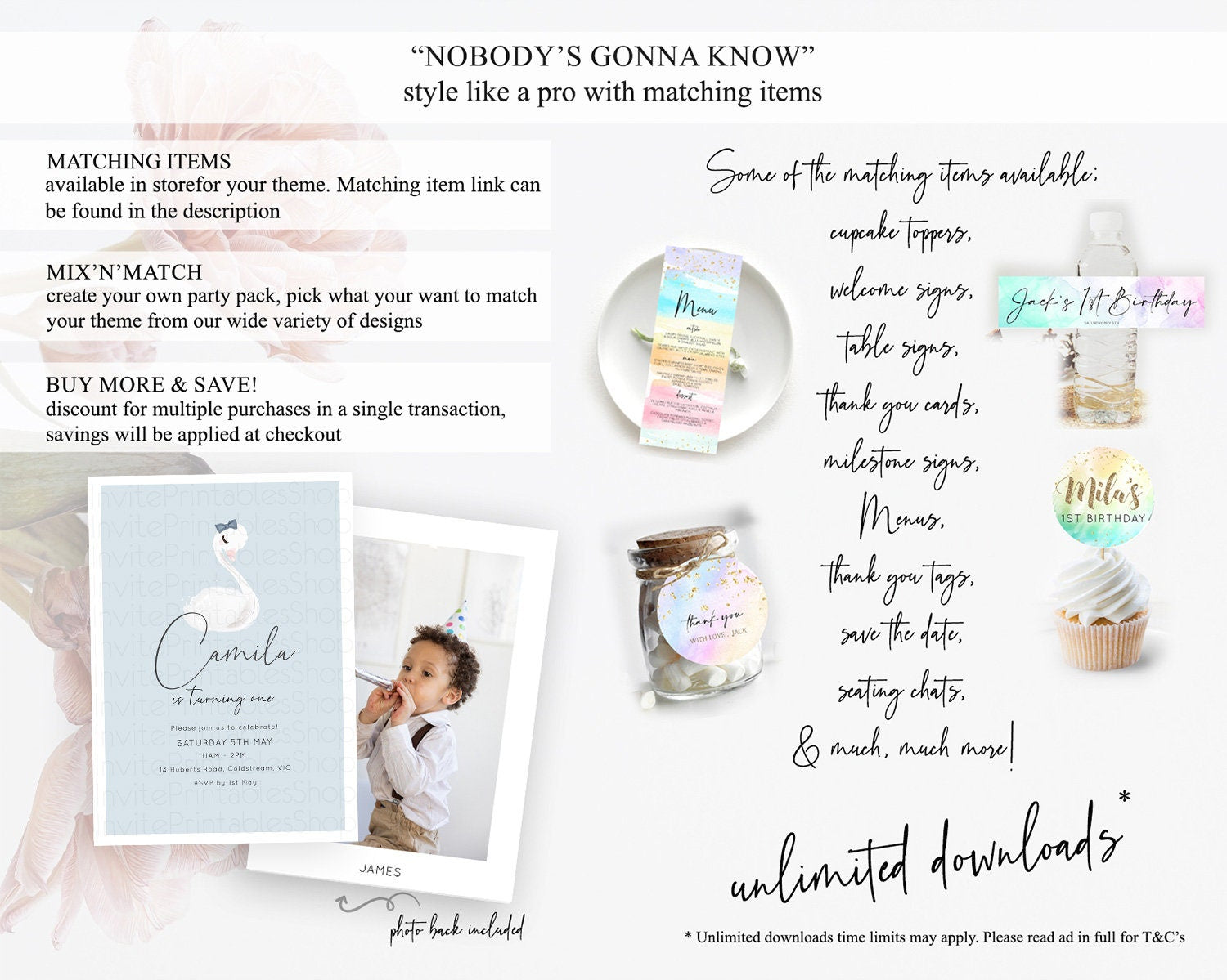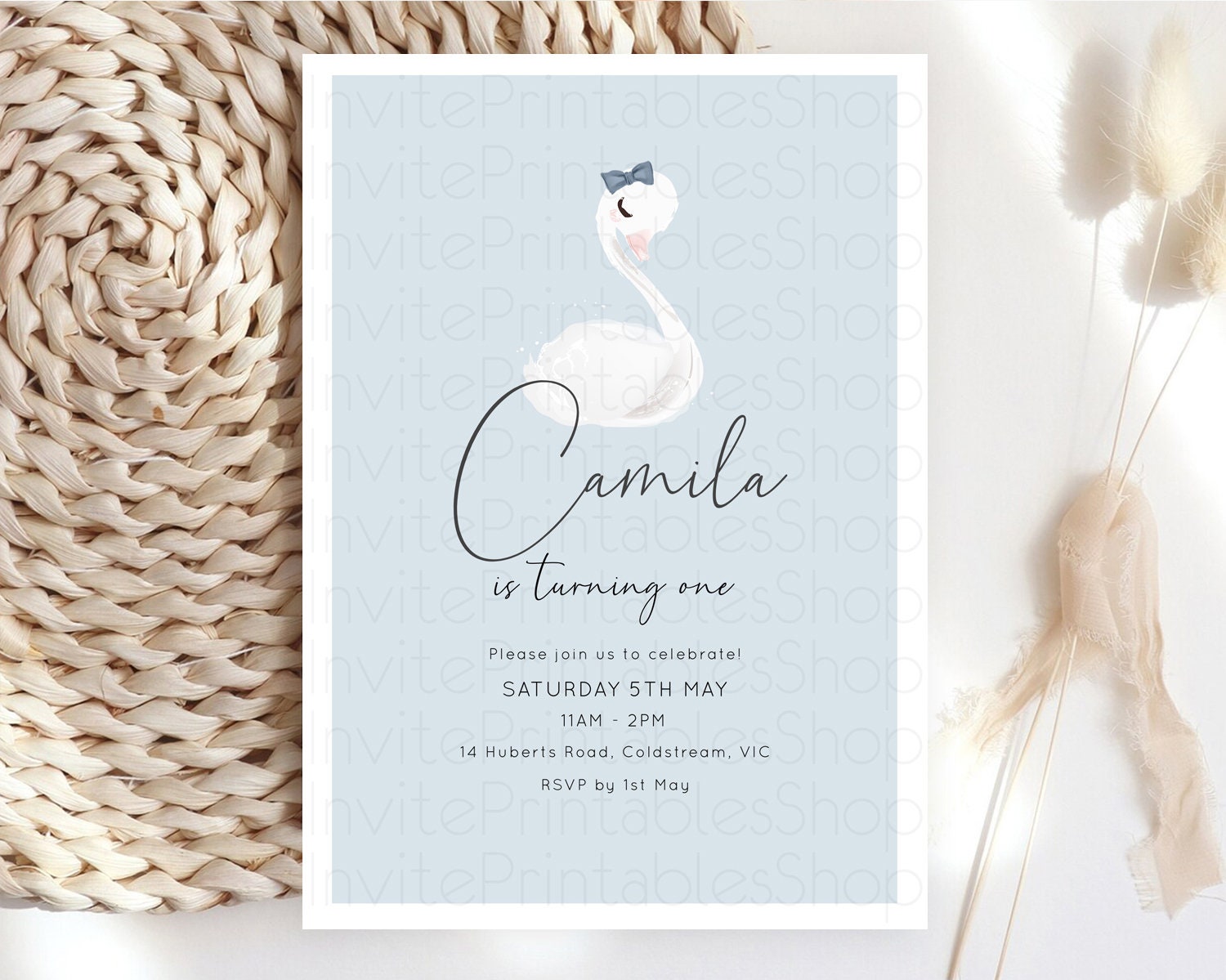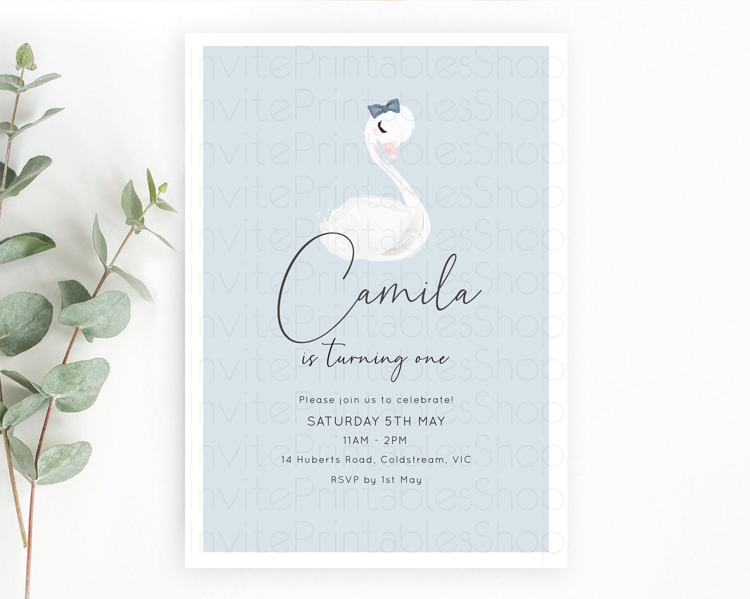 Swan Birthday Invitation Swan Princess Ballet Invitation Enchanted Forest Swan Lake Party Secret Garden Watercolour Pastel Floral D10760