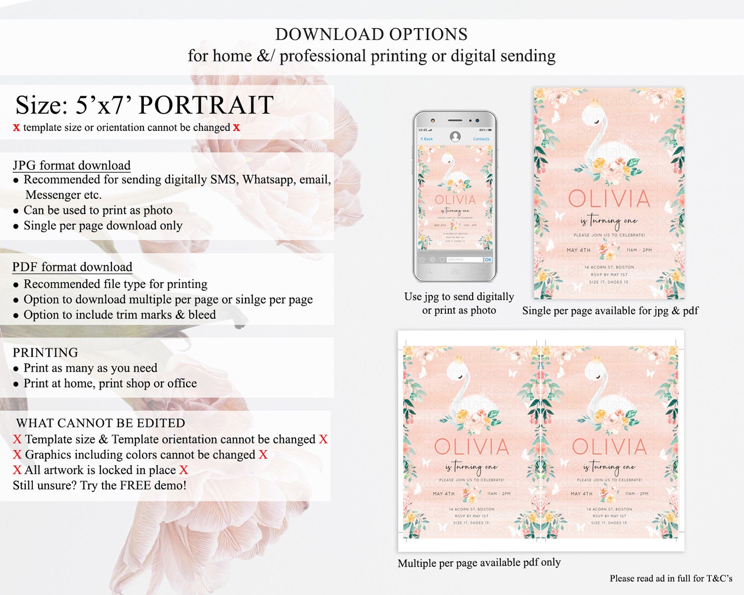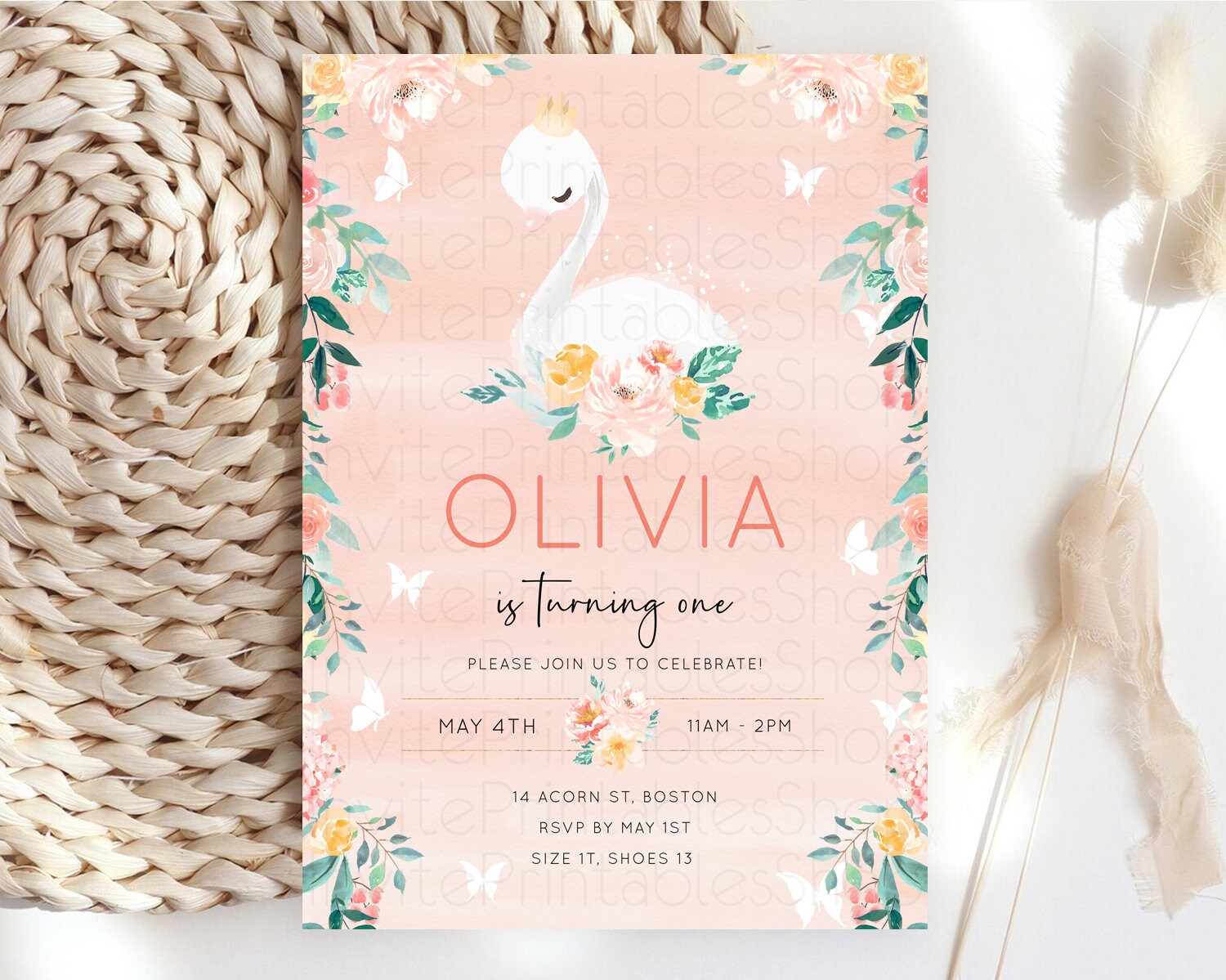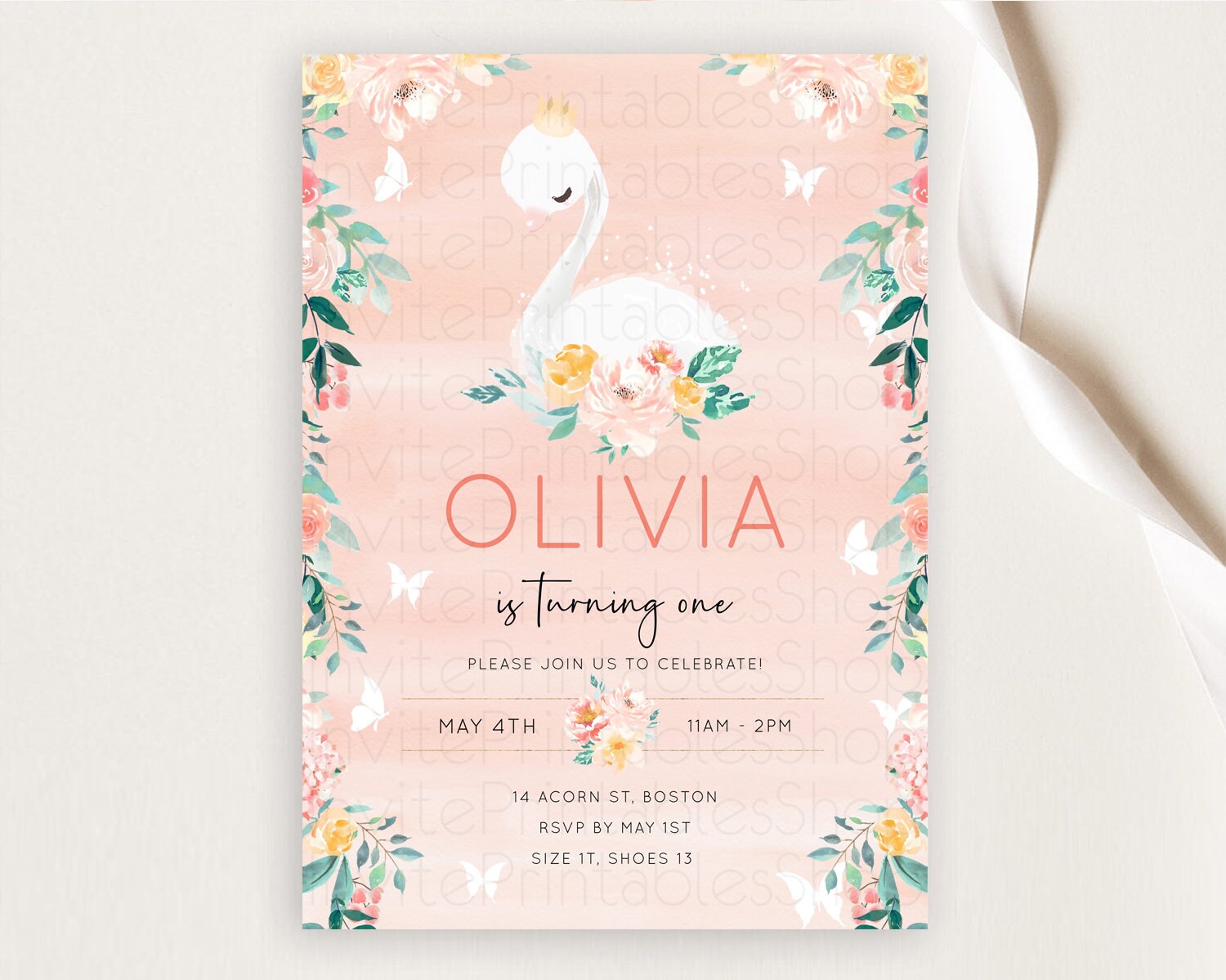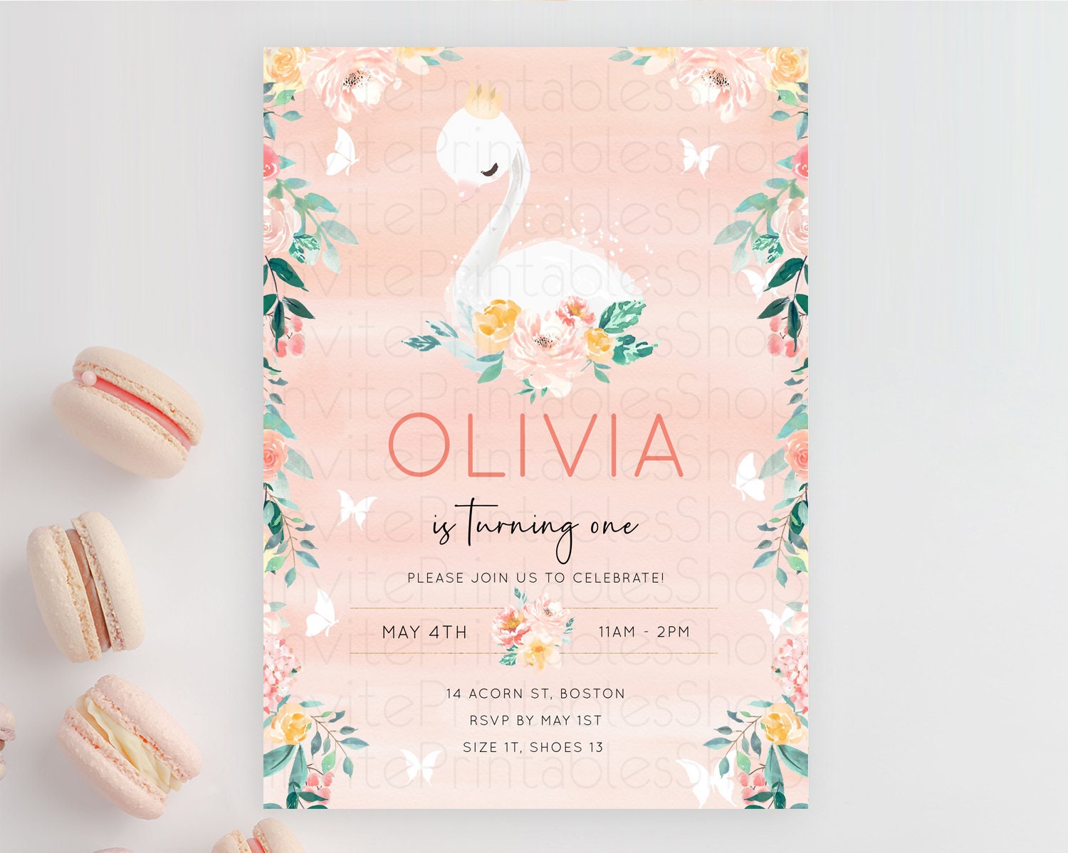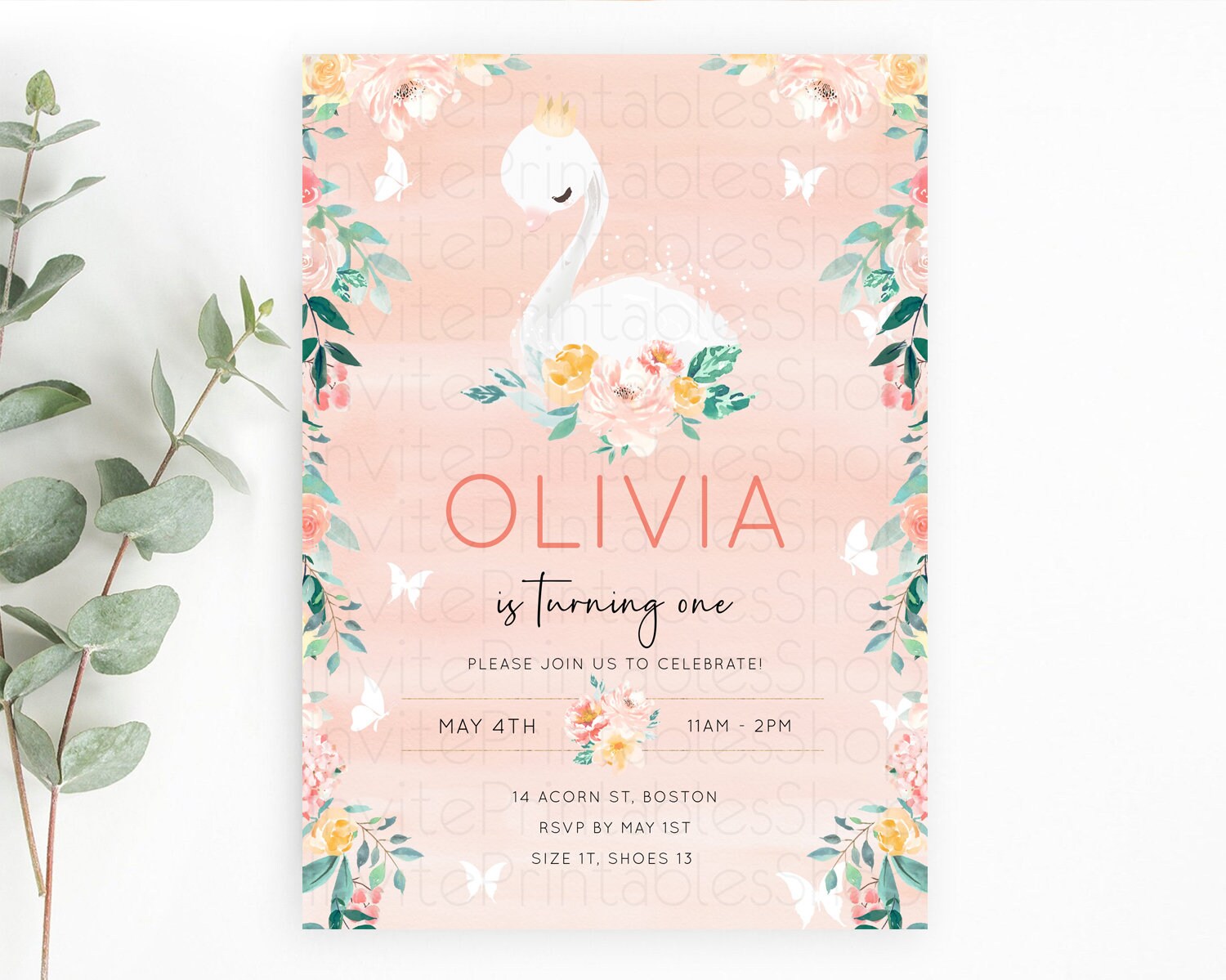 Swan Birthday Invitation Swan Princess Ballet Invitation Enchanted Forest Swan Lake Party Secret Garden Watercolour Pastel Floral D10884
