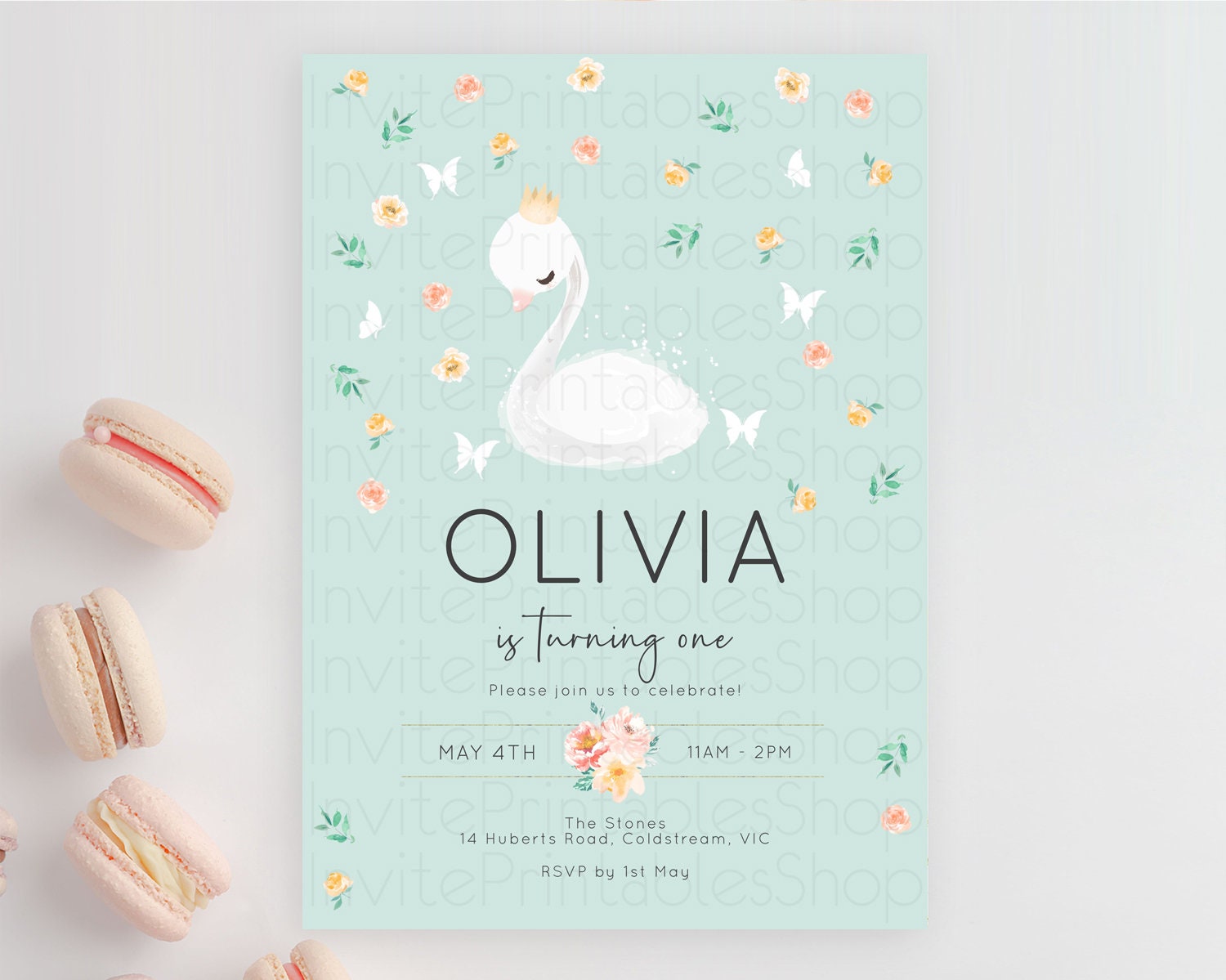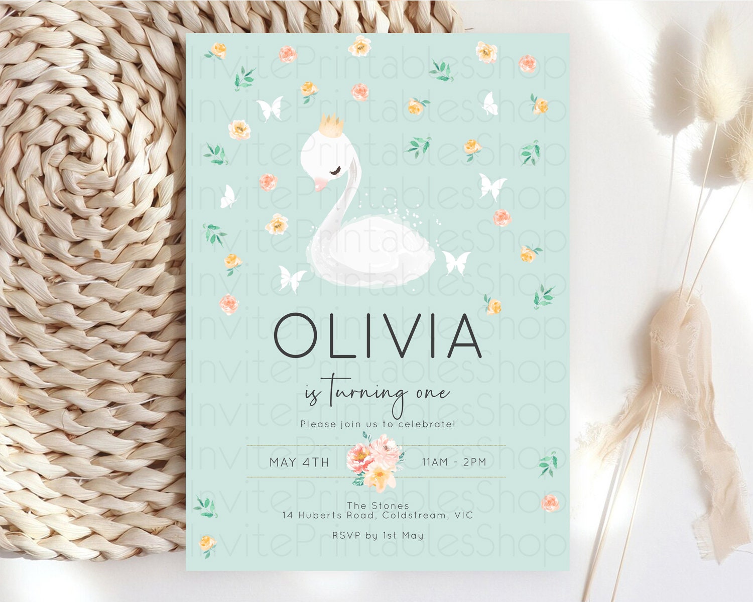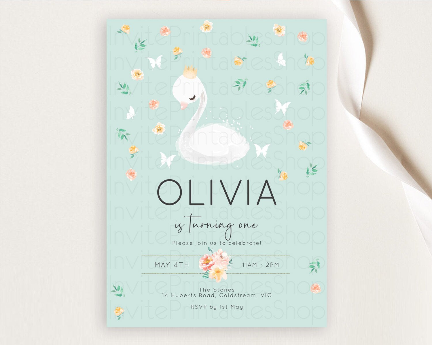 Swan Birthday Invitation Swan Princess Ballet Invitation Enchanted Forest Swan Lake Party Secret Garden Watercolour Pastel Floral D10905
