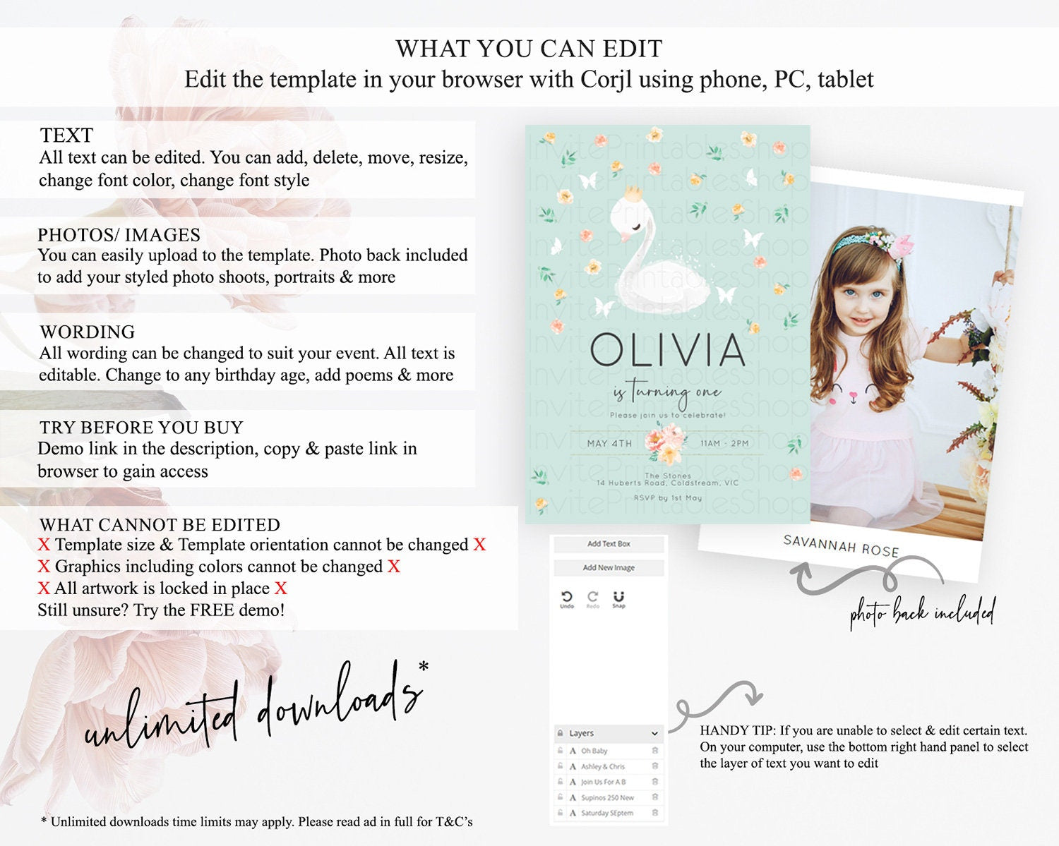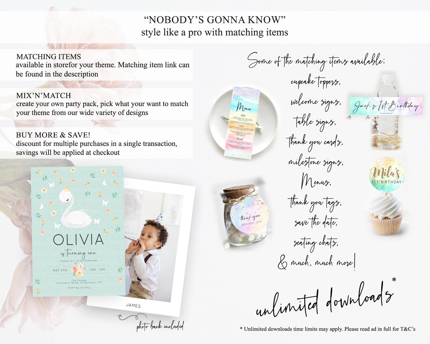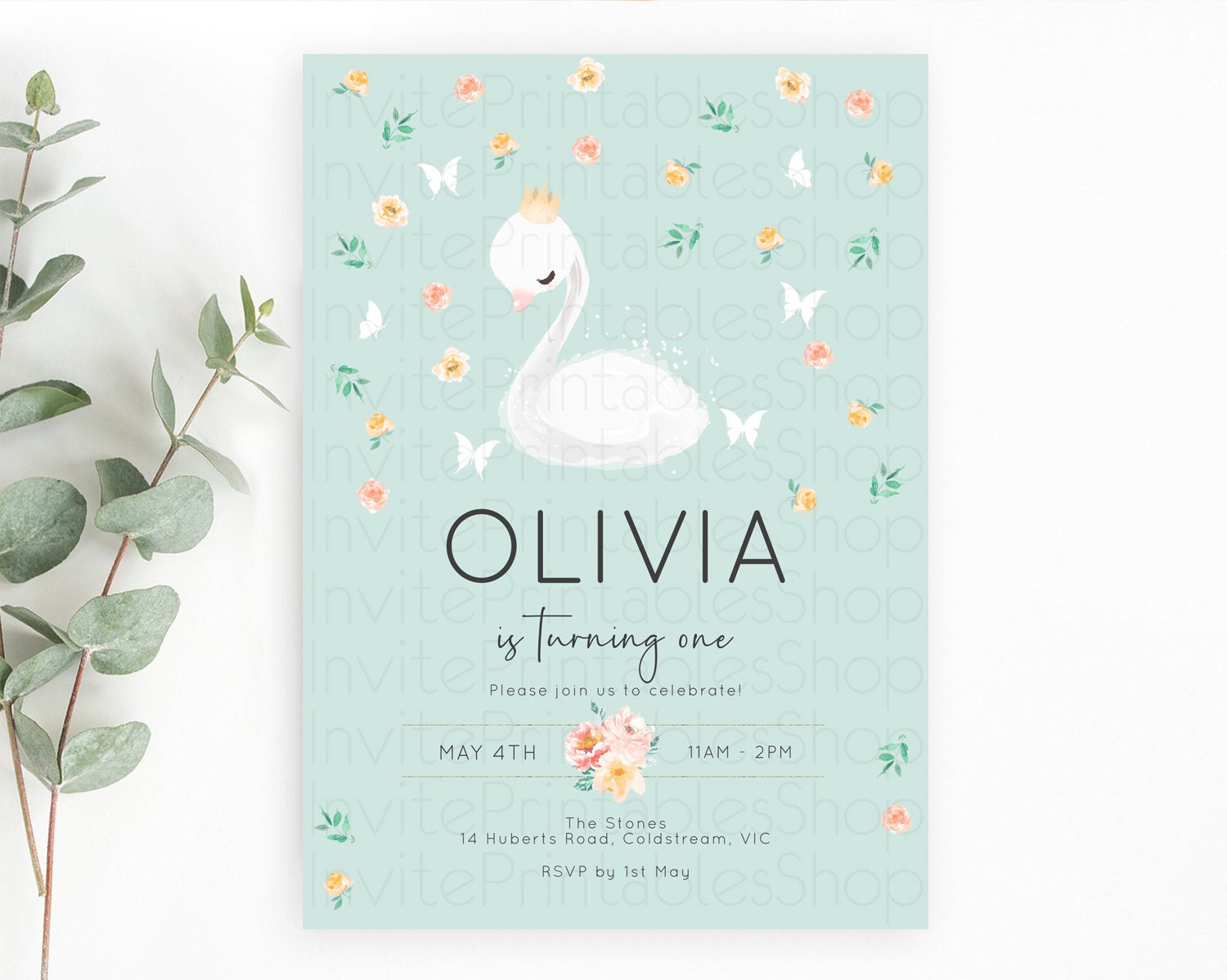 Swan Birthday Invitation Swan Princess Ballet Invitation Enchanted Forest Swan Lake Party Secret Garden Watercolour Pastel Floral D10905