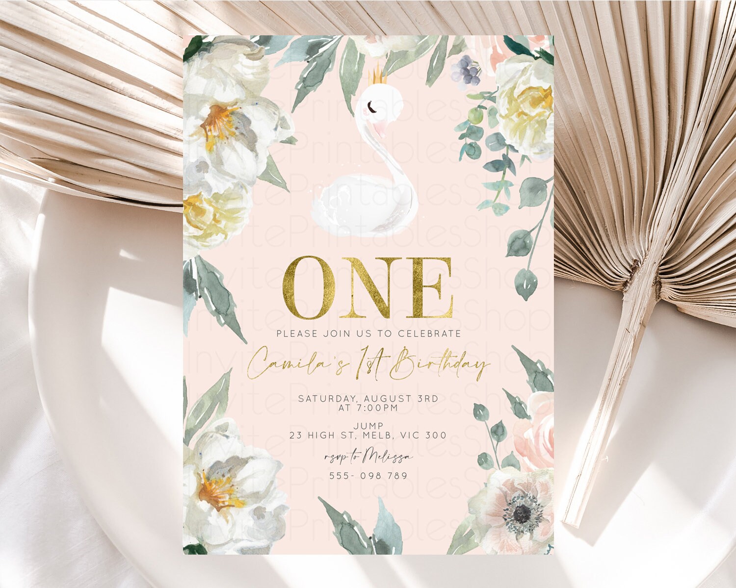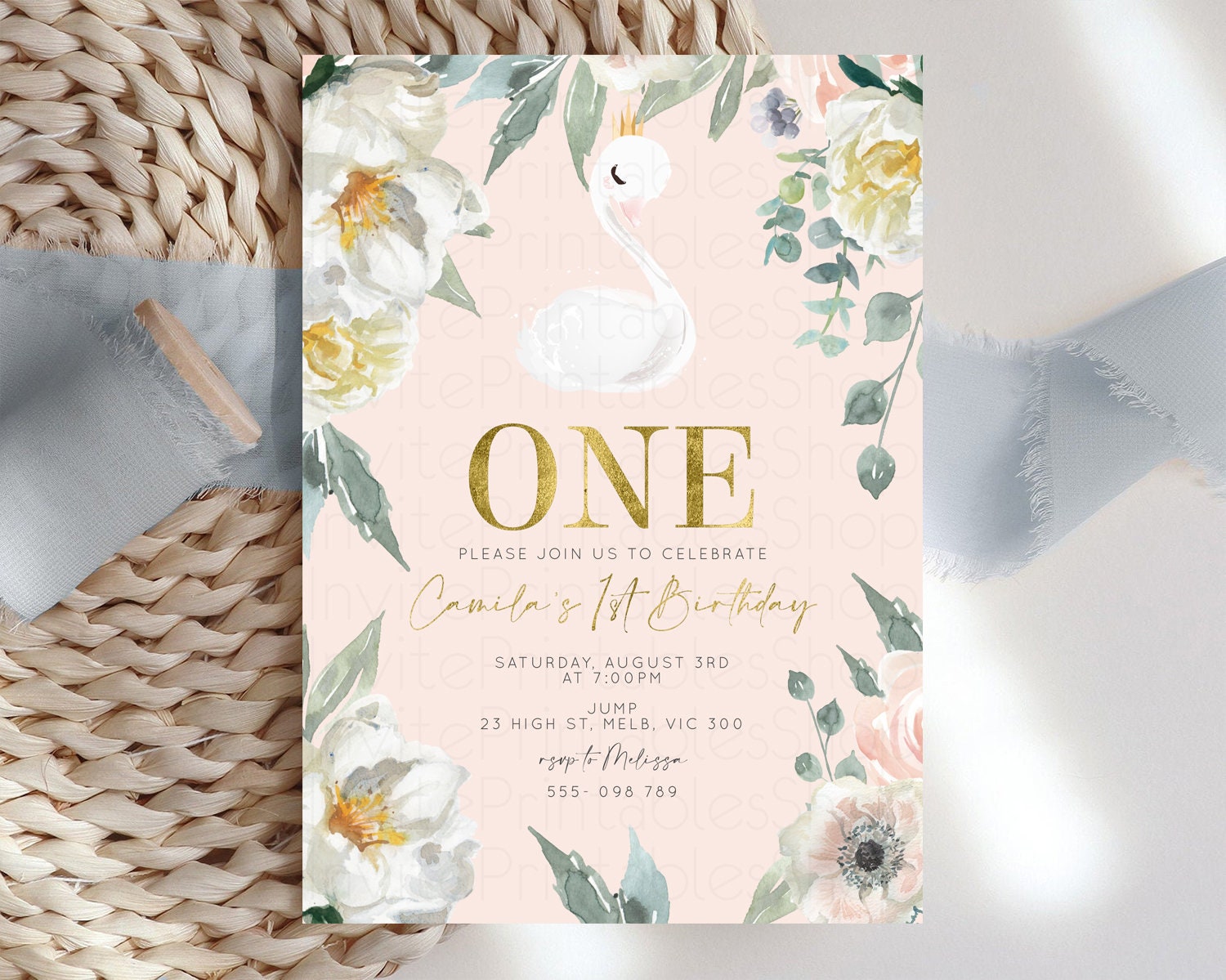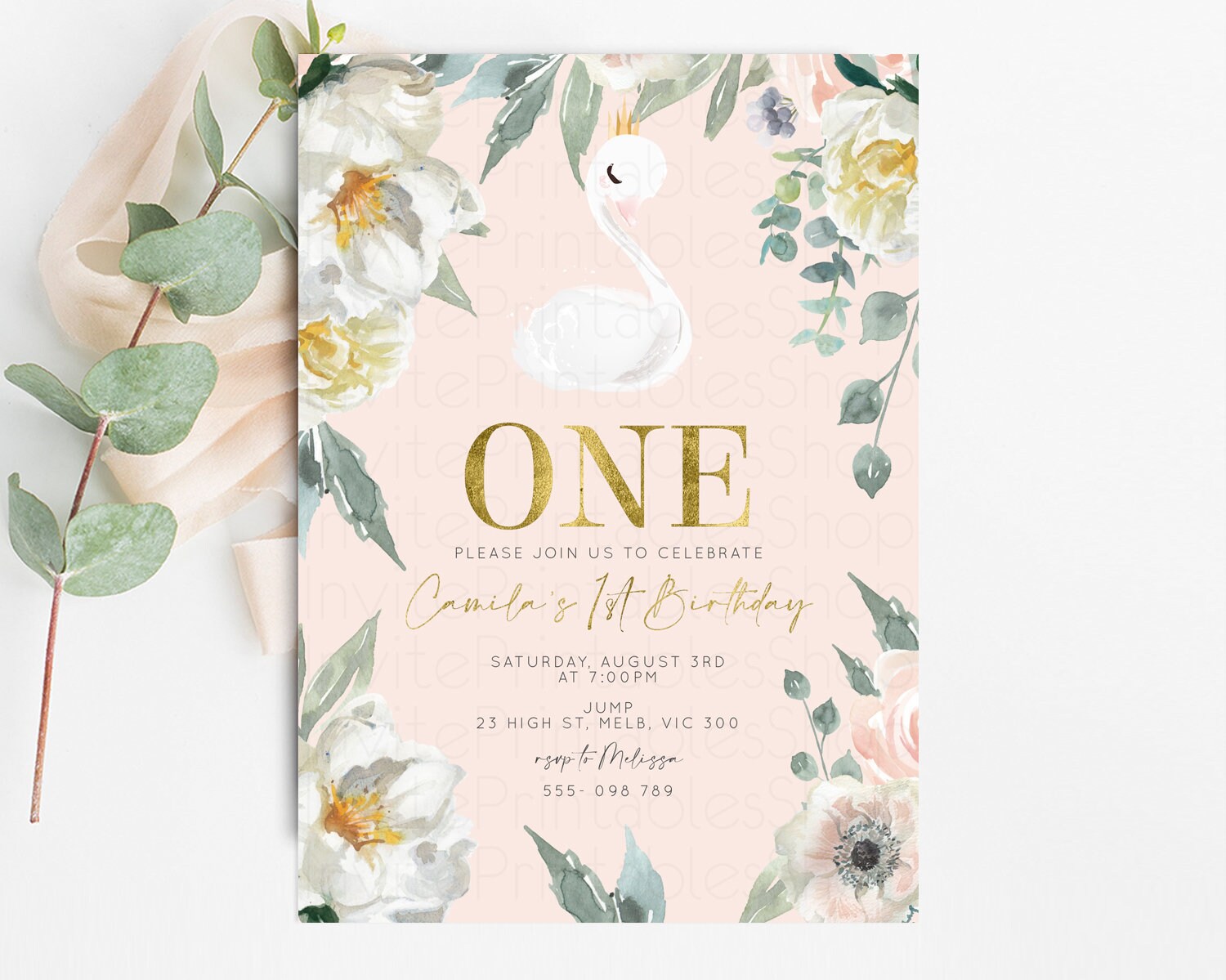 Swan Birthday Invitation White Floral Birthday Invitation Swan Princess Invite Ballet Swan Princess Invite Enchanted Garden Invite s102