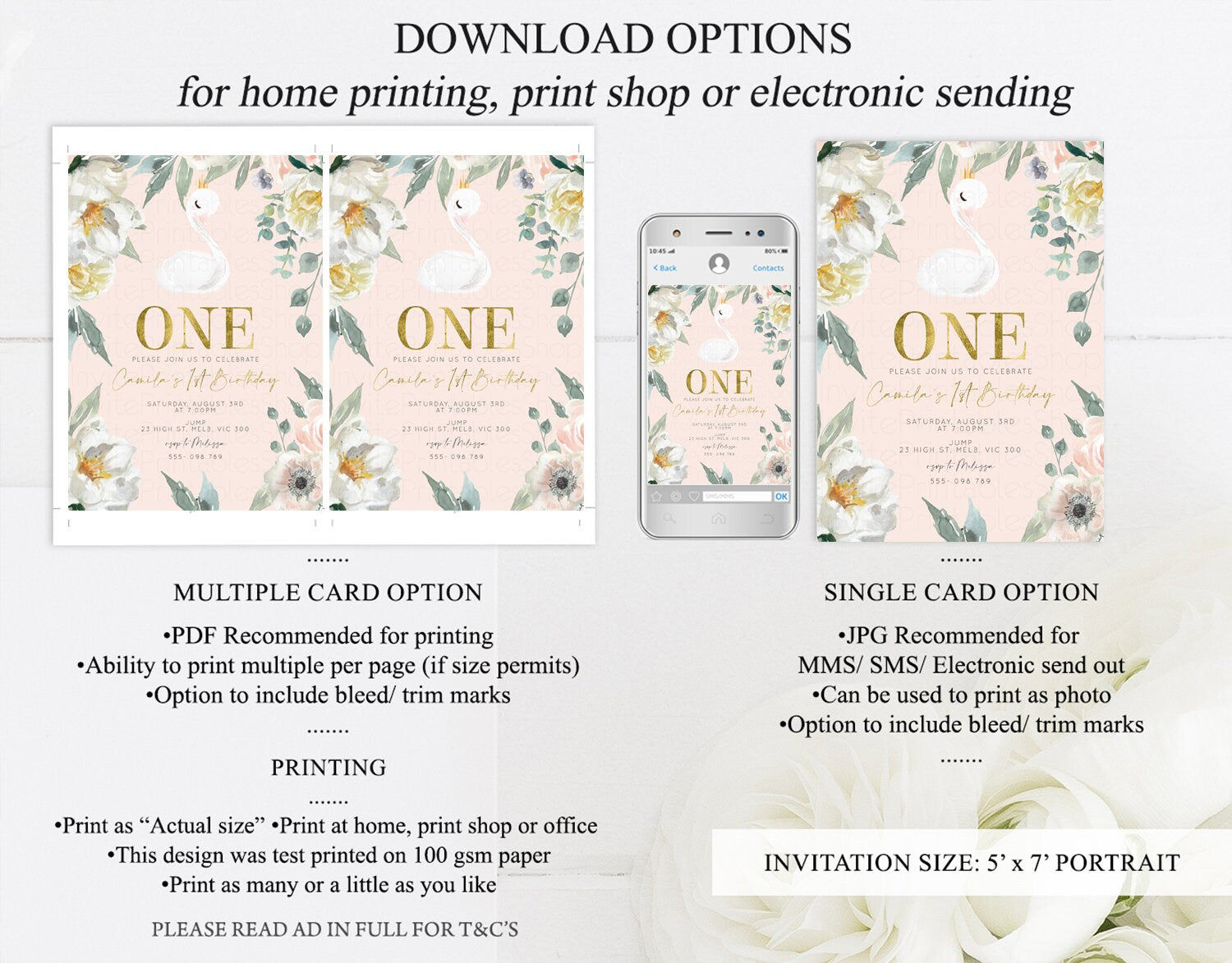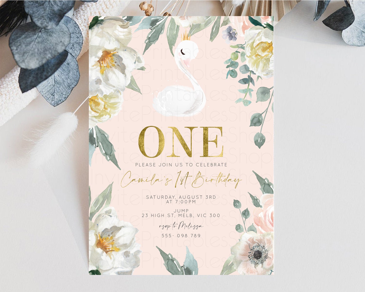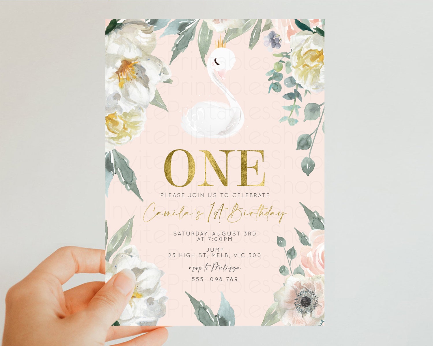 Swan Birthday Invitation White Floral Birthday Invitation Swan Princess Invite Ballet Swan Princess Invite Enchanted Garden Invite s102