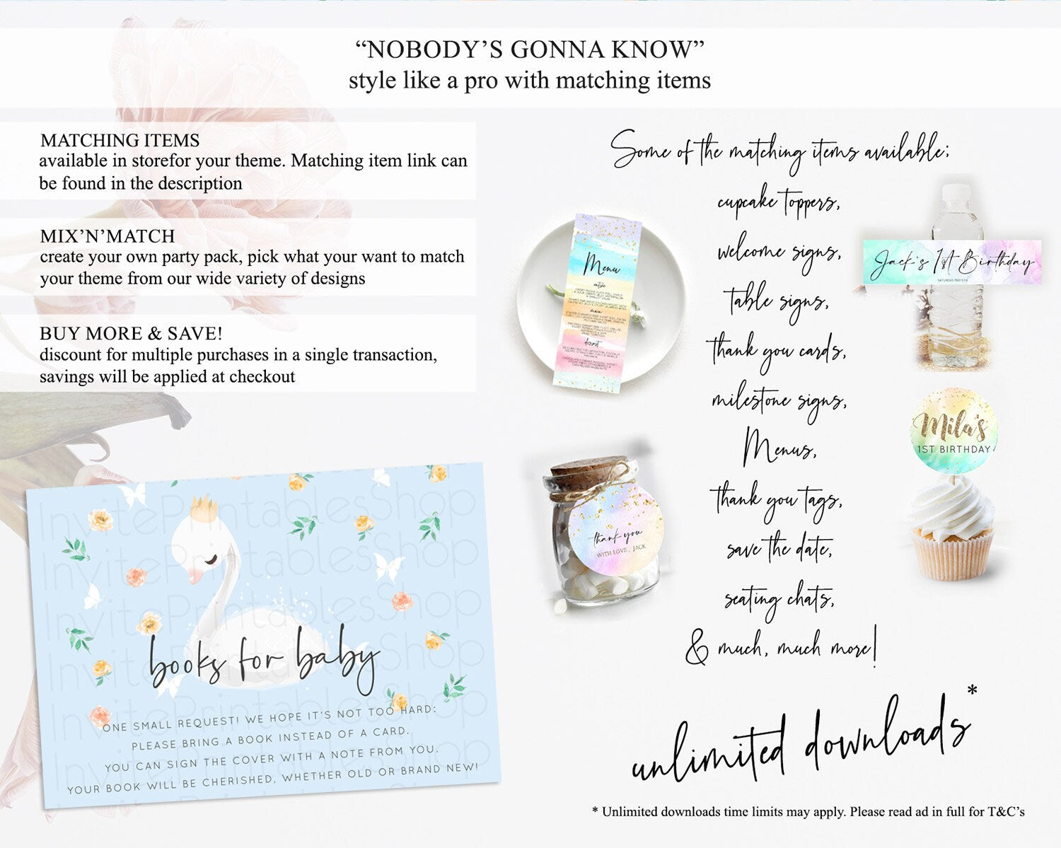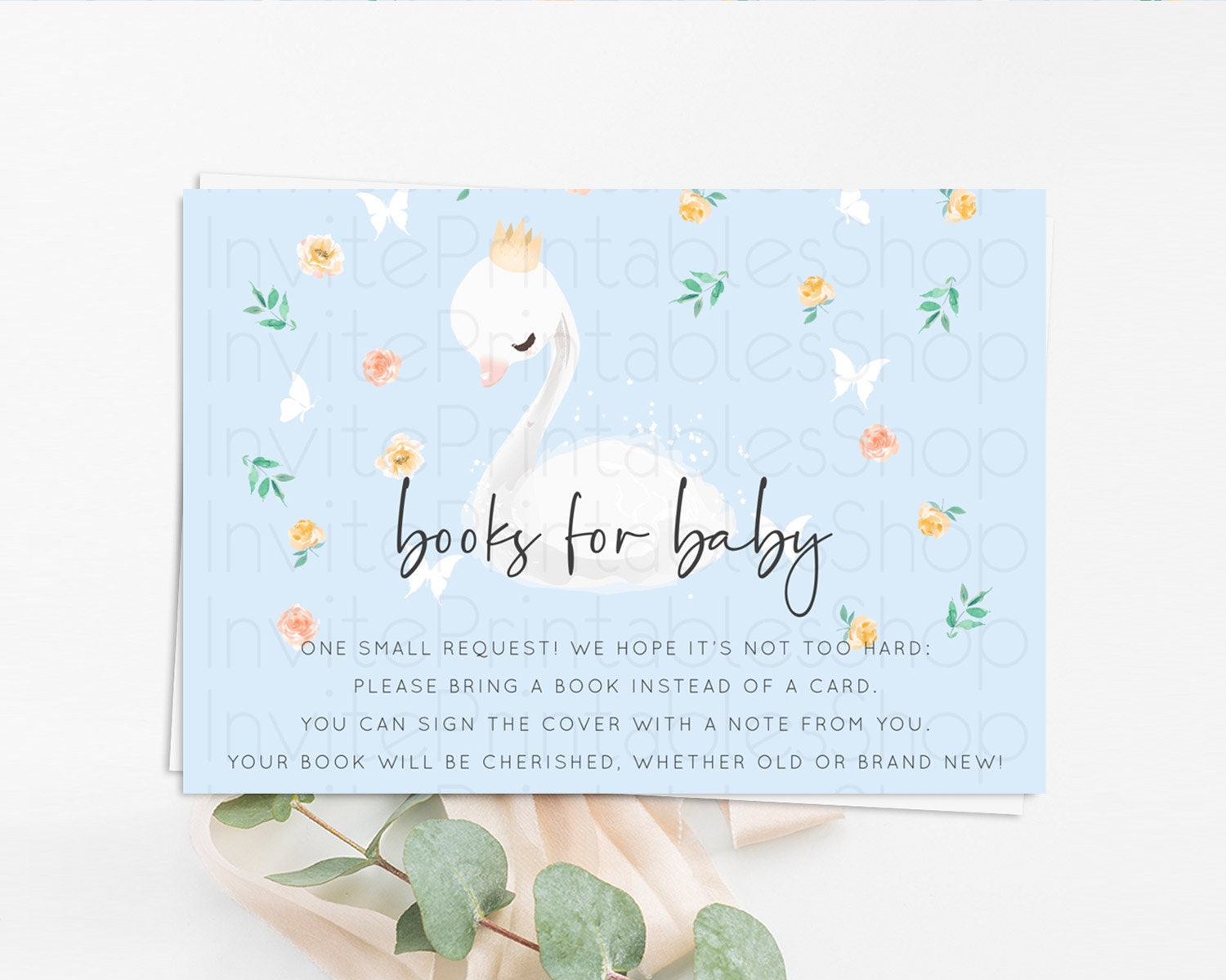 Swan Books For Baby Card Swan Princess Ballet Book Insert Enchanted Swan Lake Book Card Secret Garden Floral Book Poem Request D10903