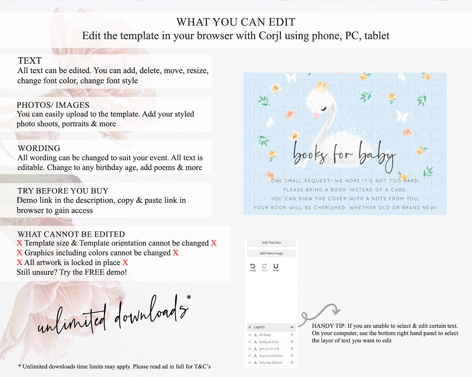 • Template size & orientation cannot be changed. Please use the demo link to confirm this product suits your needs.