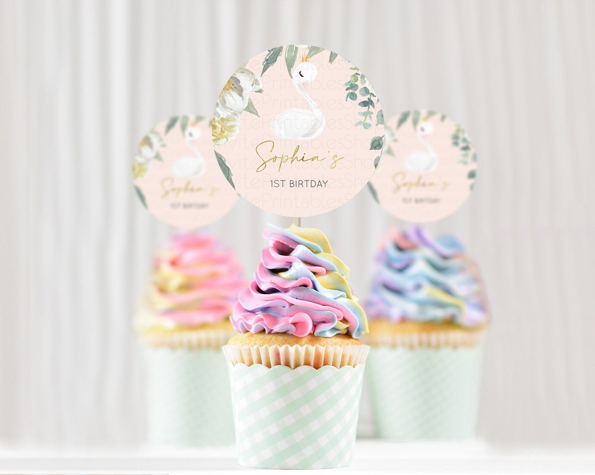 Swan Cupcake Toppers Swan Princess Ballet Cupcake Watercolour Pastel Floral Enchanted Forest Swan Lake Party Decor Secret Garden D10115