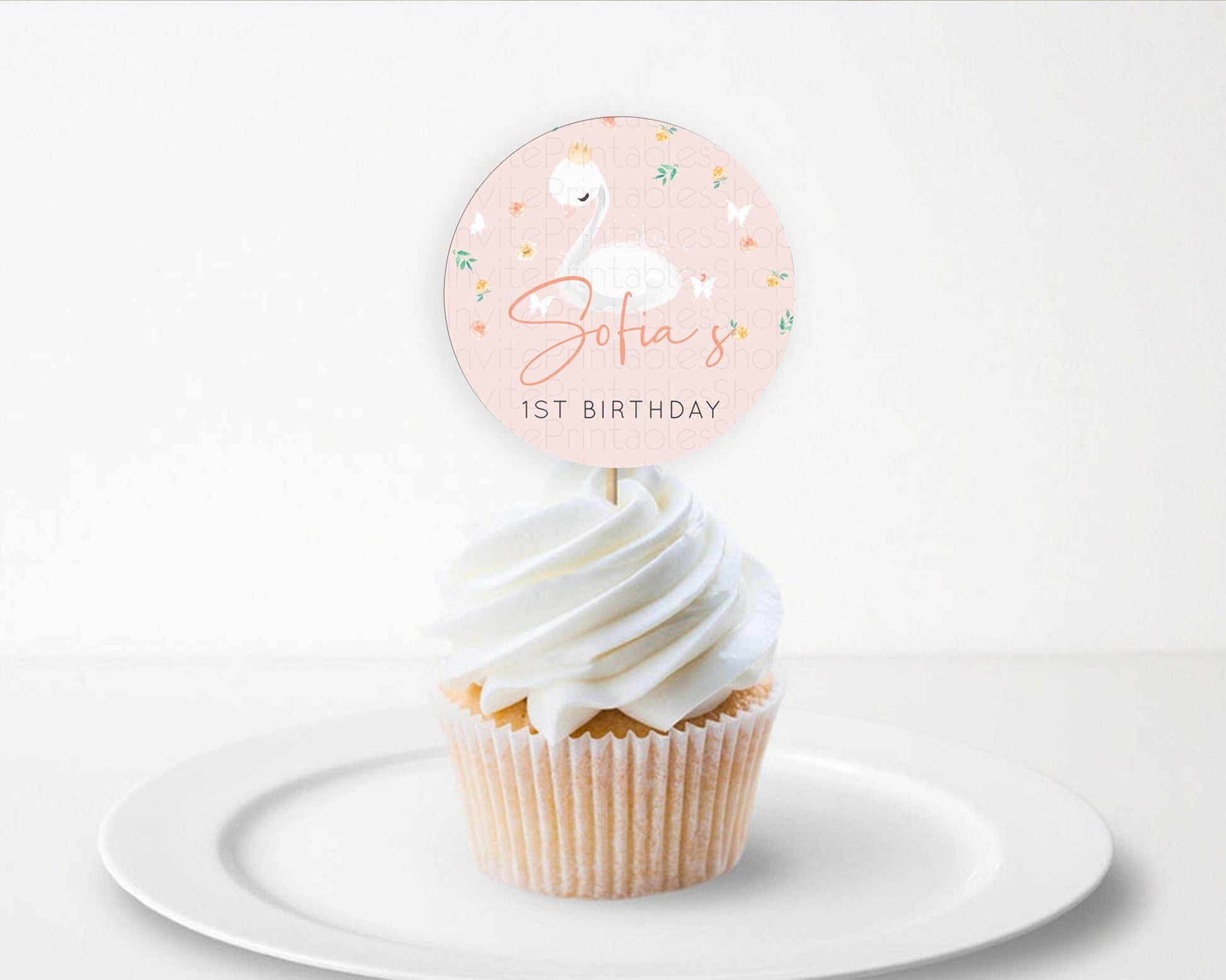 Swan Cupcake Toppers Swan Princess Ballet Cupcake Watercolour Pastel Floral Enchanted Forest Swan Lake Party Decor Secret Garden D10388
