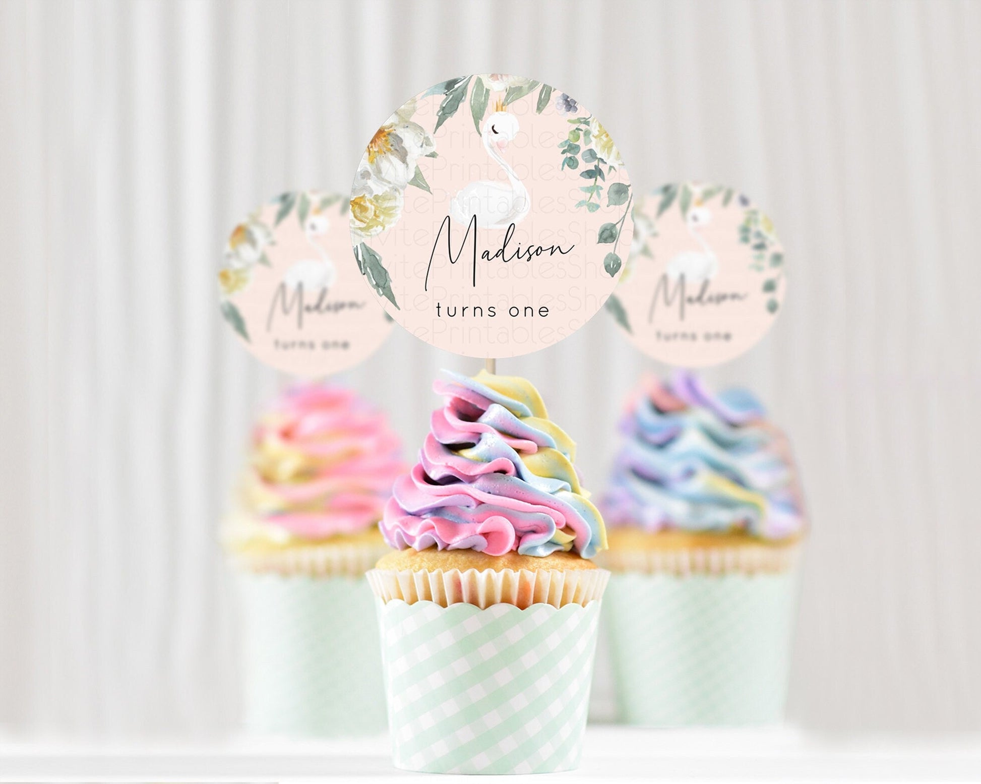 Swan Cupcake Toppers Swan Princess Ballet Cupcake Watercolour Pastel Floral Enchanted Forest Swan Lake Party Decor Secret Garden D10755