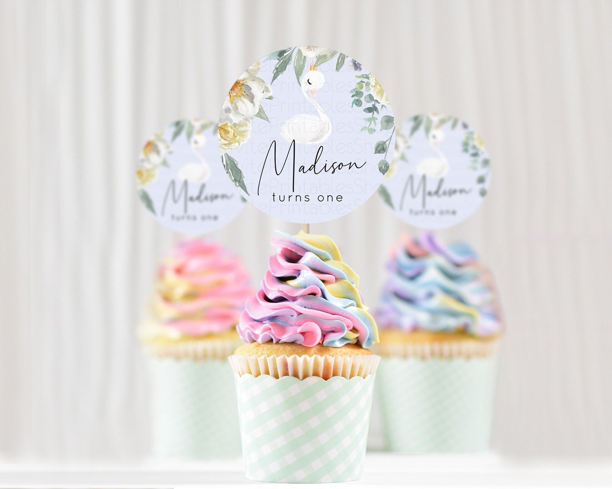 Swan Cupcake Toppers Swan Princess Ballet Cupcake Watercolour Pastel Floral Enchanted Forest Swan Lake Party Decor Secret Garden D10756