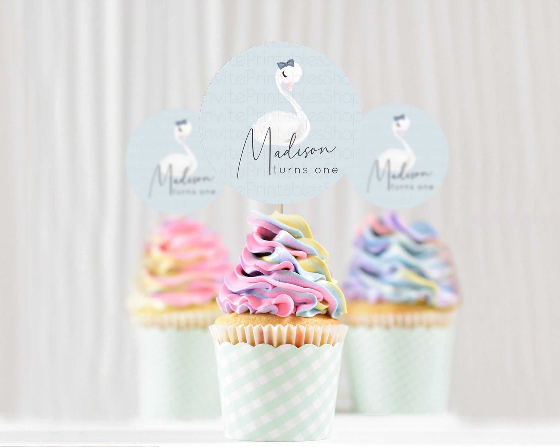 Swan Cupcake Toppers Swan Princess Ballet Cupcake Watercolour Pastel Floral Enchanted Forest Swan Lake Party Decor Secret Garden D10760