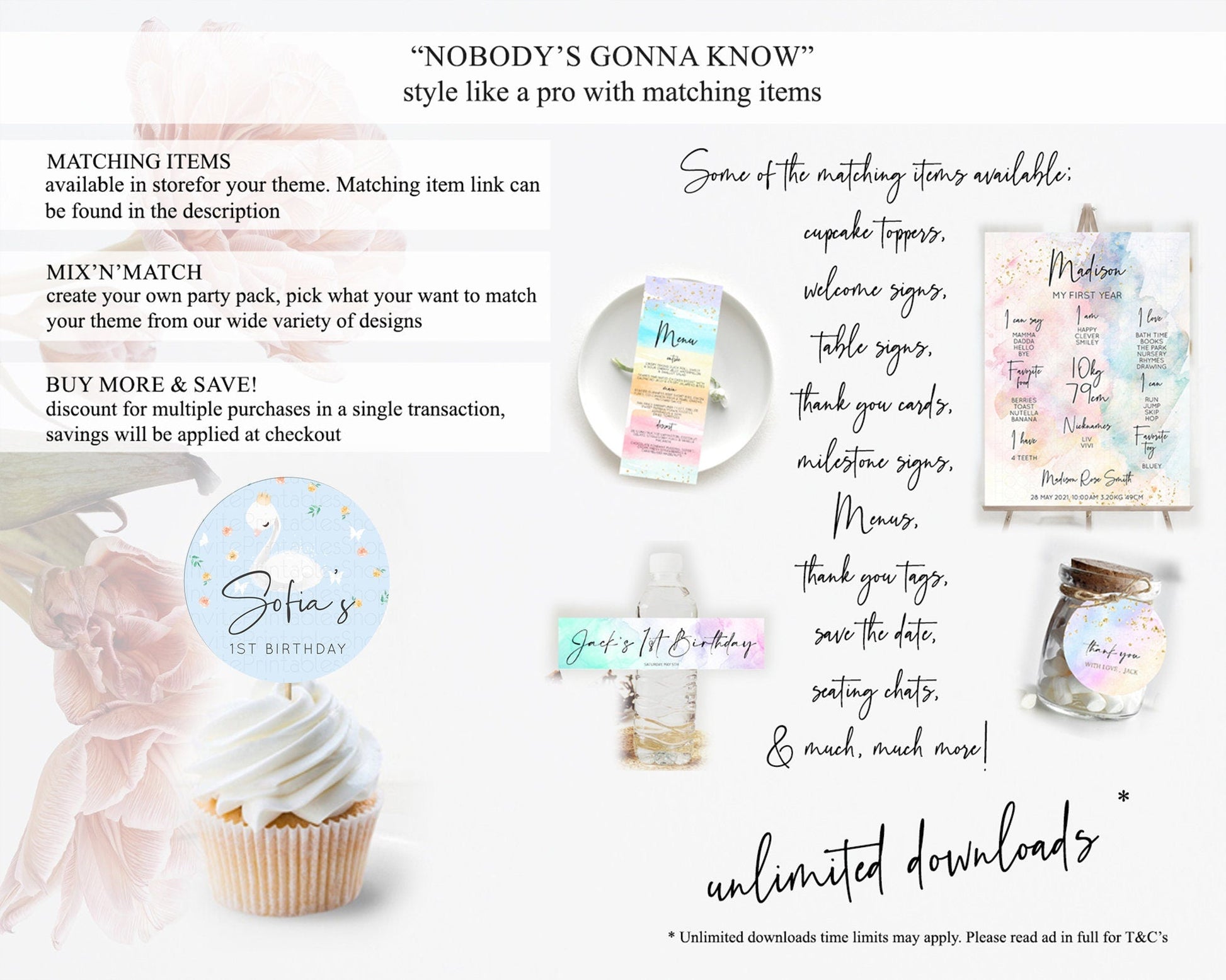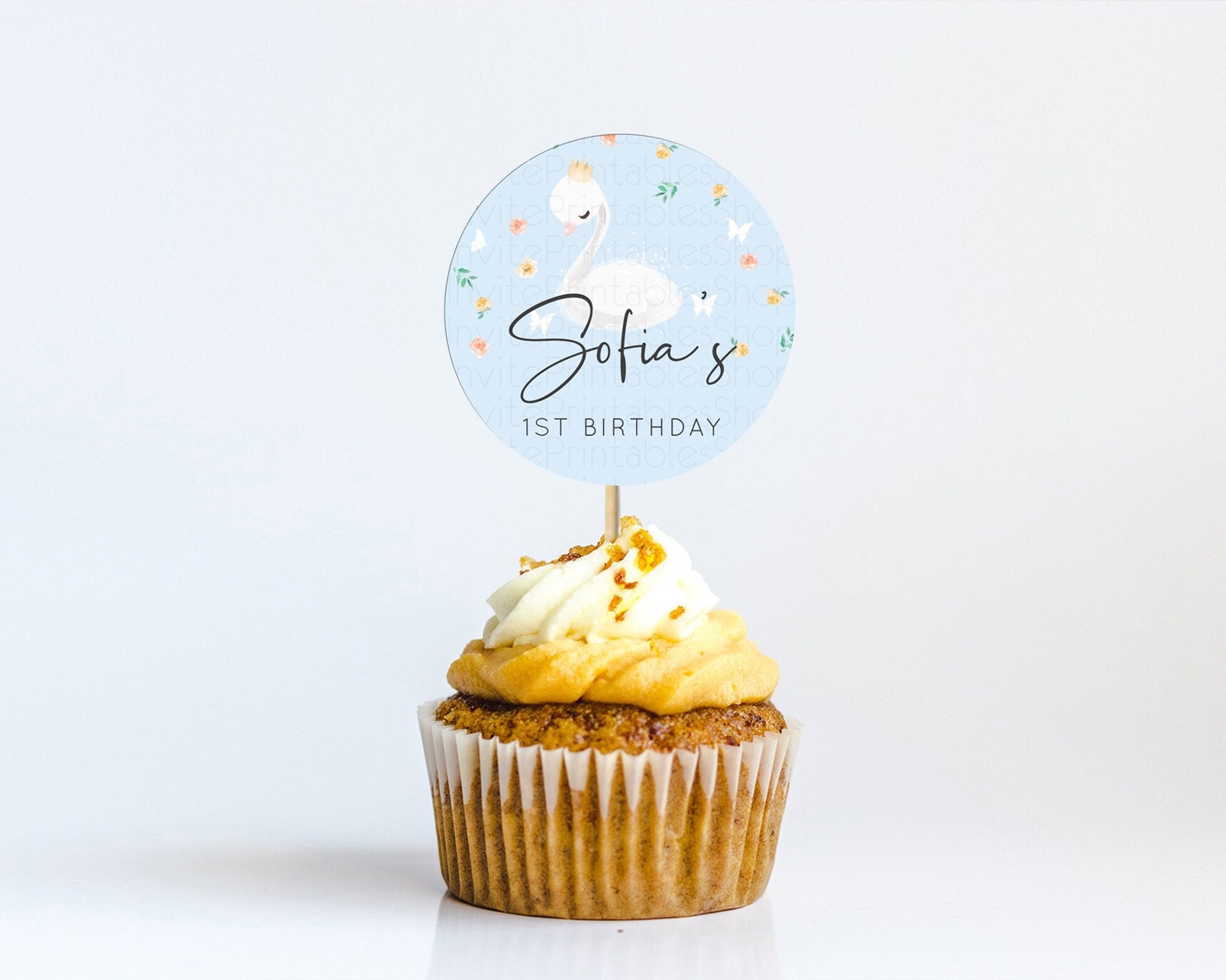 Swan Cupcake Toppers Swan Princess Ballet Cupcake Watercolour Pastel Floral Enchanted Forest Swan Lake Party Decor Secret Garden D10903
