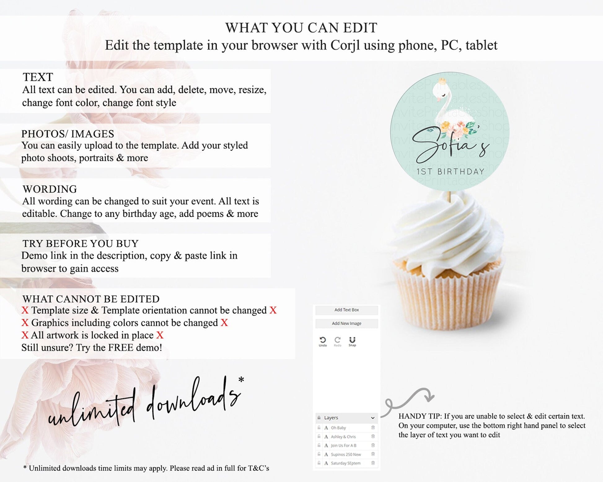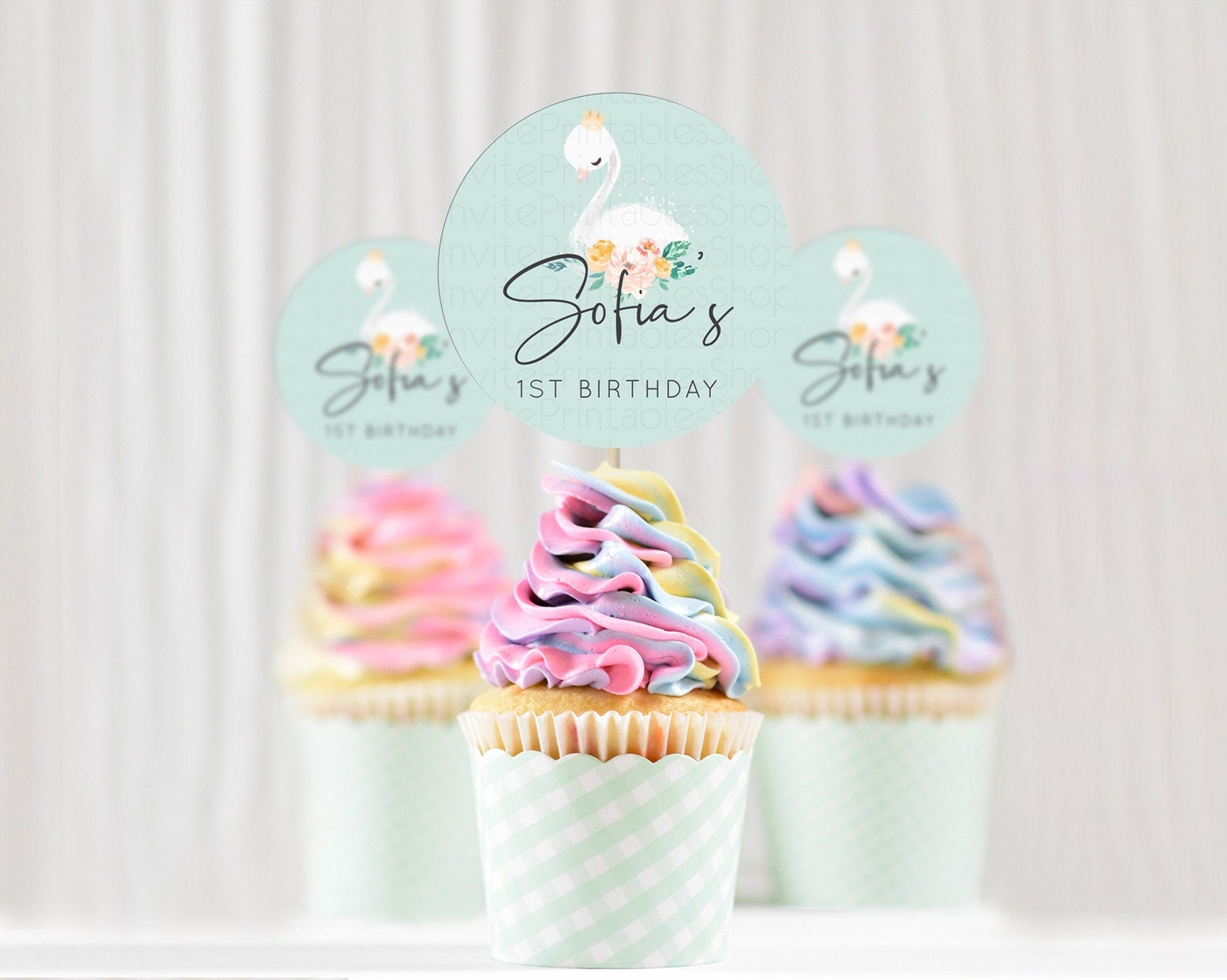 Swan Cupcake Toppers Swan Princess Ballet Cupcake Watercolour Pastel Floral Enchanted Forest Swan Lake Party Decor Secret Garden D10905