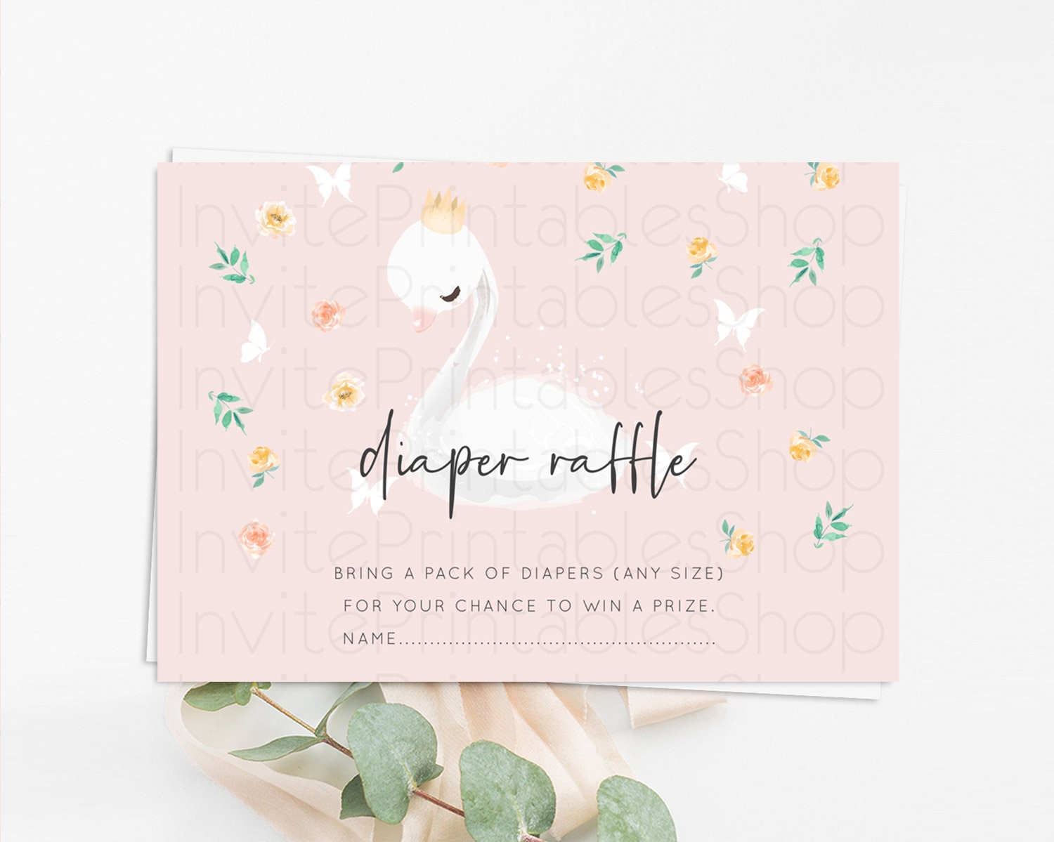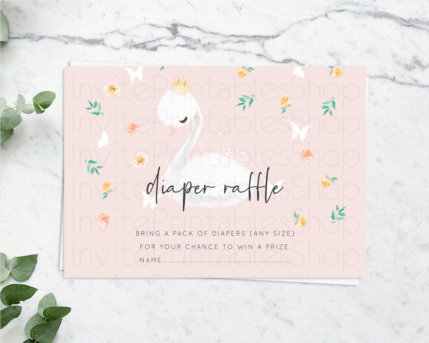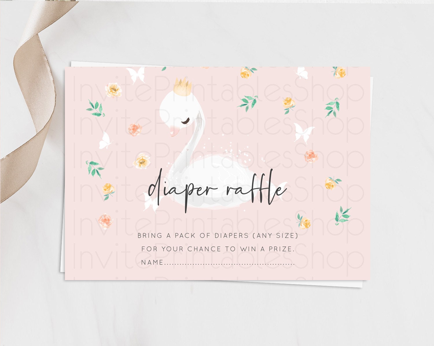Swan Diaper Raffle Card Swan Princess Ballet Diaper Raffle Insert Enchanted Swan Lake Diaper Ticket Secret Garden Floral Raffle Game D10388