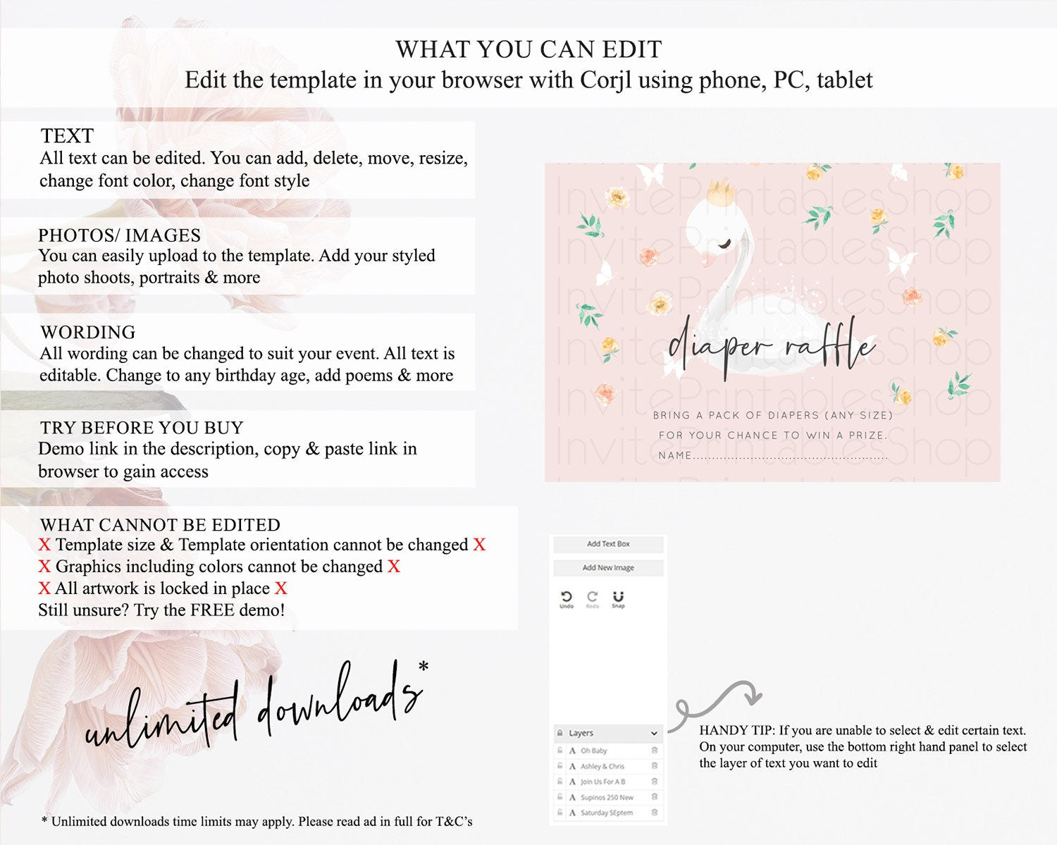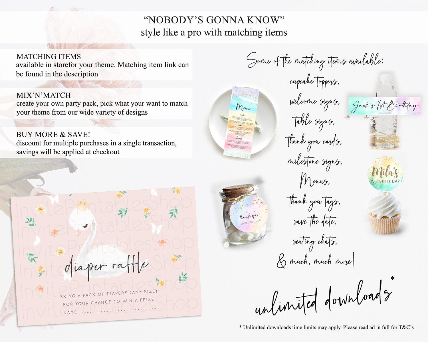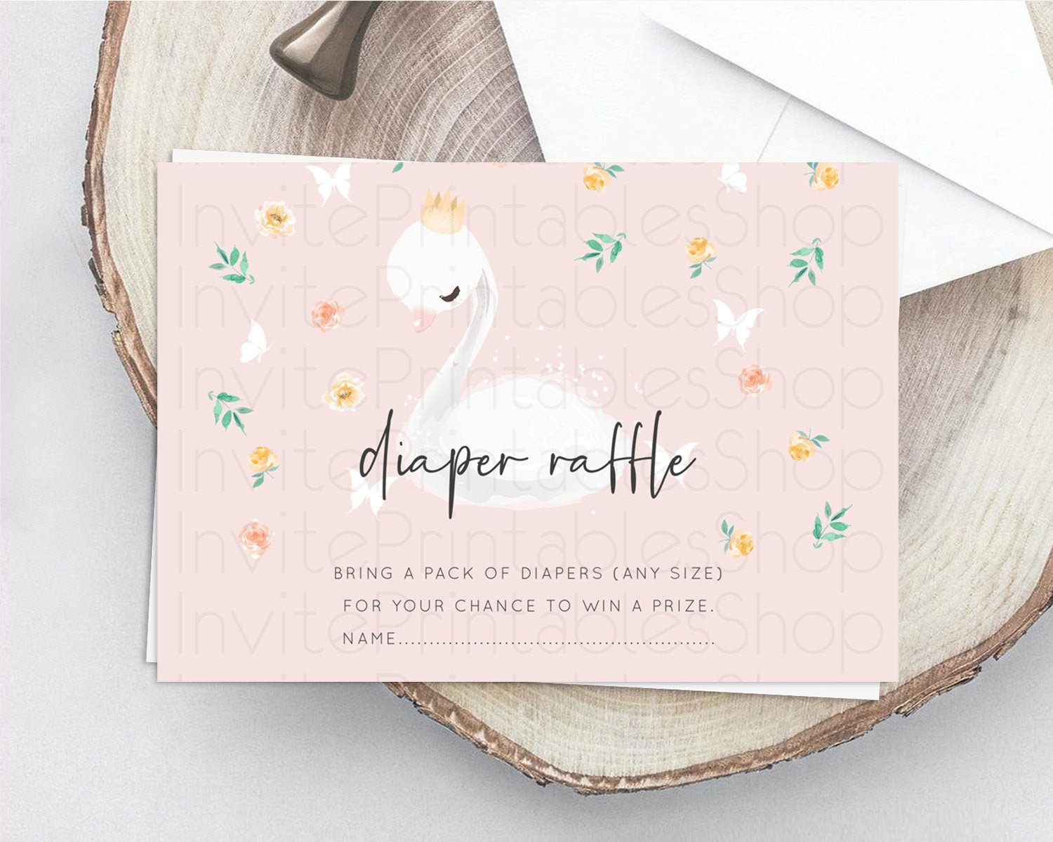 Swan Diaper Raffle Card Swan Princess Ballet Diaper Raffle Insert Enchanted Swan Lake Diaper Ticket Secret Garden Floral Raffle Game D10388