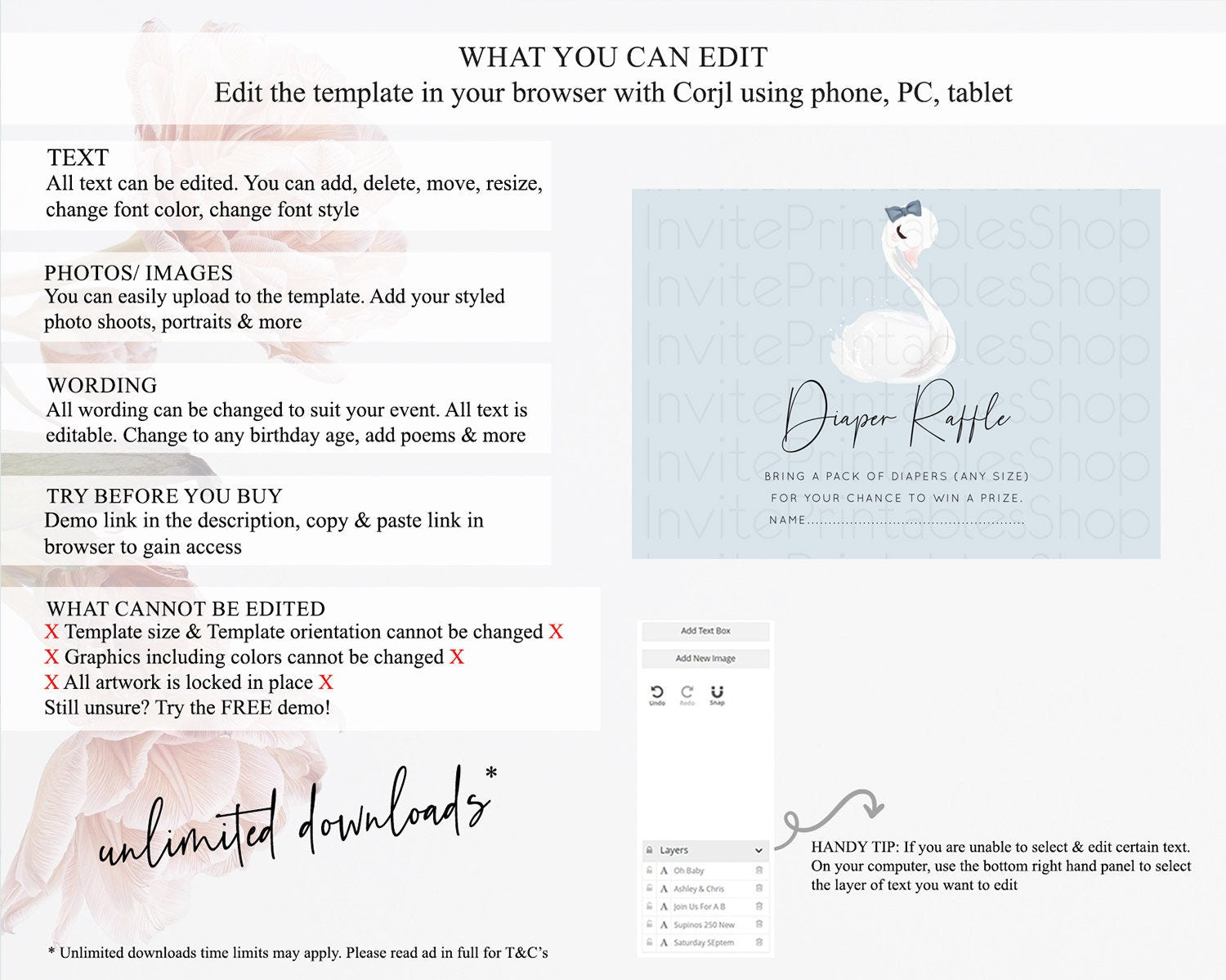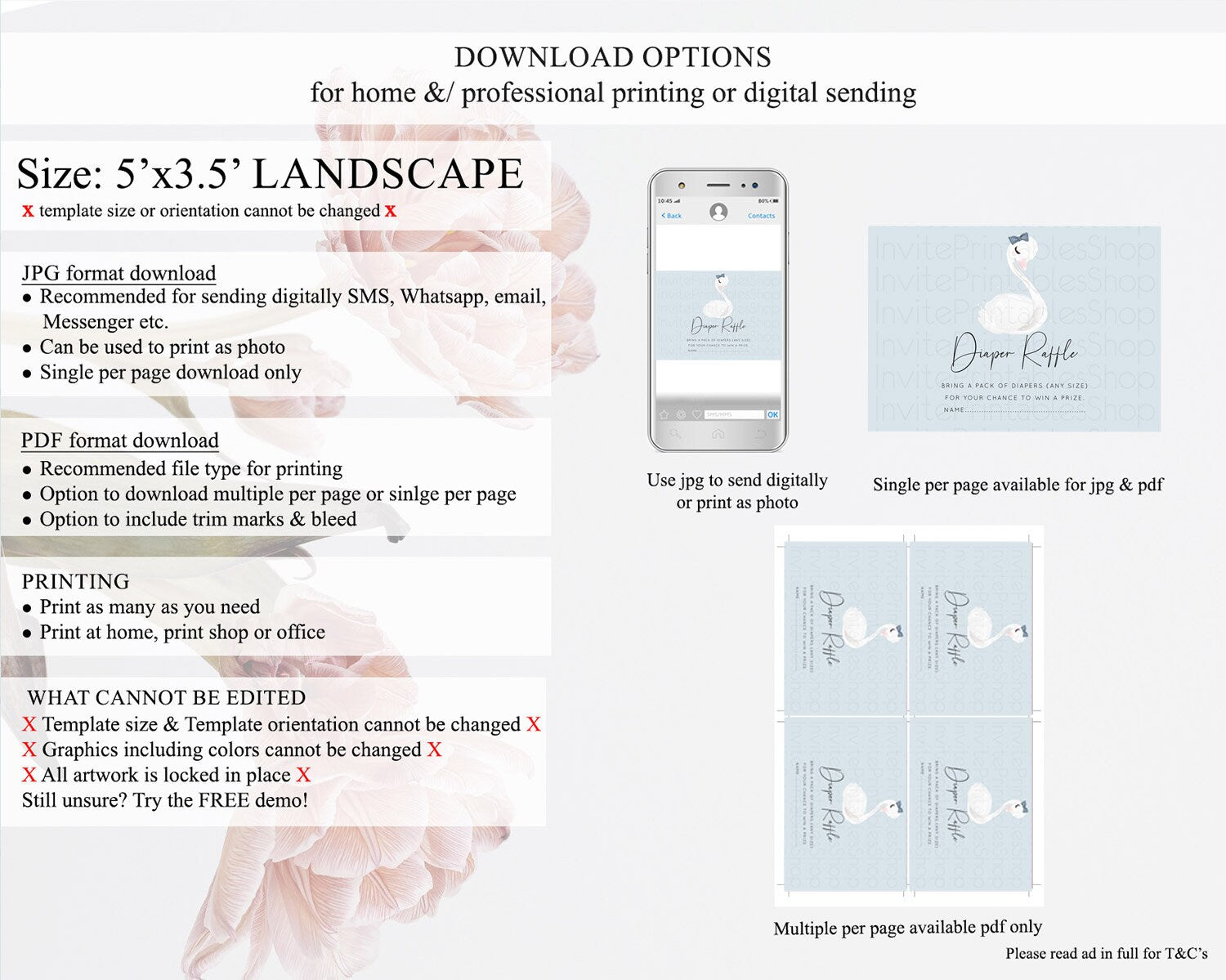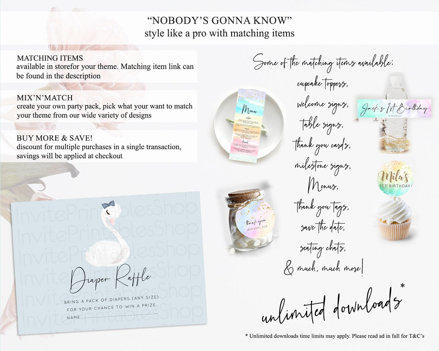 Swan Diaper Raffle Card Swan Princess Ballet Diaper Raffle Insert Enchanted Swan Lake Diaper Ticket Secret Garden Floral Raffle Game D10760