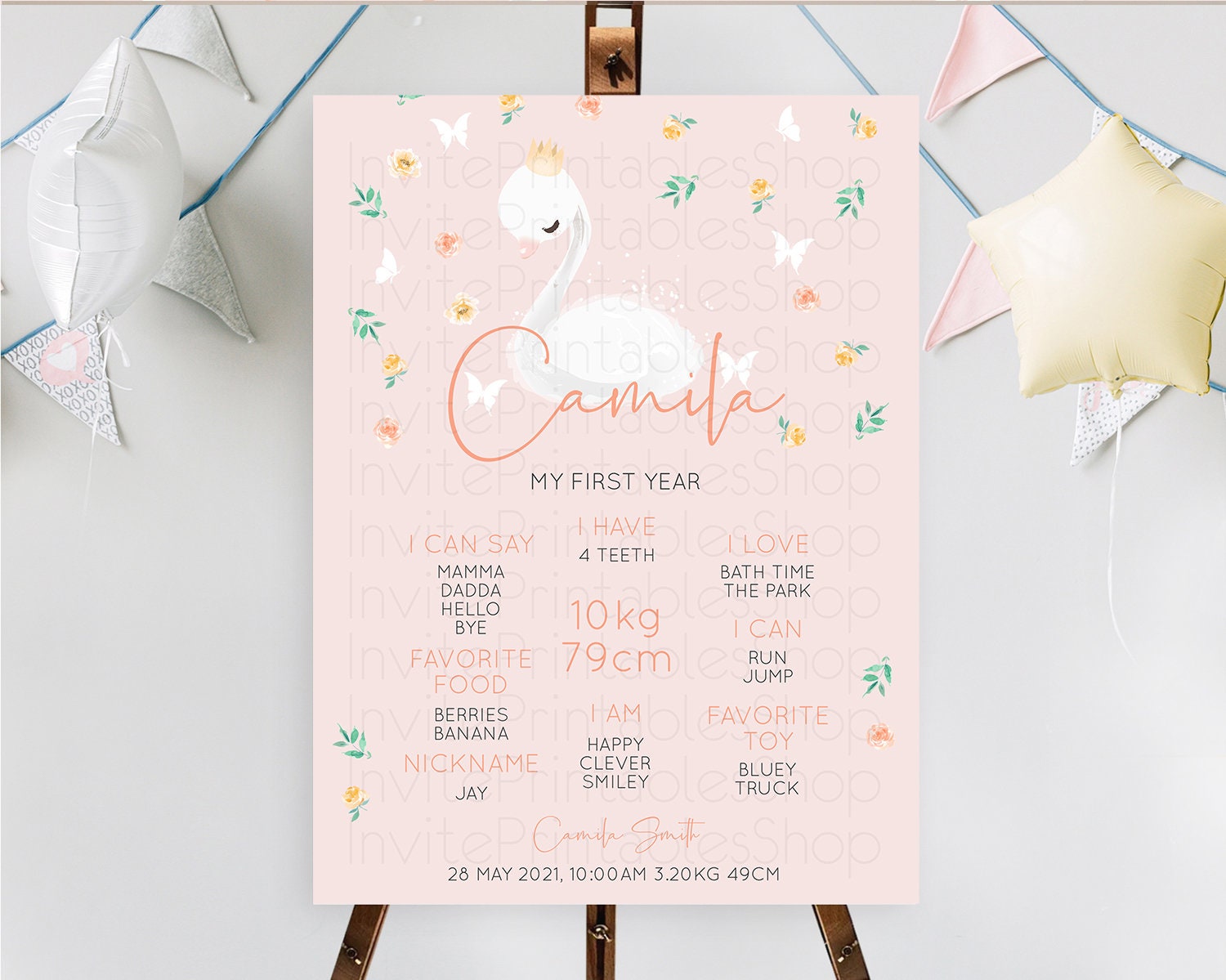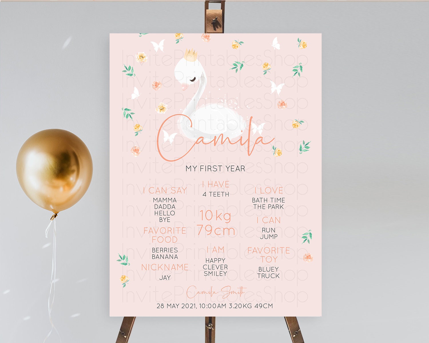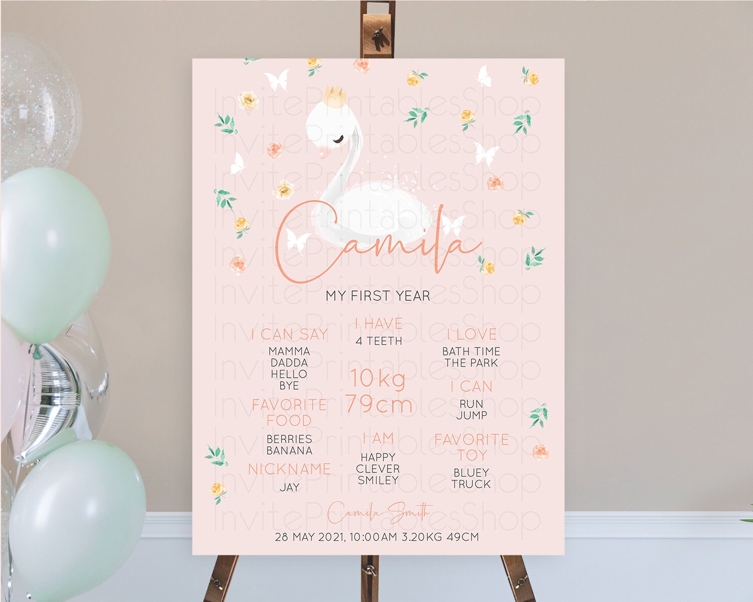 Swan First Birthday Milestone Poster Swan Princess Ballet Milestone Board Enchanted Forest Swan Lake Secret Garden Pastel Floral D10388