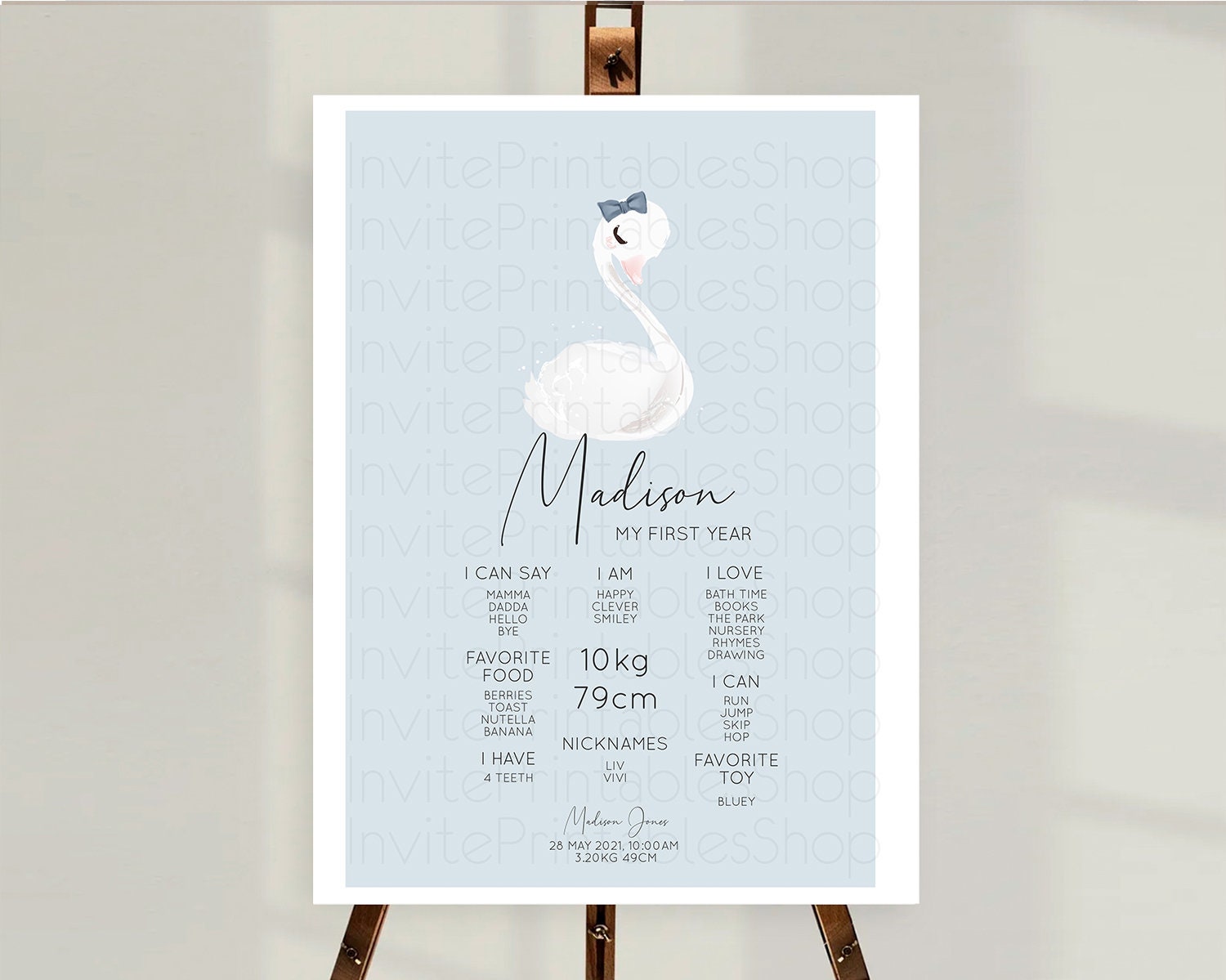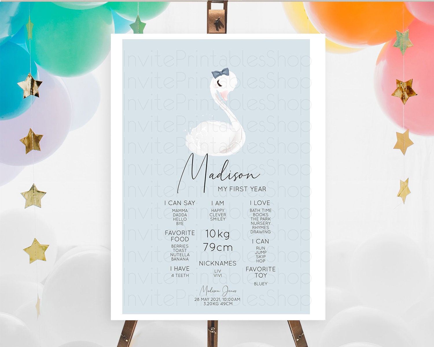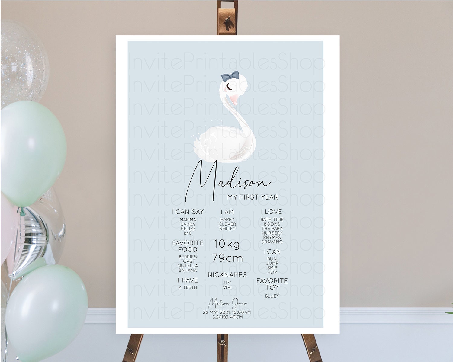 Swan First Birthday Milestone Poster Swan Princess Ballet Milestone Board Enchanted Forest Swan Lake Secret Garden Pastel Floral D10760