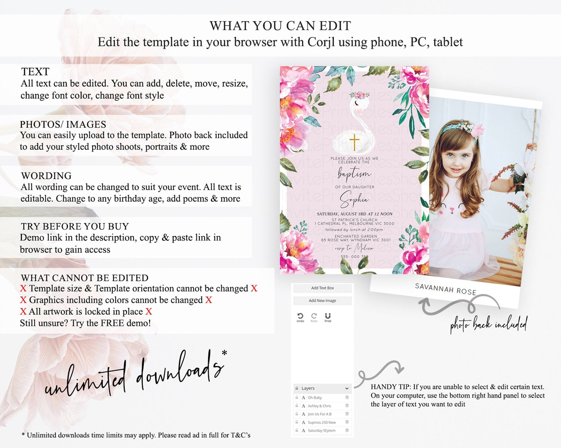 • Template size & orientation cannot be changed. Please use the demo link to confirm this product suits your needs.