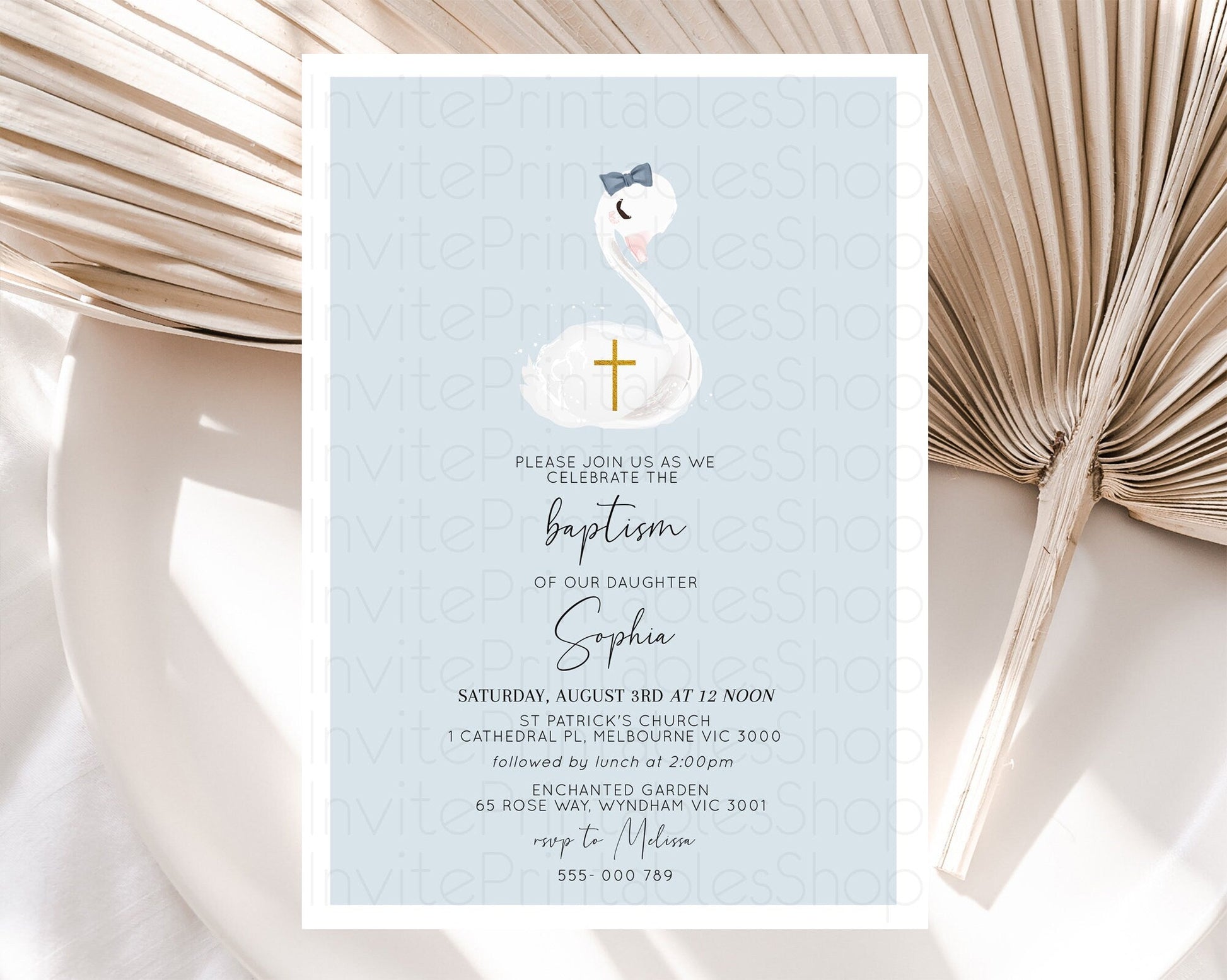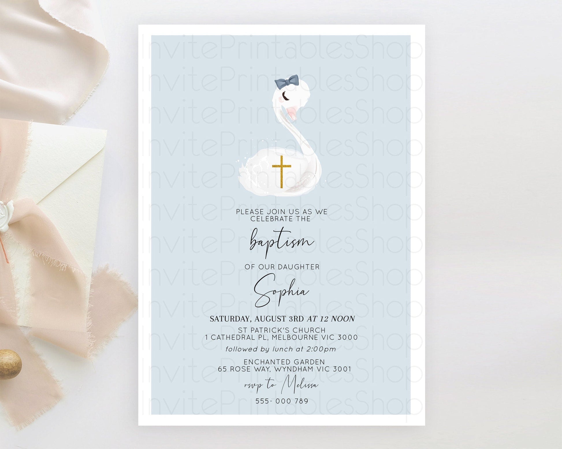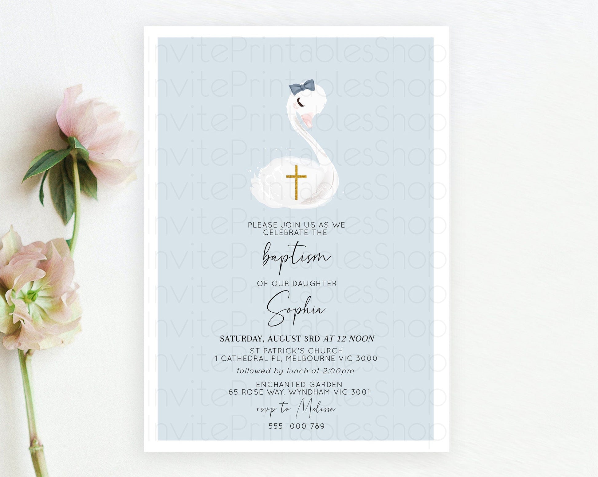 Swan Lake Baptism Invitation Swan Princess Ballet Baptism 1st Birthday Enchanted Forest Secret Garden Watercolour Pastel Floral D10760